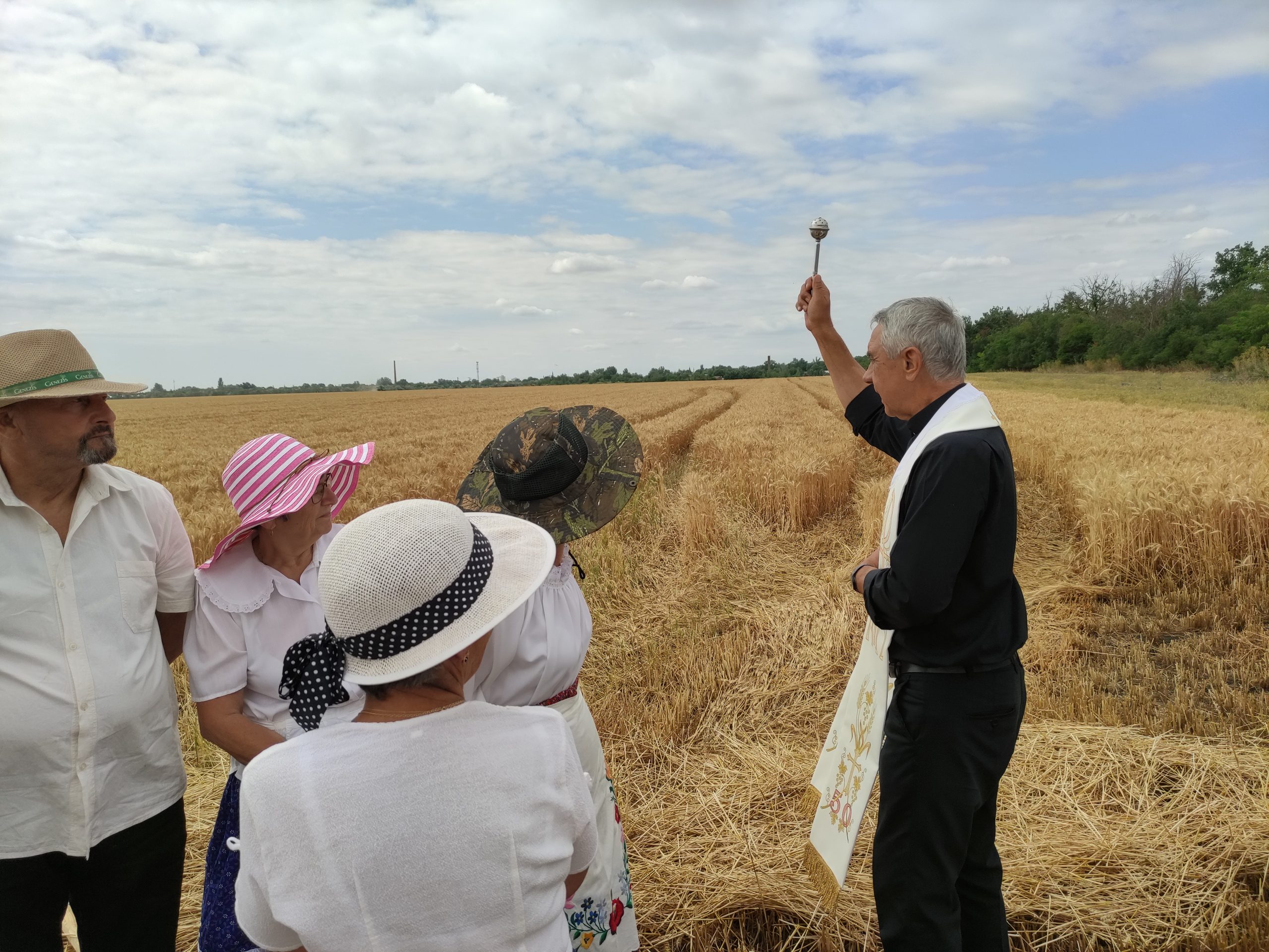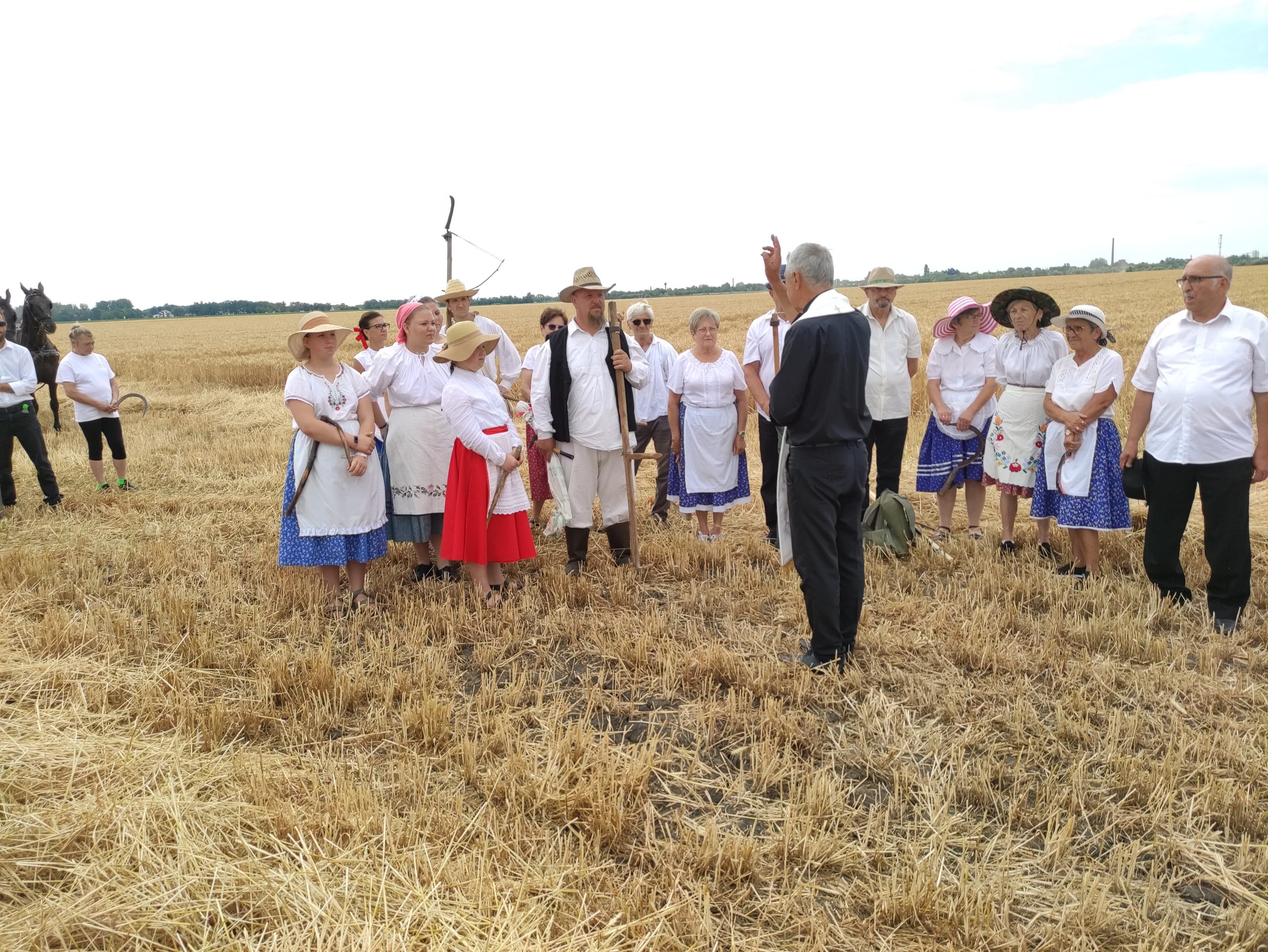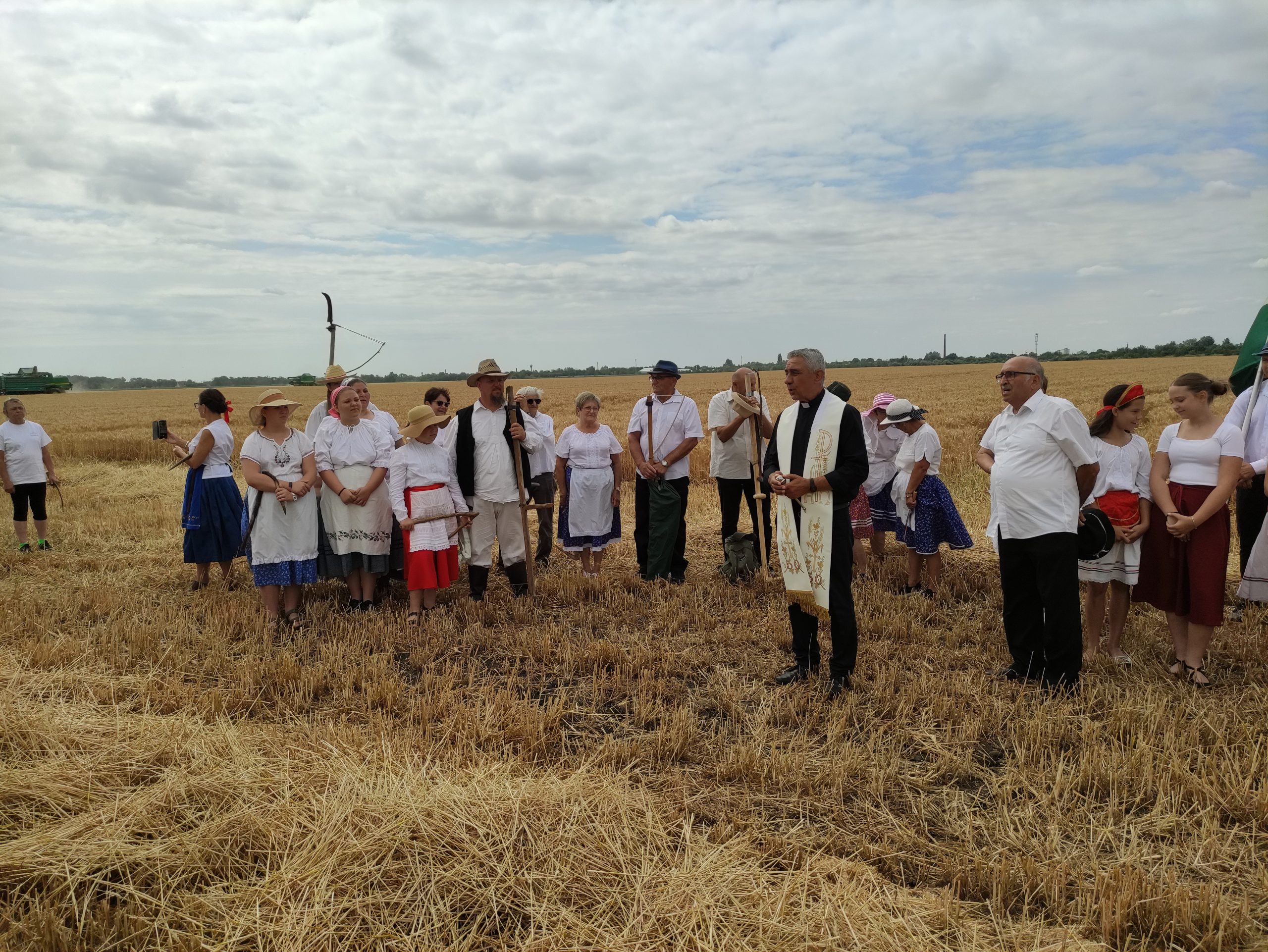 Itt előbb Német László esperes mondott áldást, mondván: nagyon meg kell becsülni az olvasókört, hogy megtartja az aratóünnep hagyományát. Majd megszentelte a búzatáblát, az új kenyeret, és megáldotta az aratókat.