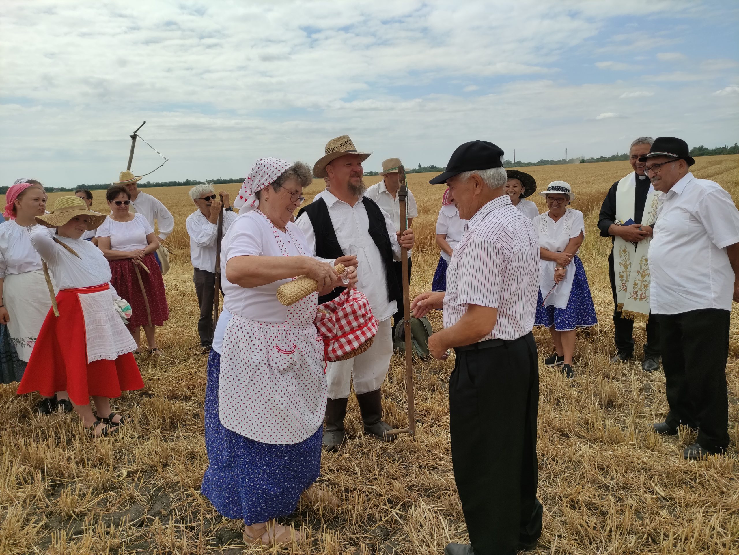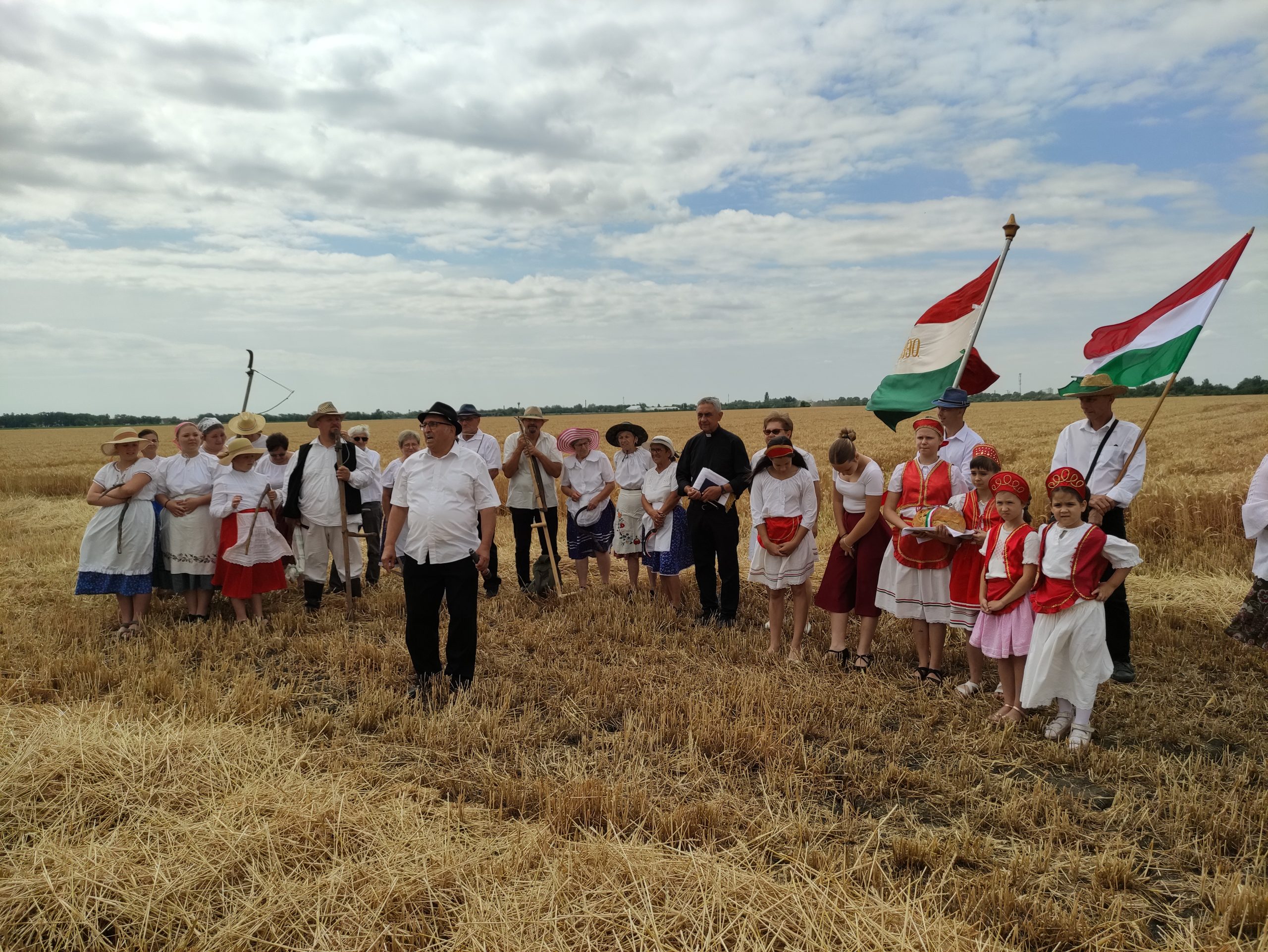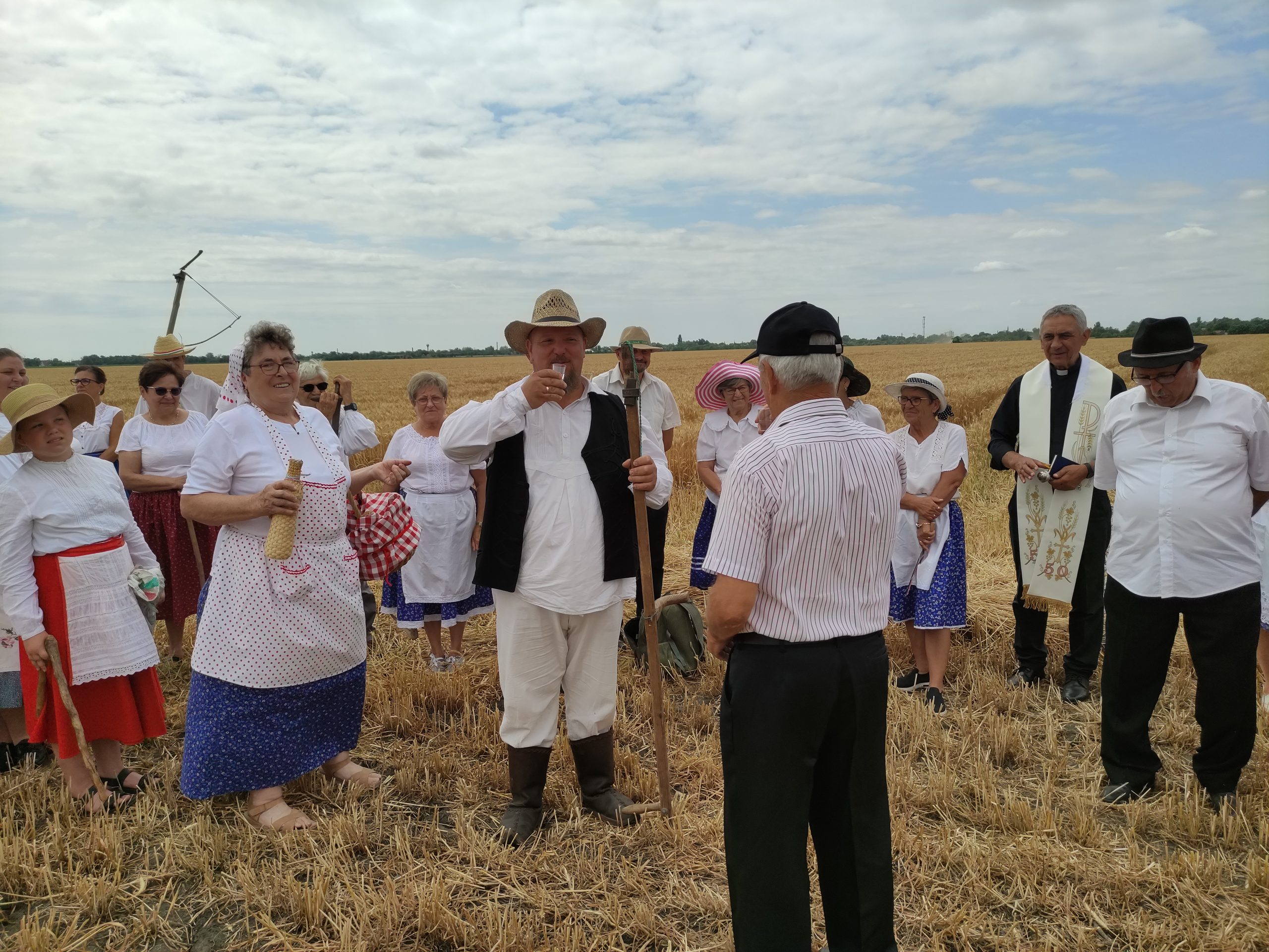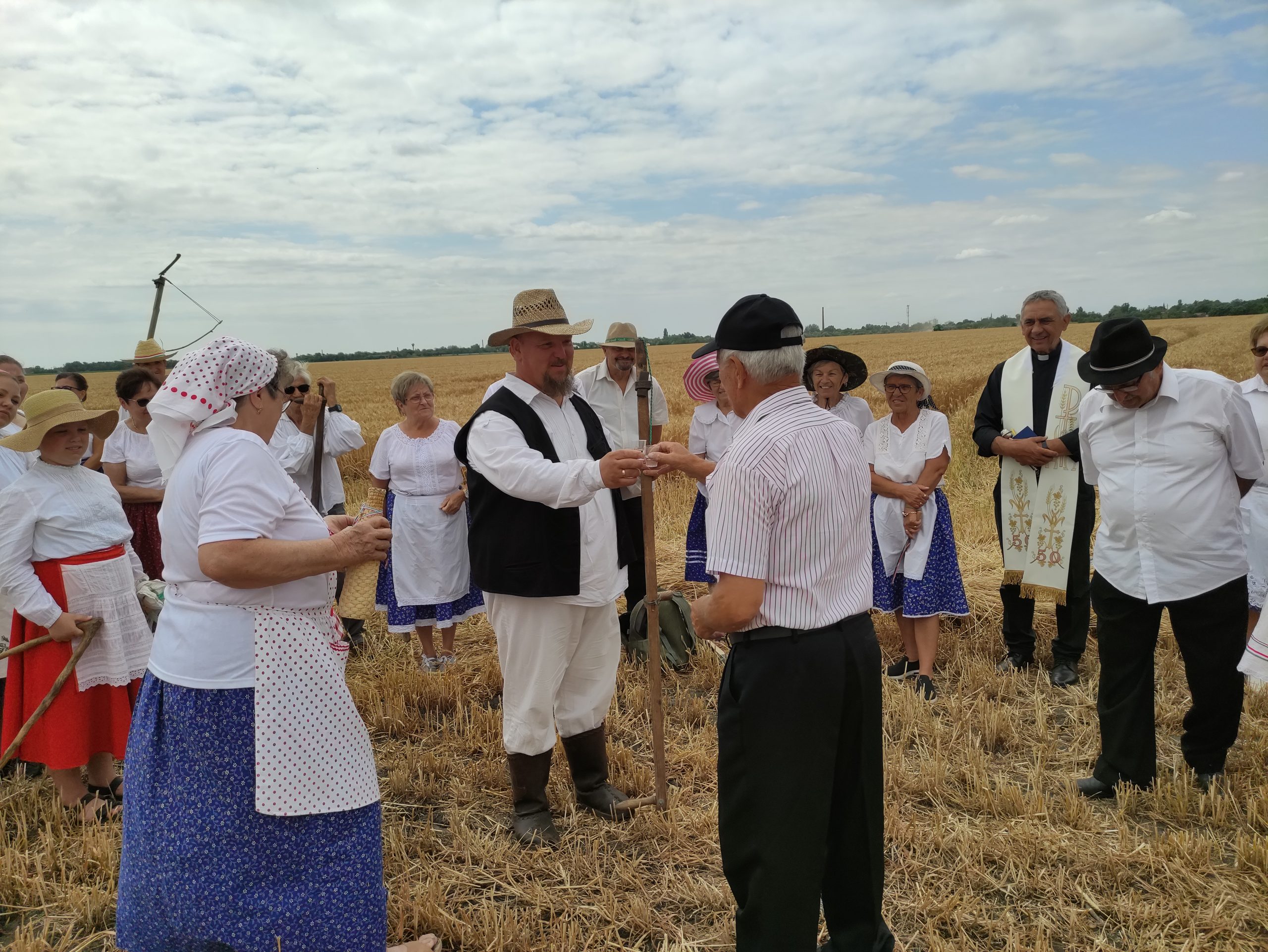 Itt előbb Német László esperes mondott áldást, mondván: nagyon meg kell becsülni az olvasókört, hogy megtartja az aratóünnep hagyományát. Majd megszentelte a búzatáblát, az új kenyeret, és megáldotta az aratókat.
