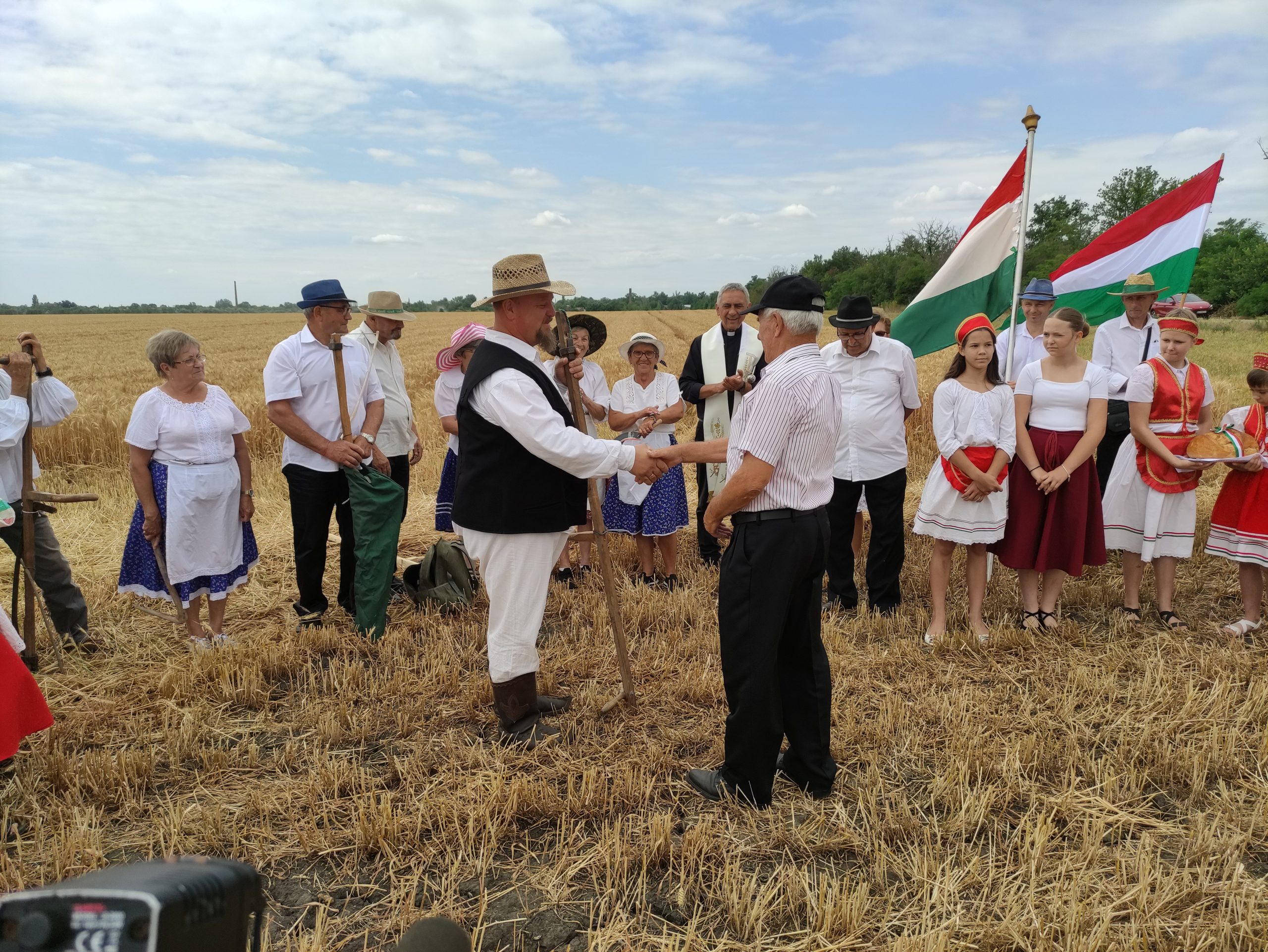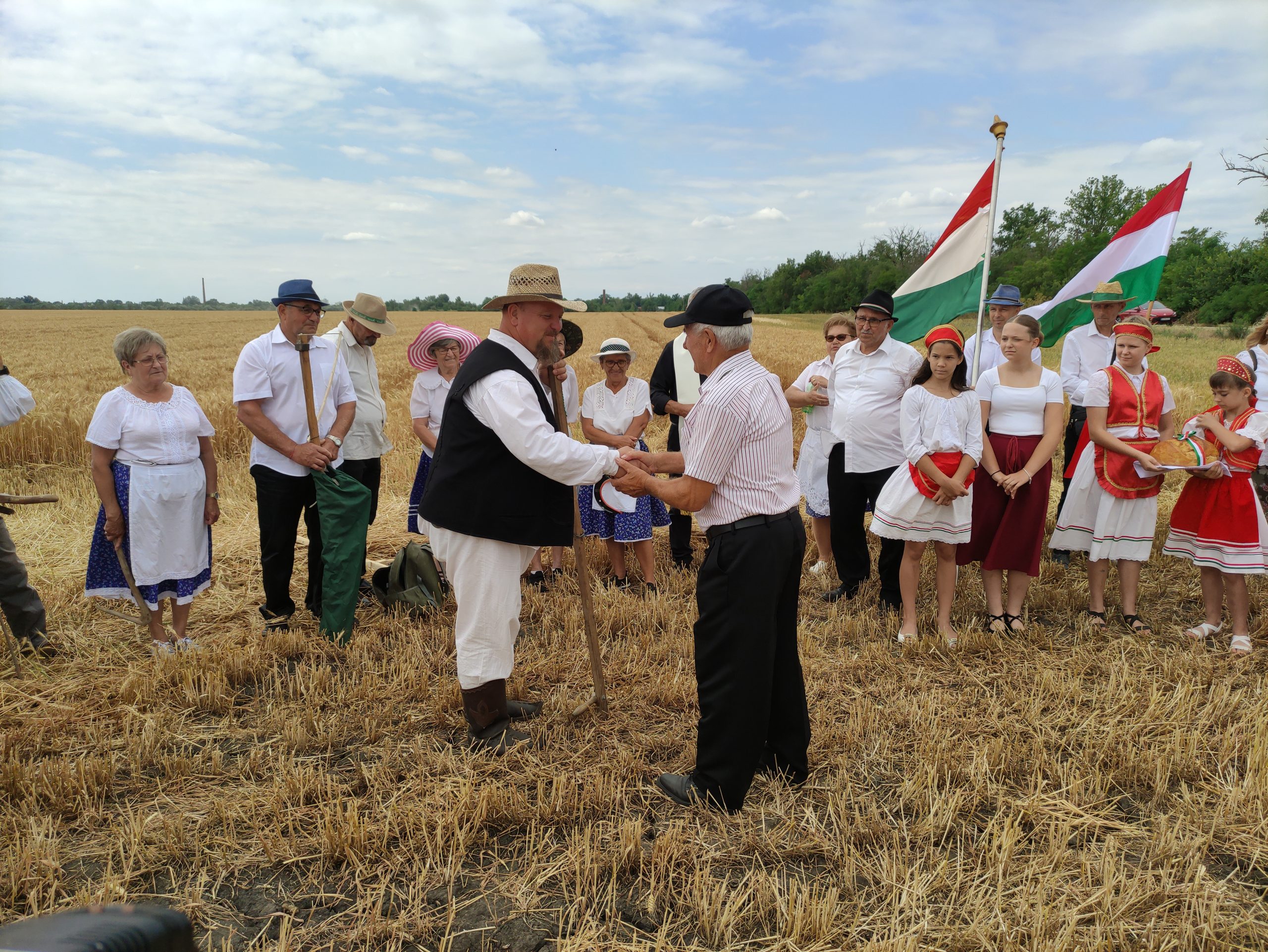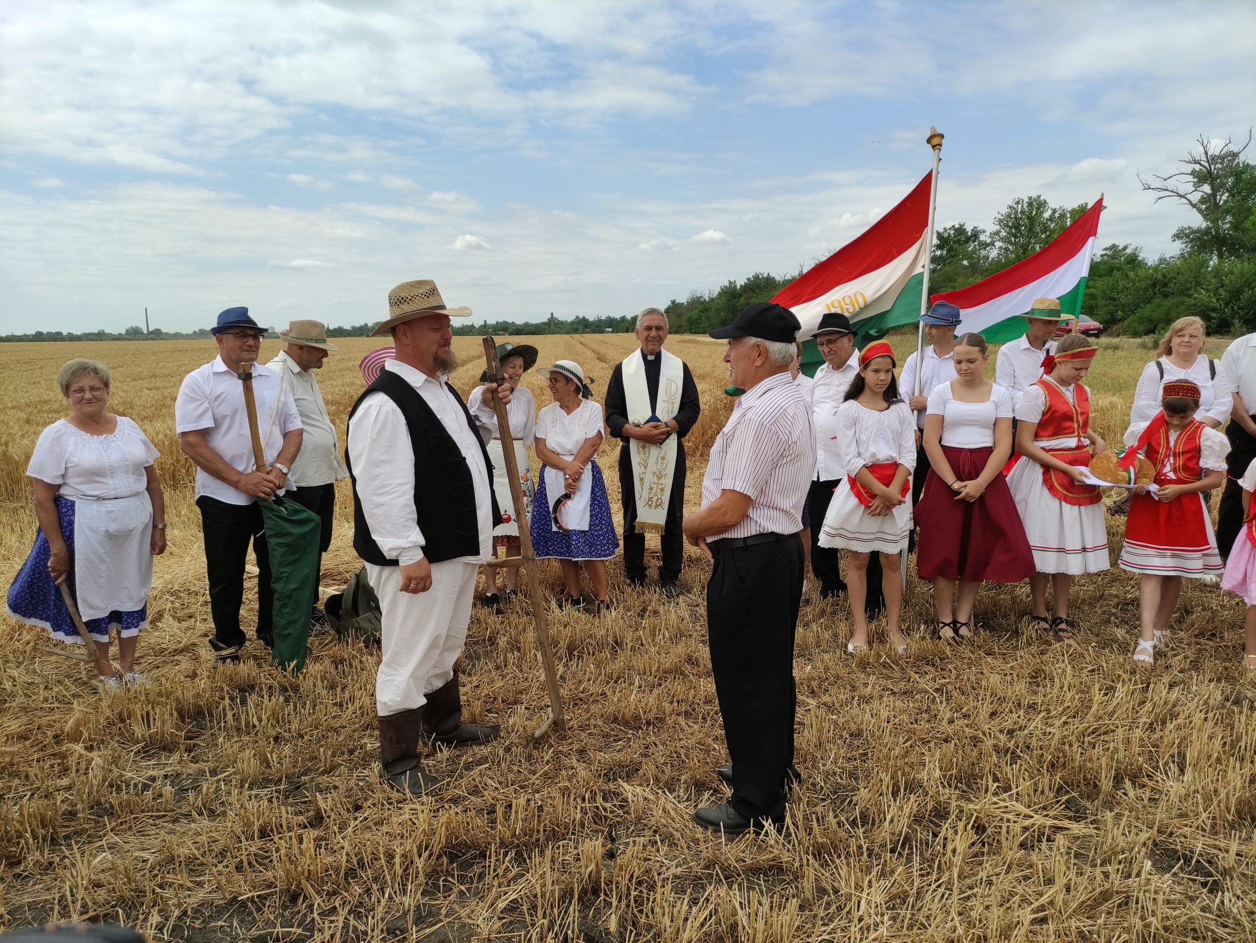 Gila István, az aratóünnep szervezője, – aki egyénileg 130 hektáron gazdálkodik, és egy 600 hektárt művelő vállalkozás vezetője is, – azt mondta, hogy két napja kezdtek el aratni. – Búzából jó közepes termés várható, de a minősége jó lesz. Nem volt csapadék, így nem kellett a fuzárium gomba ellen védekezni, de a levéltetvek miatt kétszer-háromszor is permeteztünk – mondta. Hozzátette, hogy 2020-ban fordult az időjárás a mostani, nagyon szárazra. 2022-ben csak 3 tonna búza termett egy hektáron, ami nagyon kevés, s a csapadékhiány miatt már a kukorica nagy részét le kellett silózni, mert csövet már nem tudott növeszteni. A napraforgó is csak 1 tonna terméshozamot produkált. Azt is elmondta, hogy Csongrád, Békés és Szolnok vármegyékben a kukorica vetésterülete azóta harmadára csökkent. Rengeteg napraforgó került a helyükre, aminek terméshozama a 2020 előtti 3,5 tonna körüliről mára 2,5–2,8 tonnára csökkent.