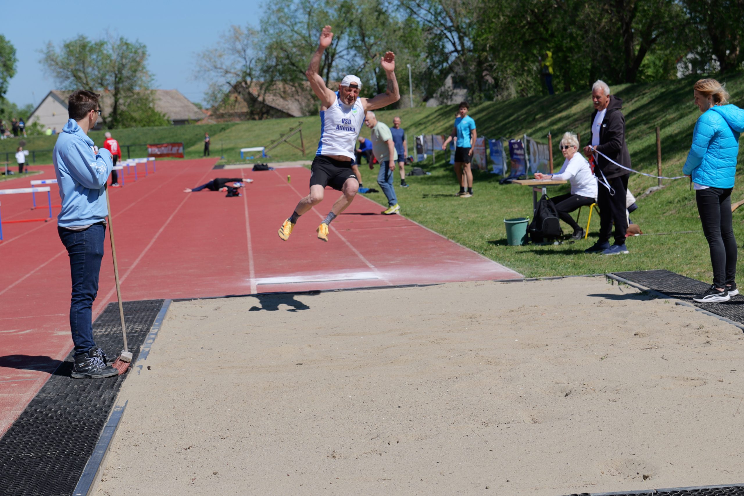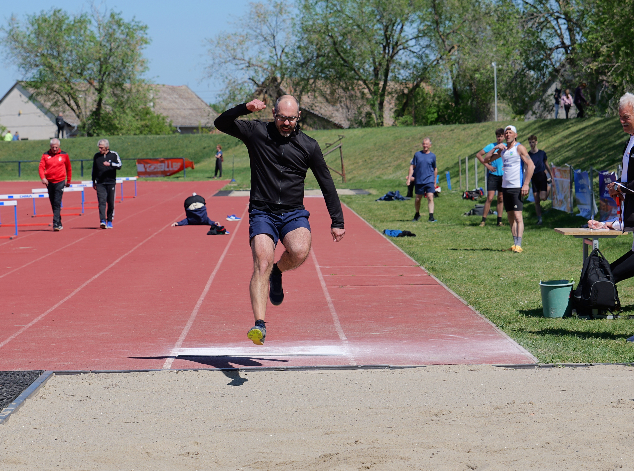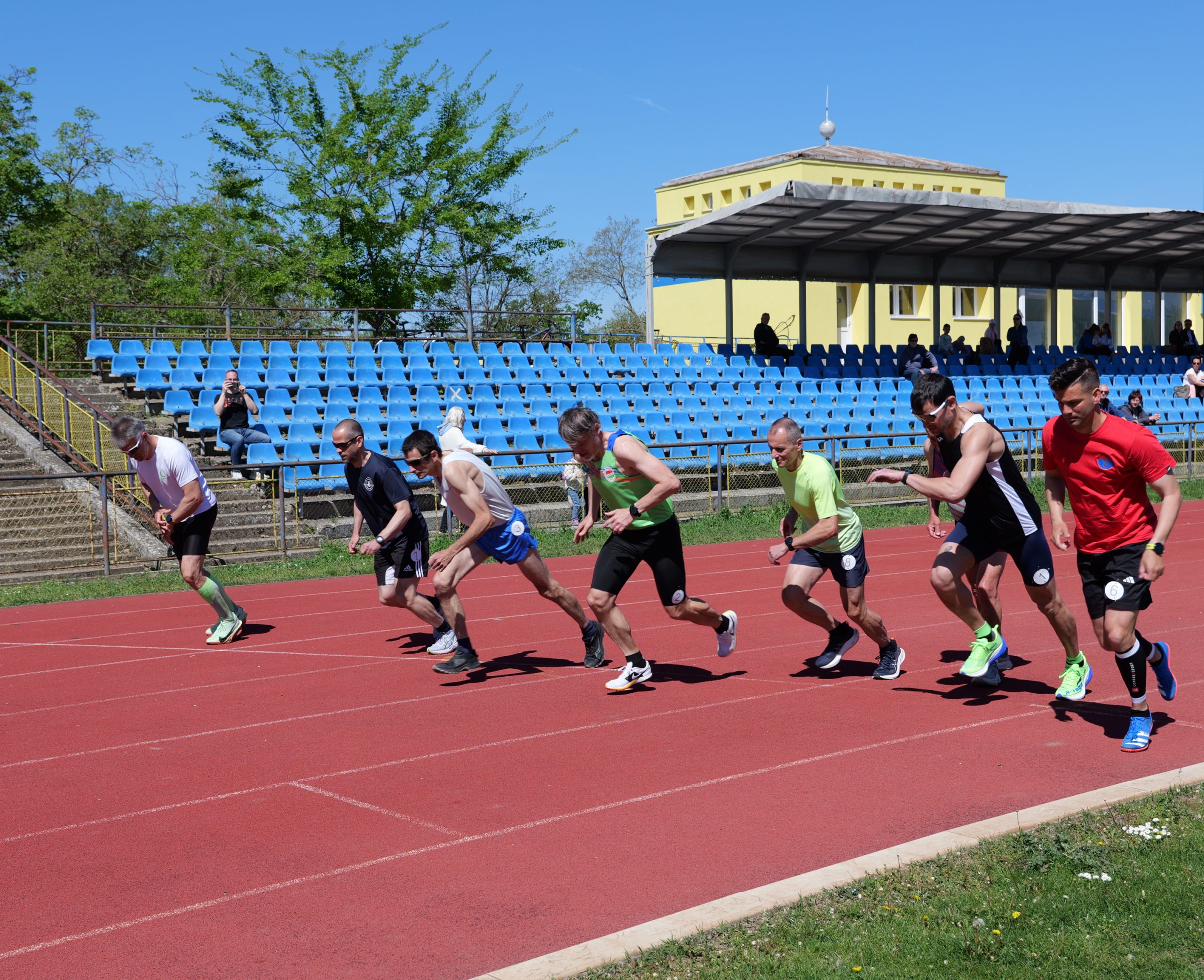 Csöppet sem zavarta a rendkívül erős szél az I. Héjja Antal Emlékverseny Szenior Országos Nyílt Atlétikai Verseny résztvevőinek bemelegítését, minden egyes induló úgy készült a versenyszámára, ahogyan egyébként is szokott. A távolugrókat némileg segítette, hogy nekik háttal fújt a szél, a többi versenyszámban induló pedig megbirkózott vele.