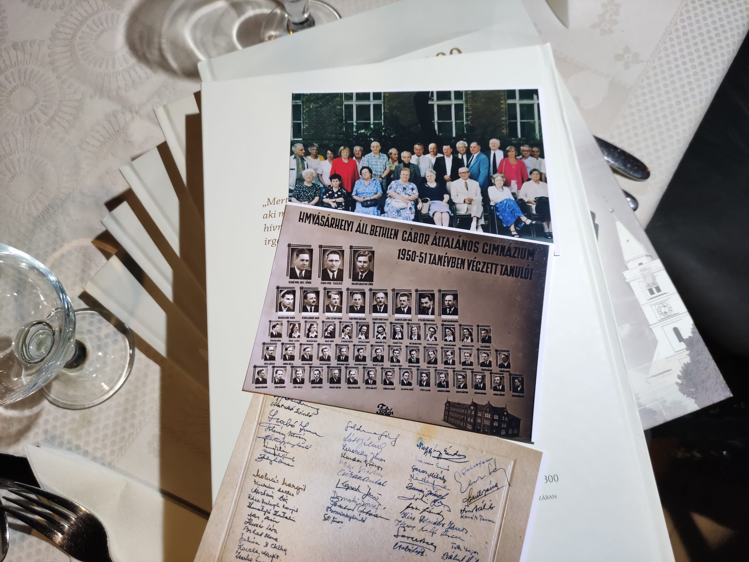 Hetvennégy évvel ezelőtt negyvenegyen érettségiztek az akkorra már államosított Bethlen Gábor Gimnáziumban. Közülük ma hárman vettek részt családtagjaikkal és egykori osztálytársaik hozzátartozóival azon az érettségi találkozón, amelyet ezúttal a Kökénydombi Csárdában rendeztek meg. Az egykori nagy létszámú osztály oka az volt, hogy a lánygimnáziumot megszüntették, és a lányosztályt befogadta a Bethlen.