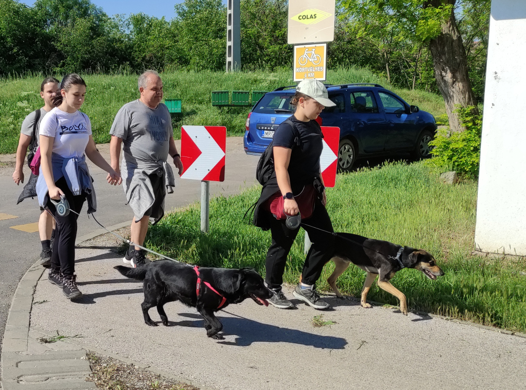 Kindlik Dóra és Miskolczi Anna kutyáikkal, Brunóval és Jackie-vel vágtak neki a közel 30 kilométeres távnak. Elmondták, hogy a kutyusok jól bírják az ilyen megpróbáltatásokat, és 20 kilométeres sétákkal készültek az eseményre. – Nekik és nekünk is jót tesz a mozgás, így legalább együtt lehetünk. Vagy nagyon elfáradnak a 30 kilométer végére, vagy simán lefutják az egészet – mesélték. – Mi mindenesetre sétálunk – tették hozzá nevetve. Arra is felhívták a figyelmet, hogy az ebekre útközben figyelni kell, különösen arra, hogy ne szaladjanak el, illetve mit szimatolnak vagy találnak éppen az út mentén.