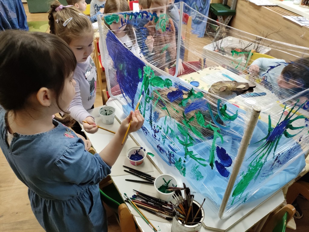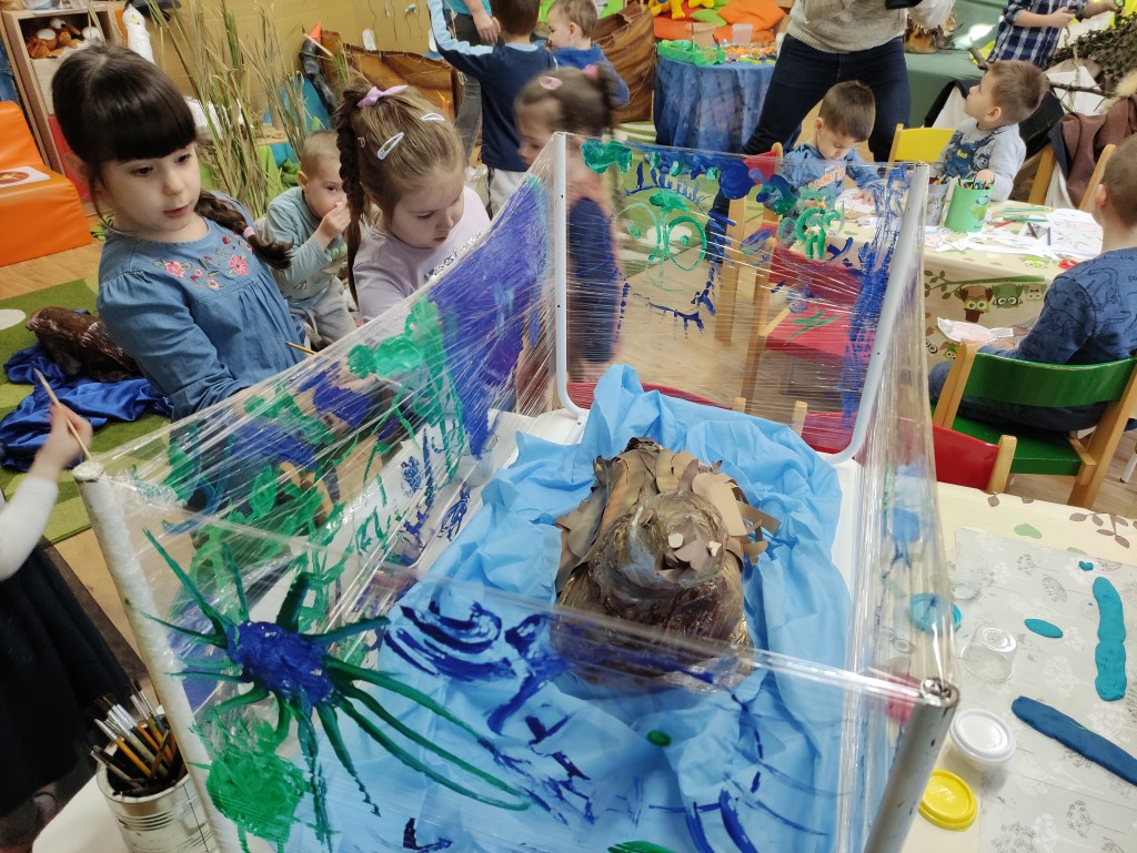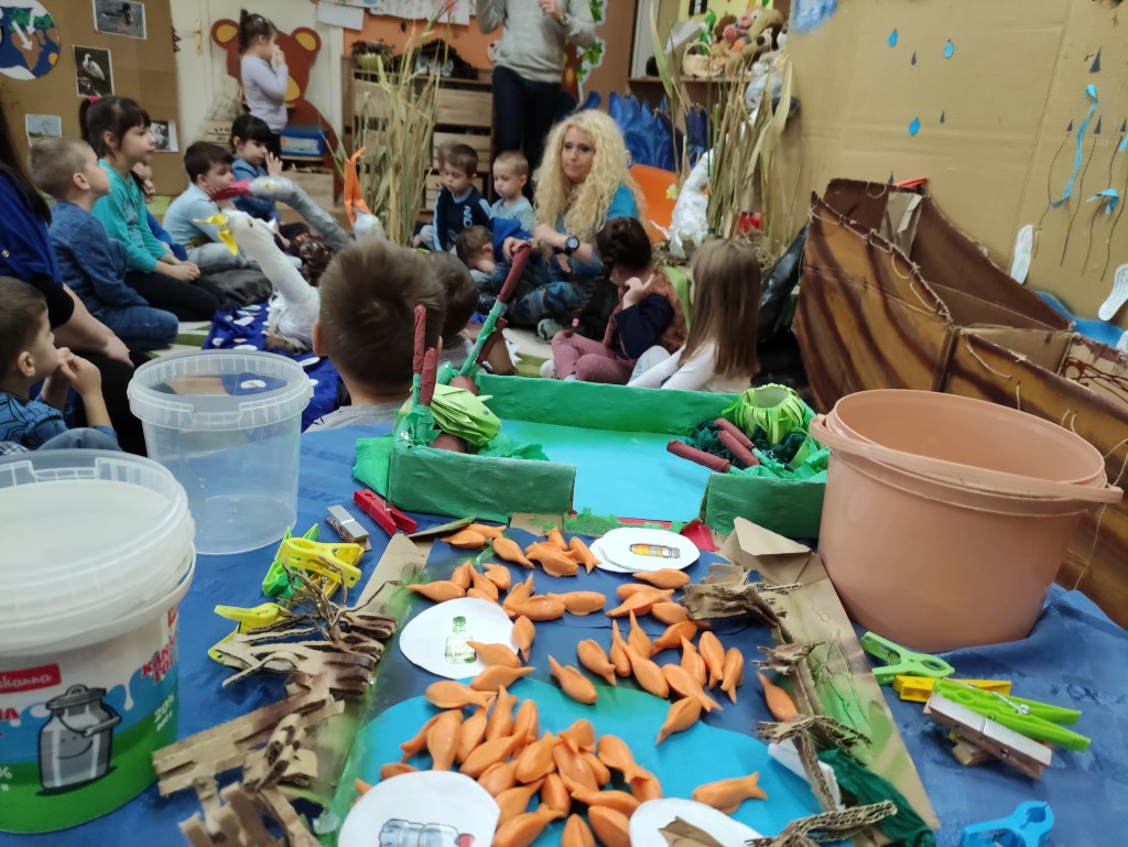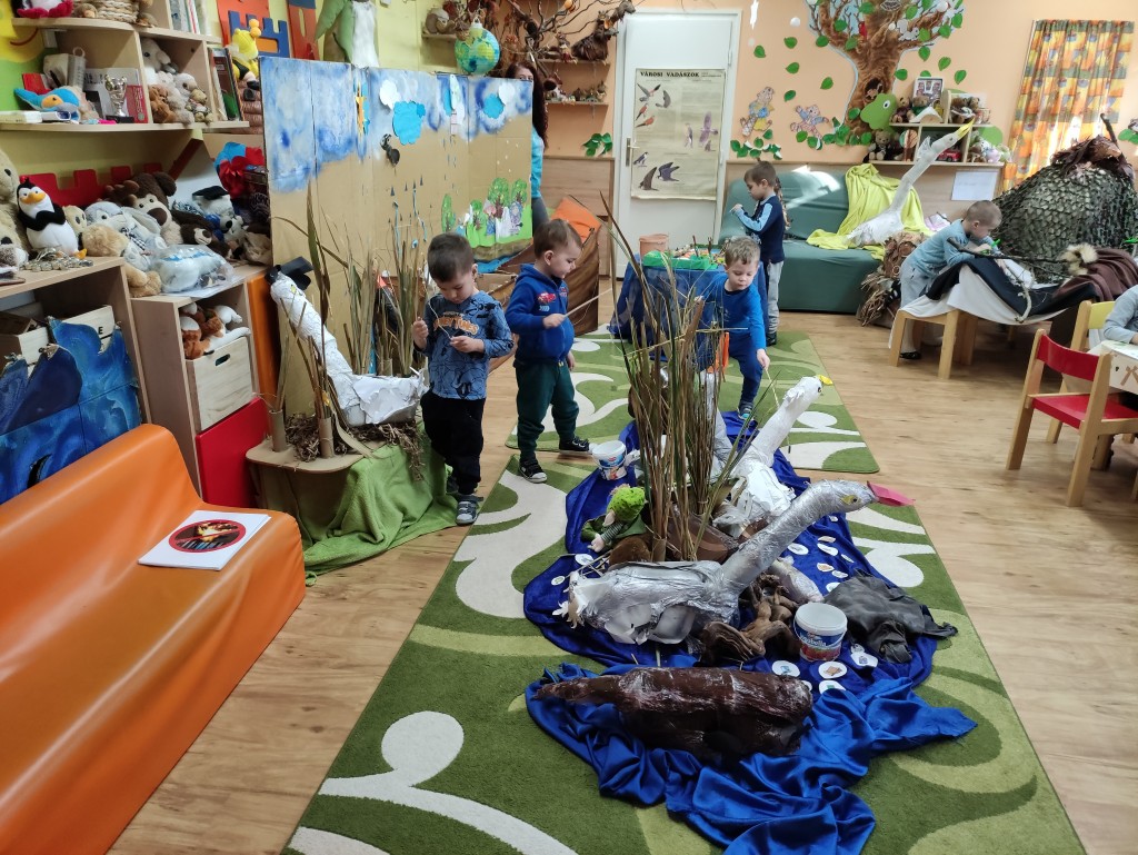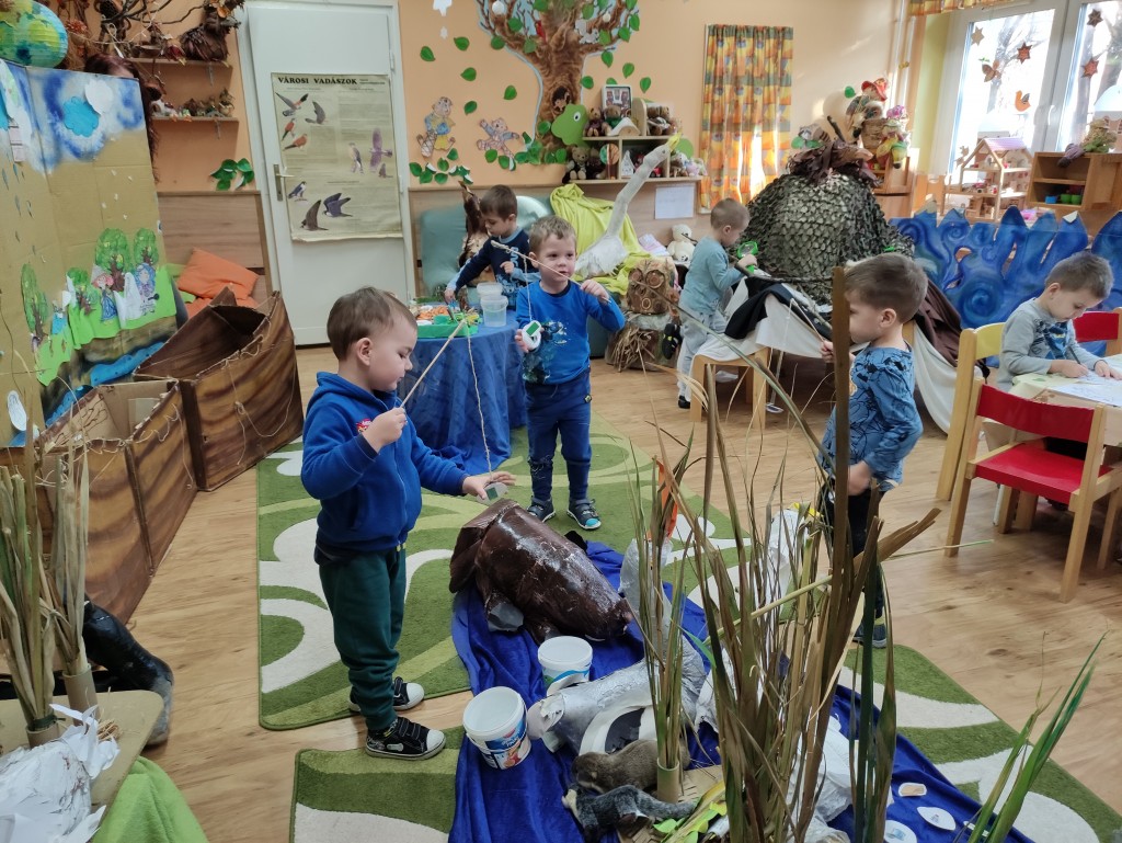 Ma azonban nem a Tisza-parton, de az óvodában bújhattak be a hódvárba, menthettek kacsát, horgászhattak halakat, vagy rajzolhattak, festhettek különféle állatokat, egy kishód kalandjait bemutató közös mese után.