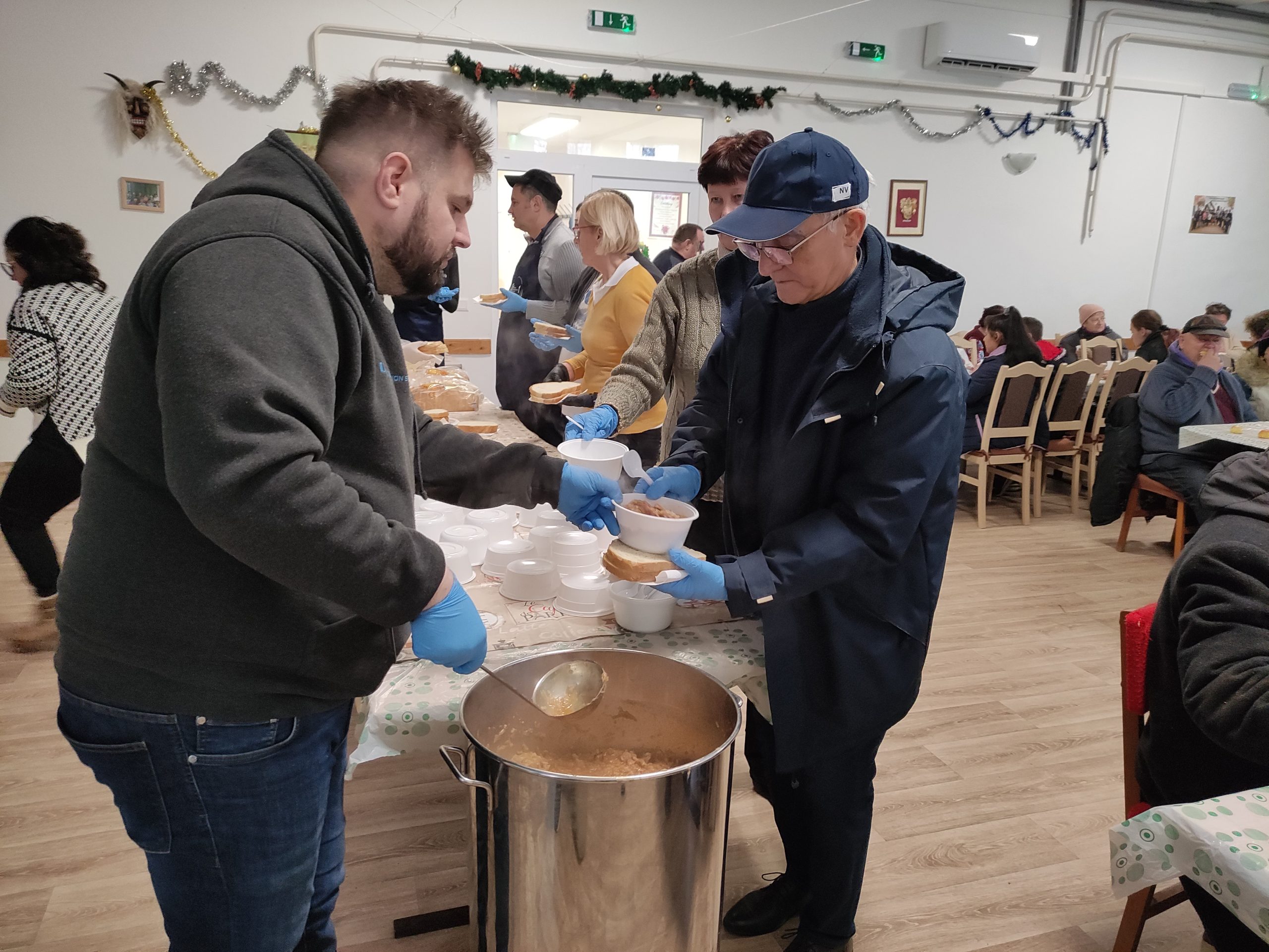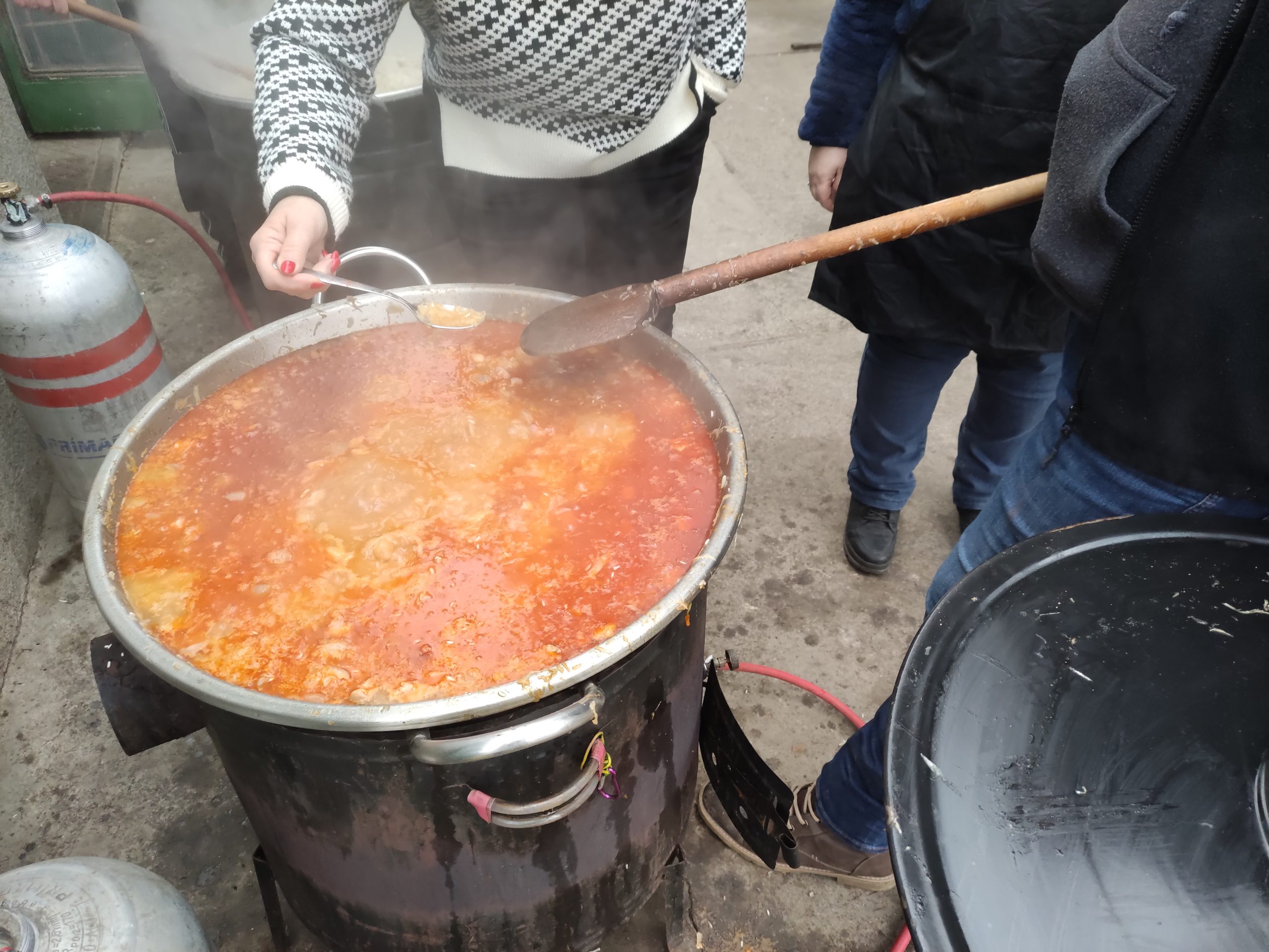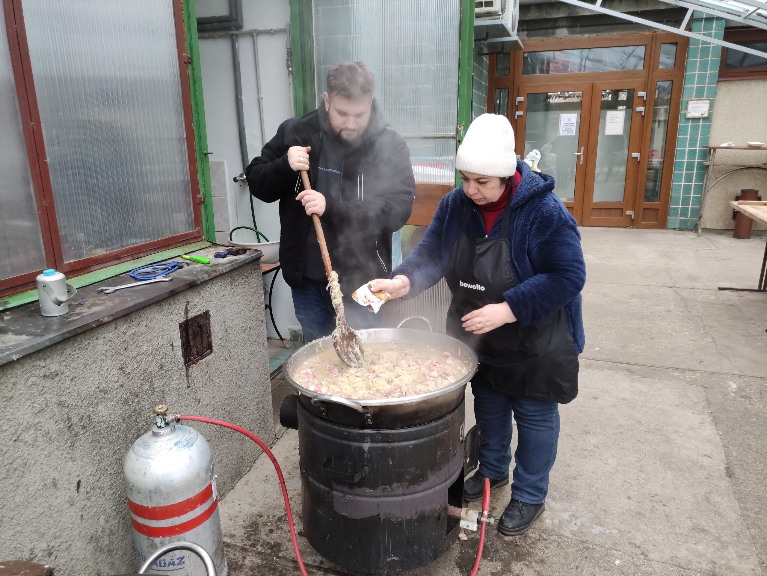 – Reggel 8 órakor kezdtük el az étel elkészítését, összesen tizenöt segítővel közösen. Mivel karácsonyi alkalomról volt szó, húsos káposztával készültünk. Az ételbe 52 kilogramm hús került, ebből 12 kilogramm füstölt csülök. Ehhez 30 kilogramm édeskáposztát, 10 kilogramm savanyú káposztát, 10 kilogramm hagymát, valamint egy kevés rizst is tettünk bele, hogy tartalmasabb legyen. Természetesen a szükséges fűszereket is felhasználtuk a körülbelül 200 adag étel elkészítéséhez. A főzésben összesen tizenöten vettünk részt – mondta.