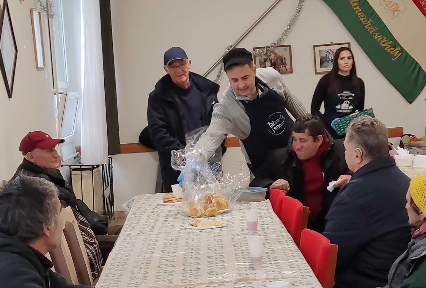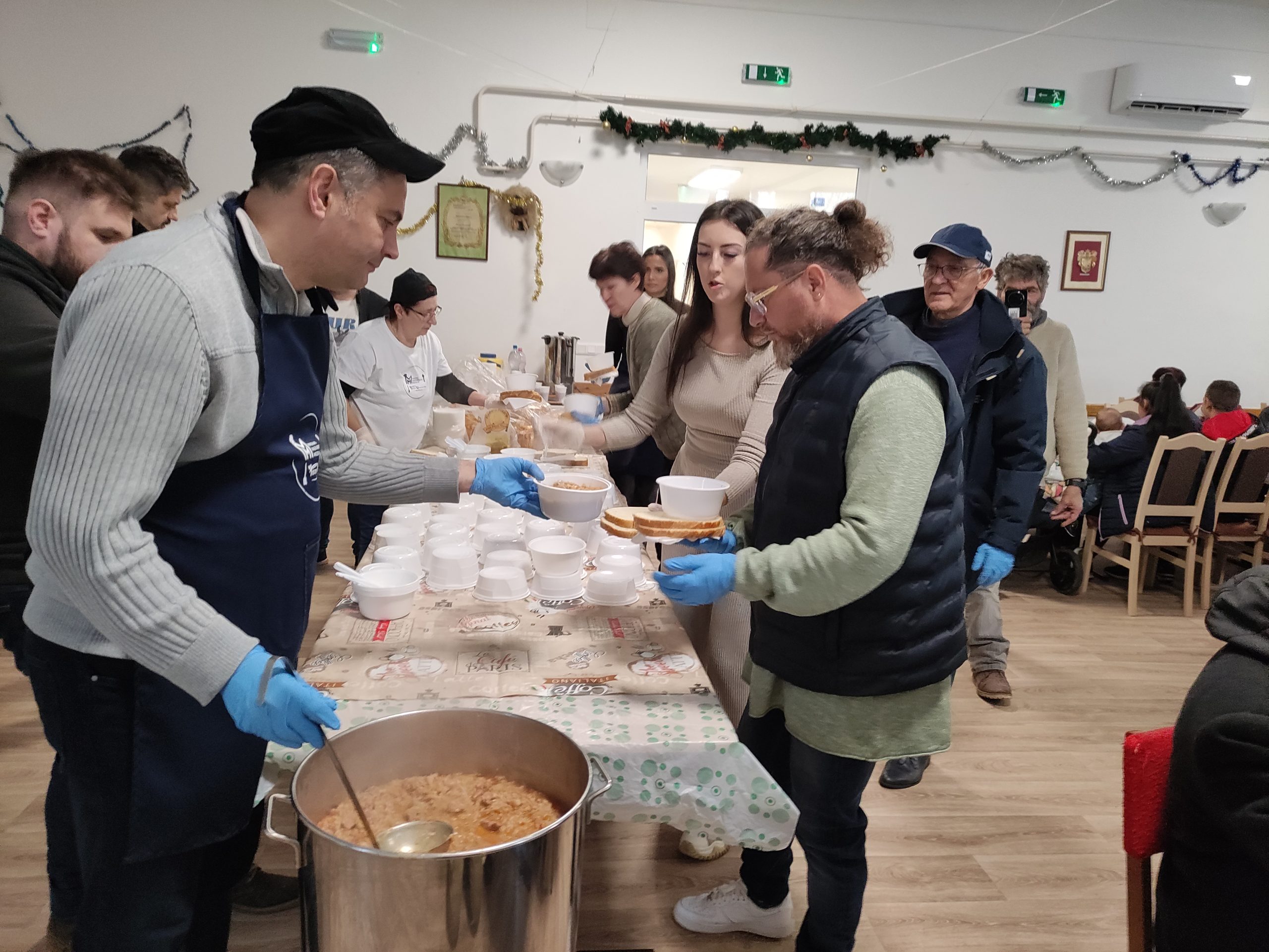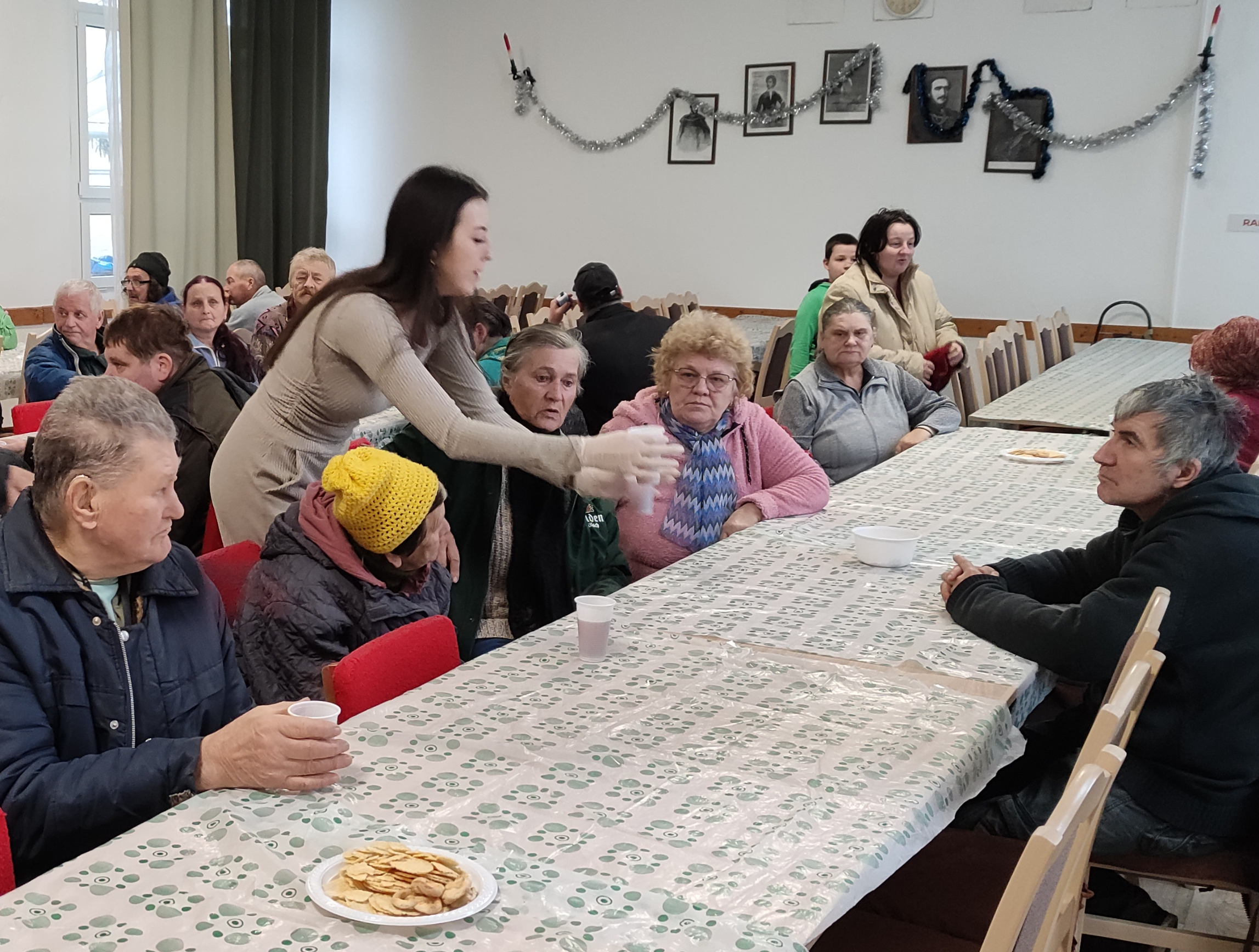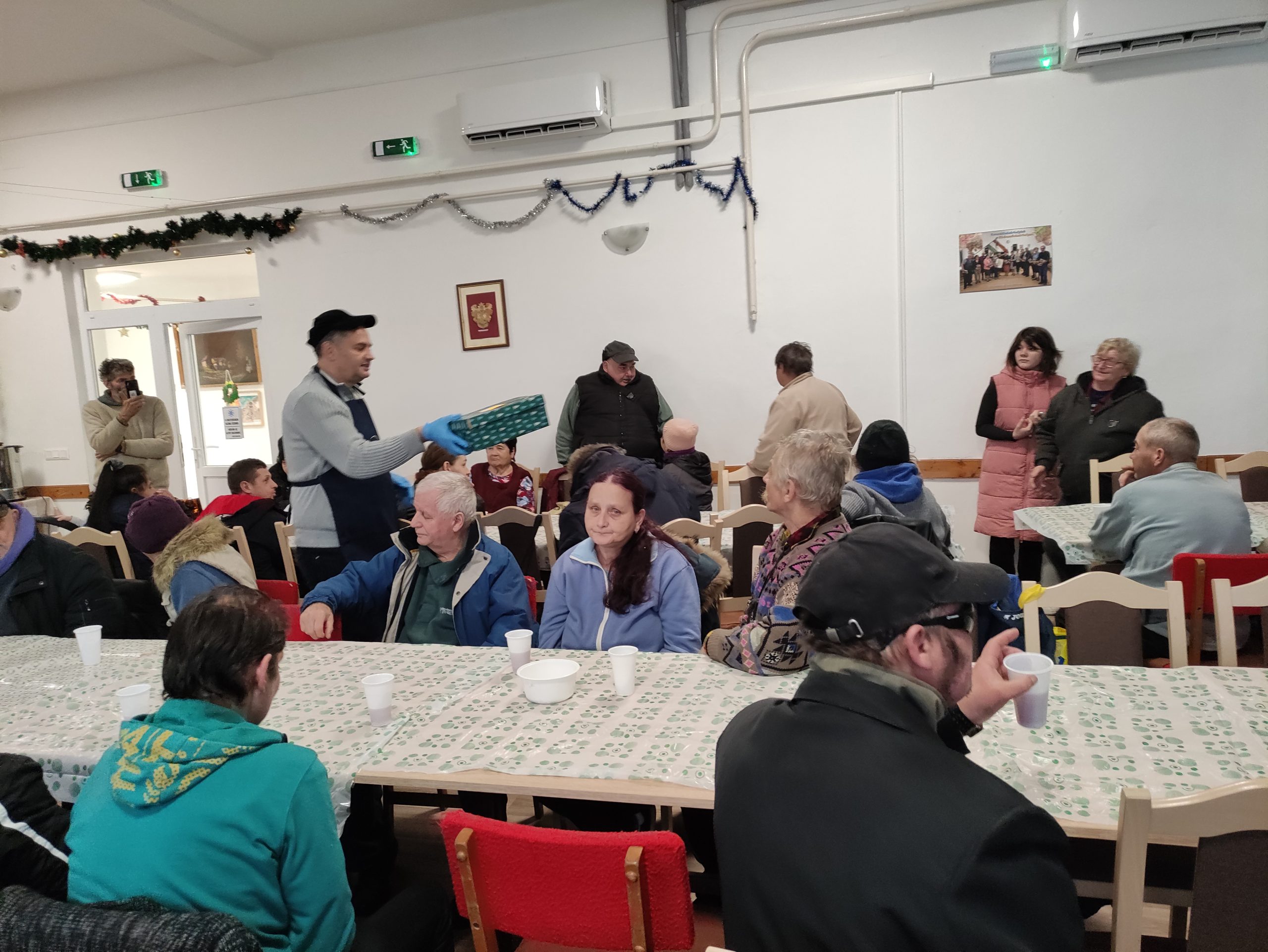 – Nagyon készültünk erre az alkalomra, hiszen a karácsony alkalmával egy kis pluszt szerettünk volna adni az ide érkezőknek. Ebben nagy segítségünkre volt a Plazmatikum, amely megvásárolta az alapanyagokat, és el is juttatta azokat hozzánk. A bejgliket a Mindenki Magyarországa Mozgalom vásárhelyi adományokból tudta megvásárolni, ezért köszönettel tartozunk a vásárhelyieknek is, hiszen nélkülük ez a mai ételosztás nem jöhetett volna létre. A szaloncukrokat a Vivahód Kft. adományozta számunkra, a teát pedig Momótól kaptuk – árulta el Kecskés Fanni önkéntes. Mint mondta, az összefogásnak köszönhetően az ételosztás több mint negyven résztvevője karácsonyra készülve ismét együtt ebédelhetett, ahogyan azt a korábbi rendszeres ételosztások alkalmával is megszokhatták.