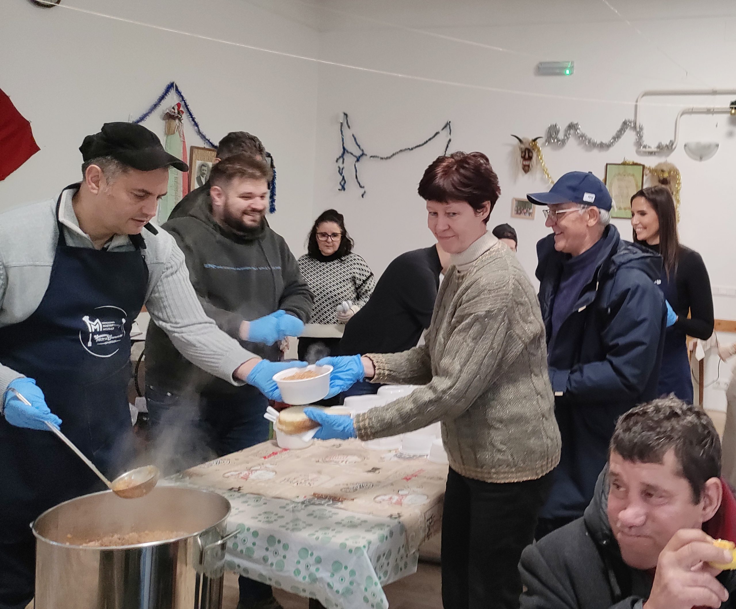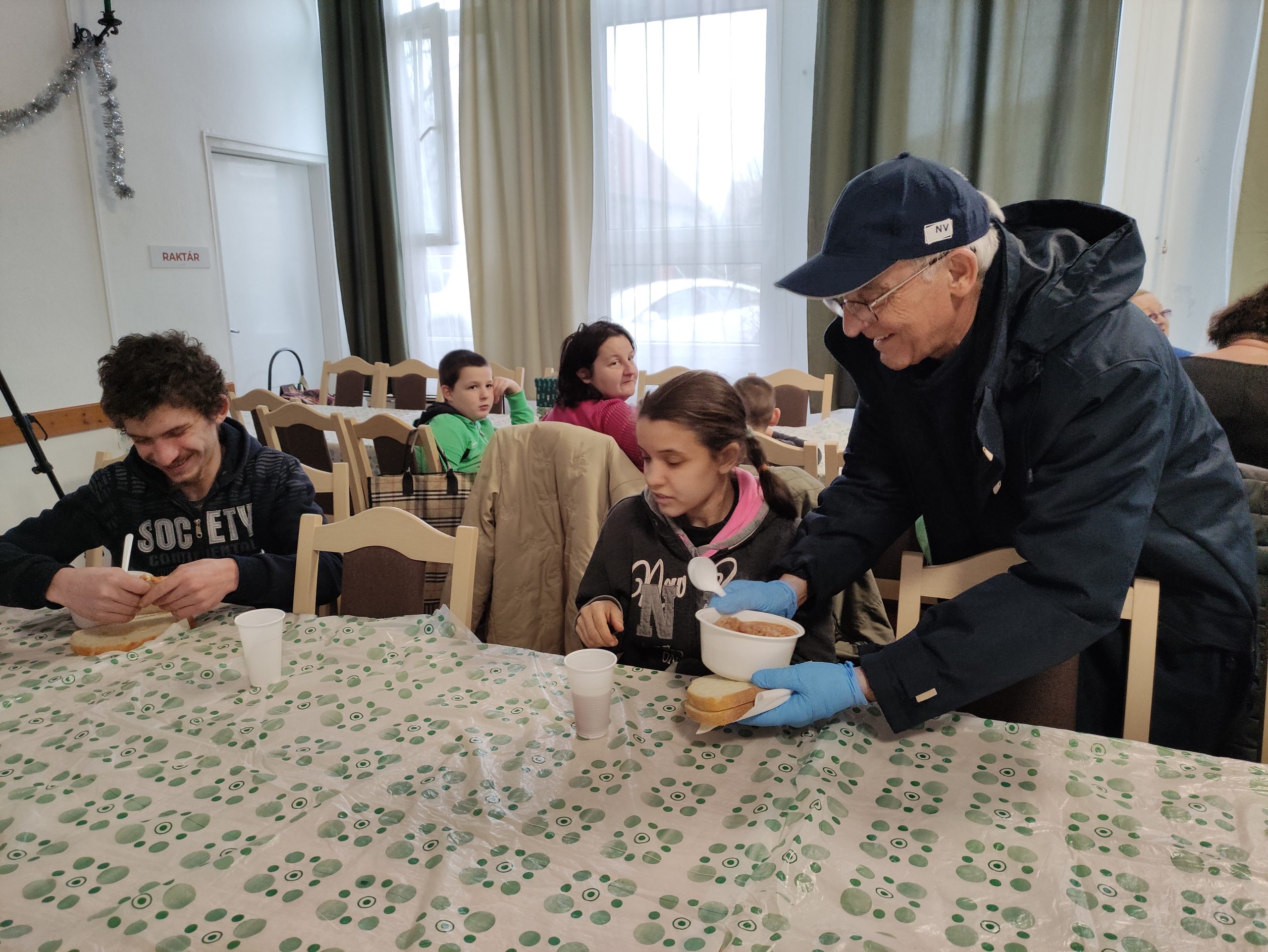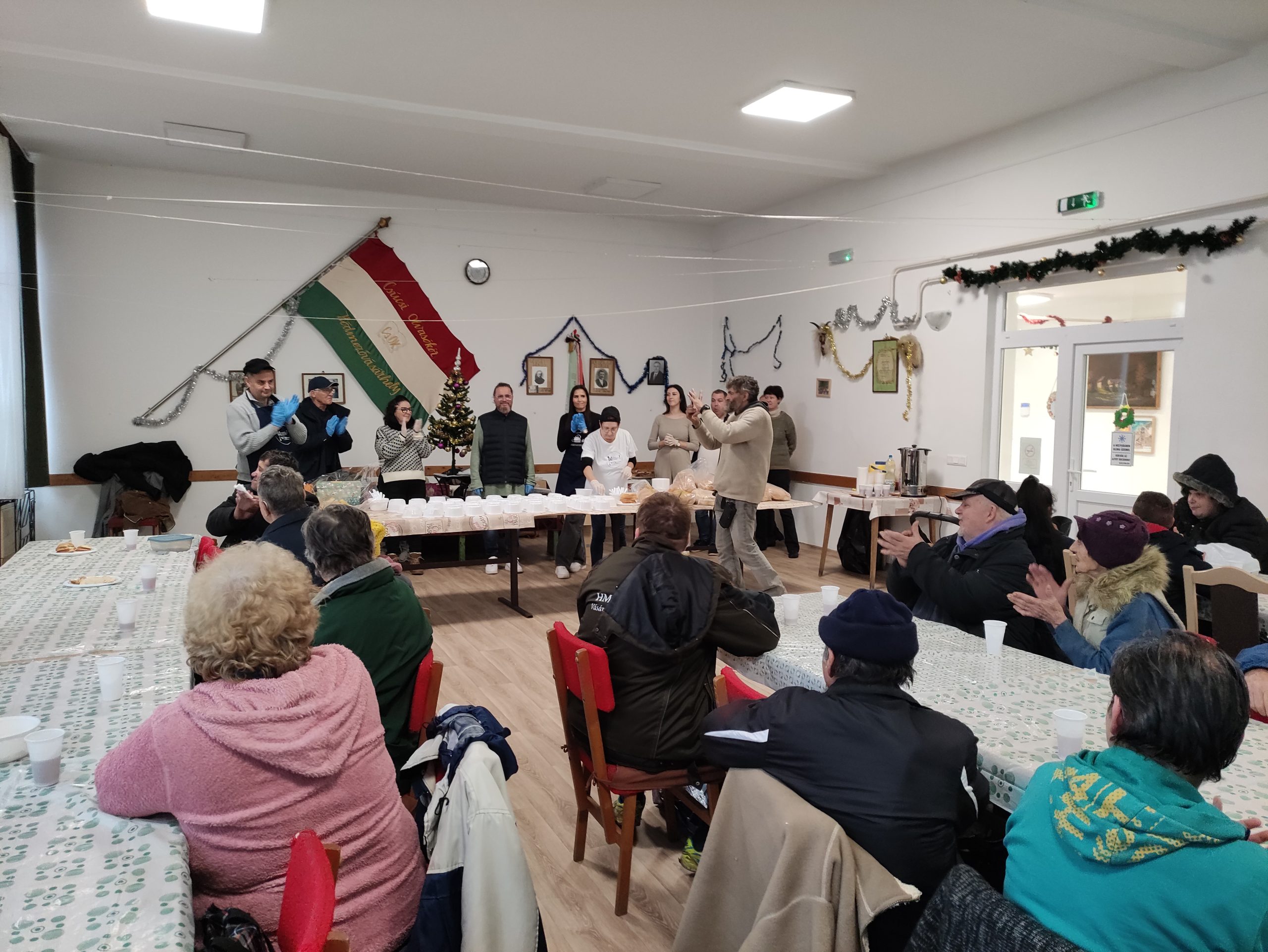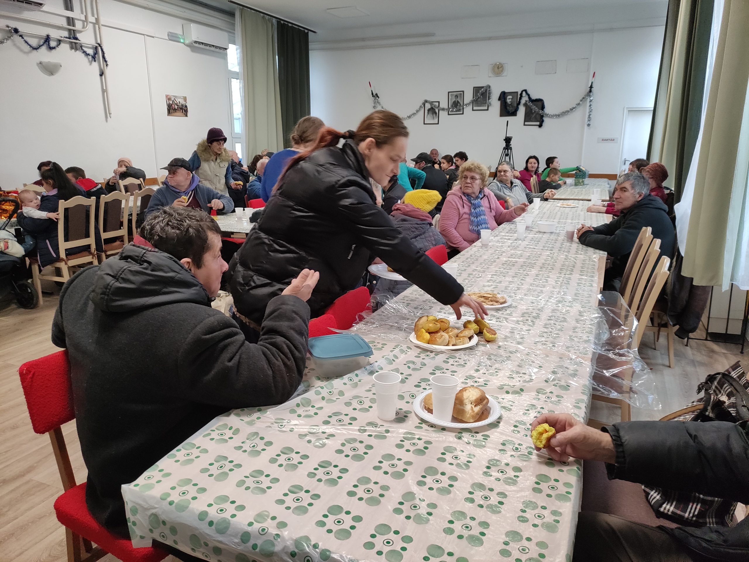 – Nagyon készültünk erre az alkalomra, hiszen a karácsony alkalmával egy kis pluszt szerettünk volna adni az ide érkezőknek. Ebben nagy segítségünkre volt a Plazmatikum, amely megvásárolta az alapanyagokat, és el is juttatta azokat hozzánk. A bejgliket a Mindenki Magyarországa Mozgalom vásárhelyi adományokból tudta megvásárolni, ezért köszönettel tartozunk a vásárhelyieknek is, hiszen nélkülük ez a mai ételosztás nem jöhetett volna létre. A szaloncukrokat a Vivahód Kft. adományozta számunkra, a teát pedig Momótól kaptuk – árulta el Kecskés Fanni önkéntes. Mint mondta, az összefogásnak köszönhetően az ételosztás több mint negyven résztvevője karácsonyra készülve ismét együtt ebédelhetett, ahogyan azt a korábbi rendszeres ételosztások alkalmával is megszokhatták.