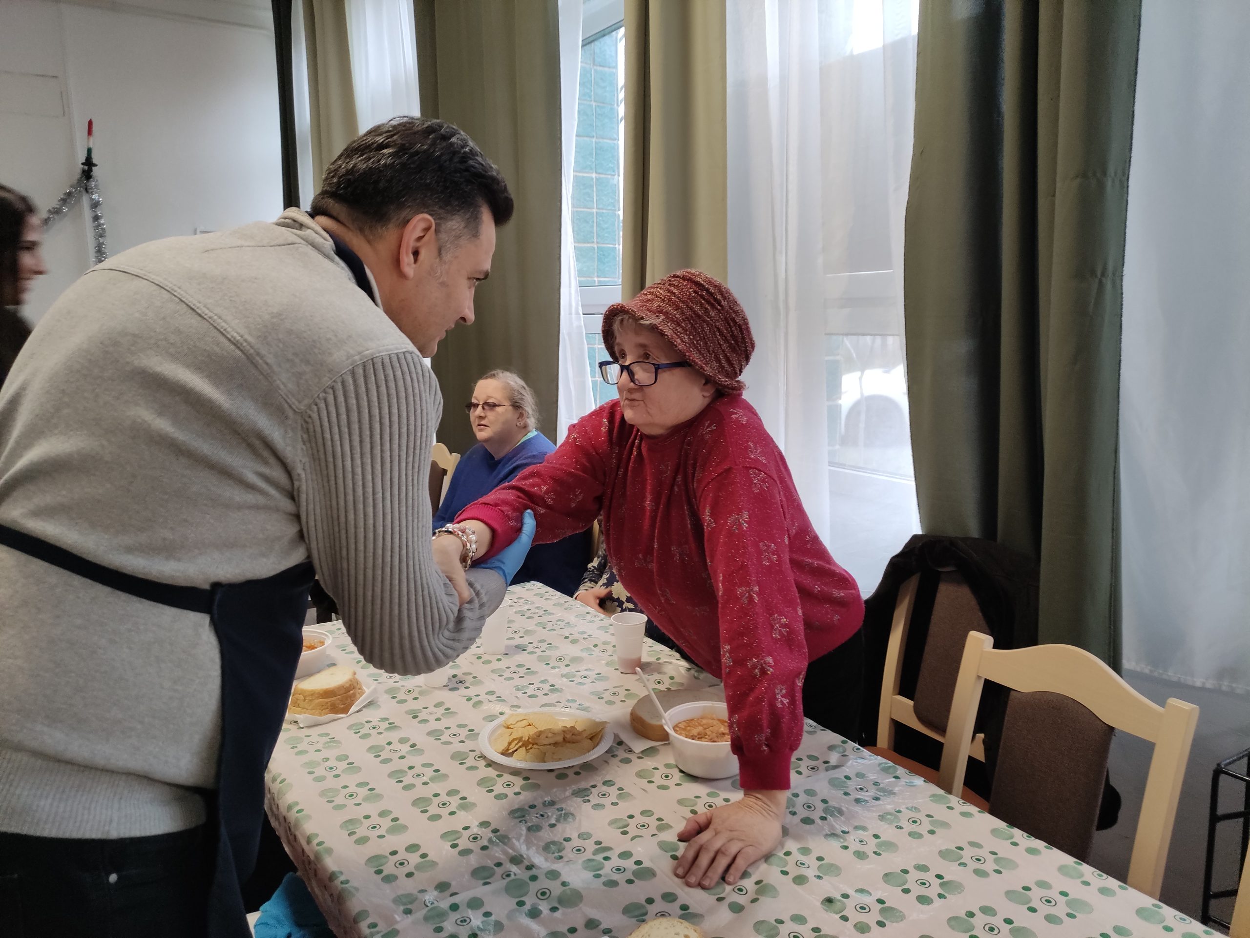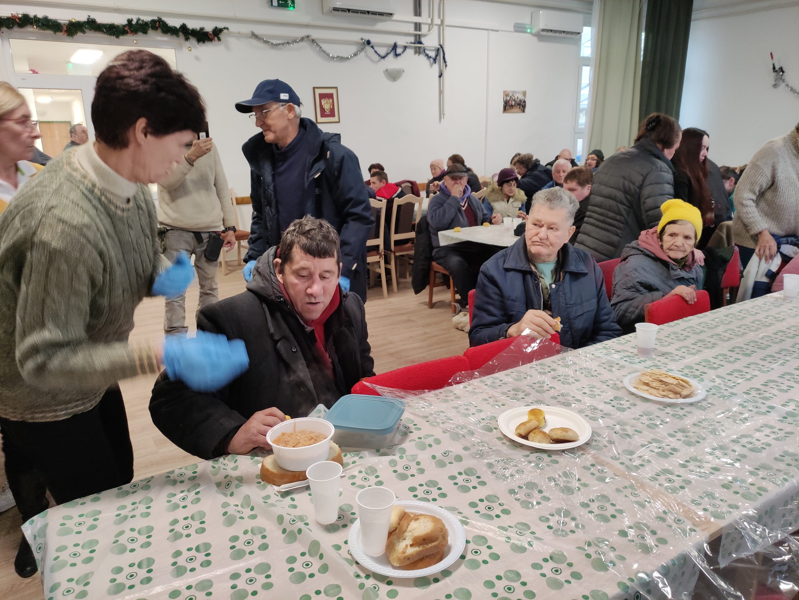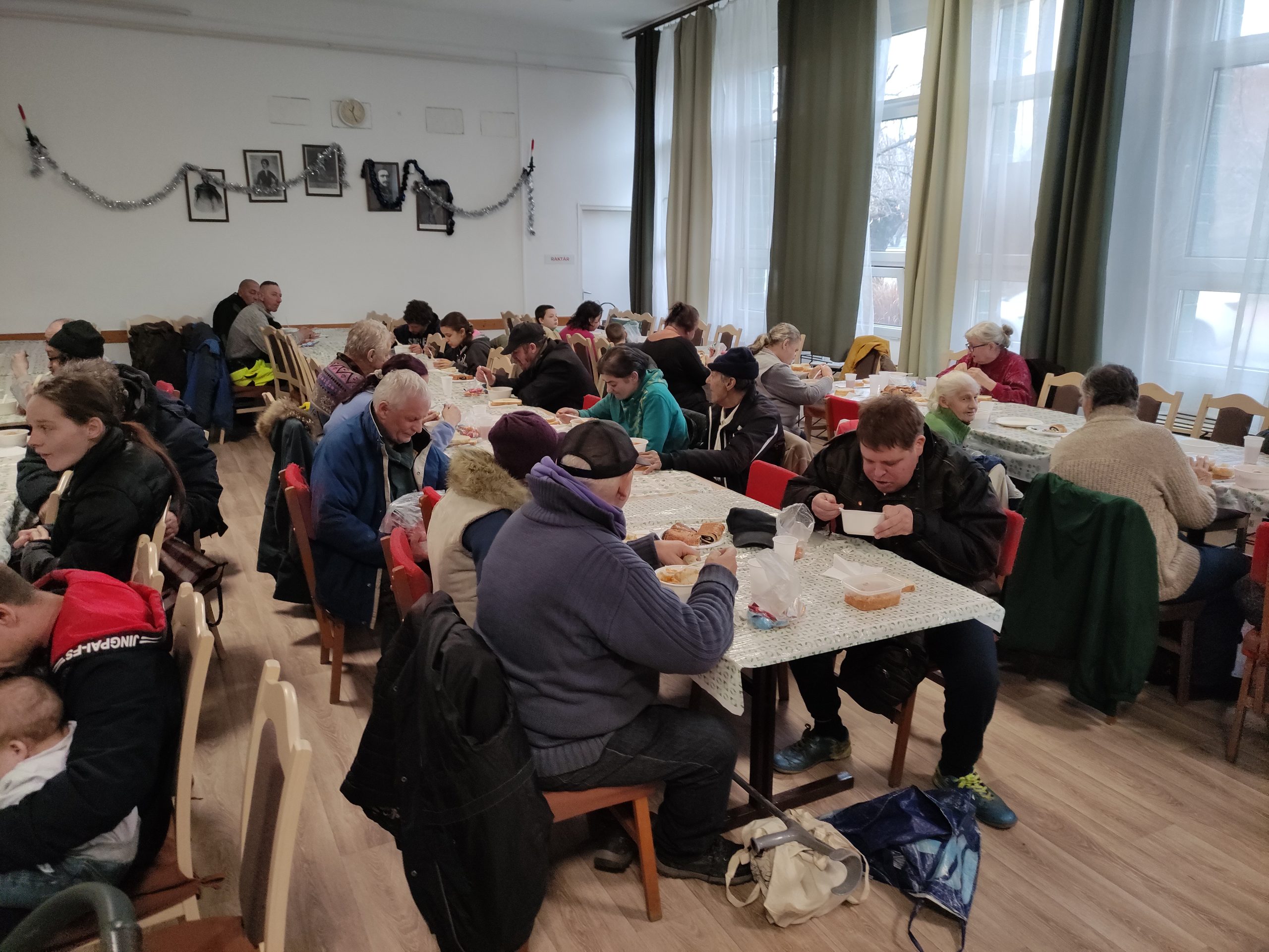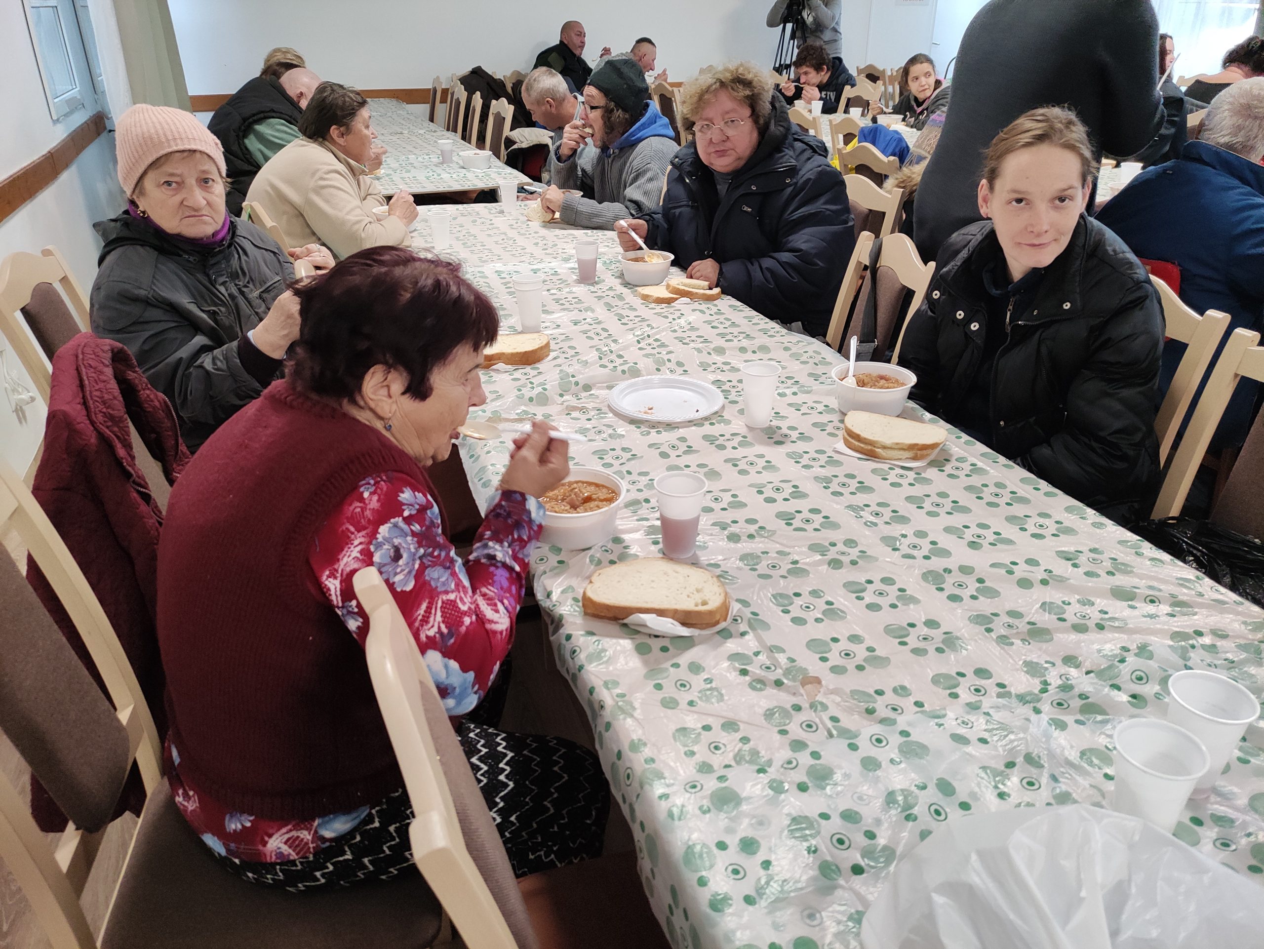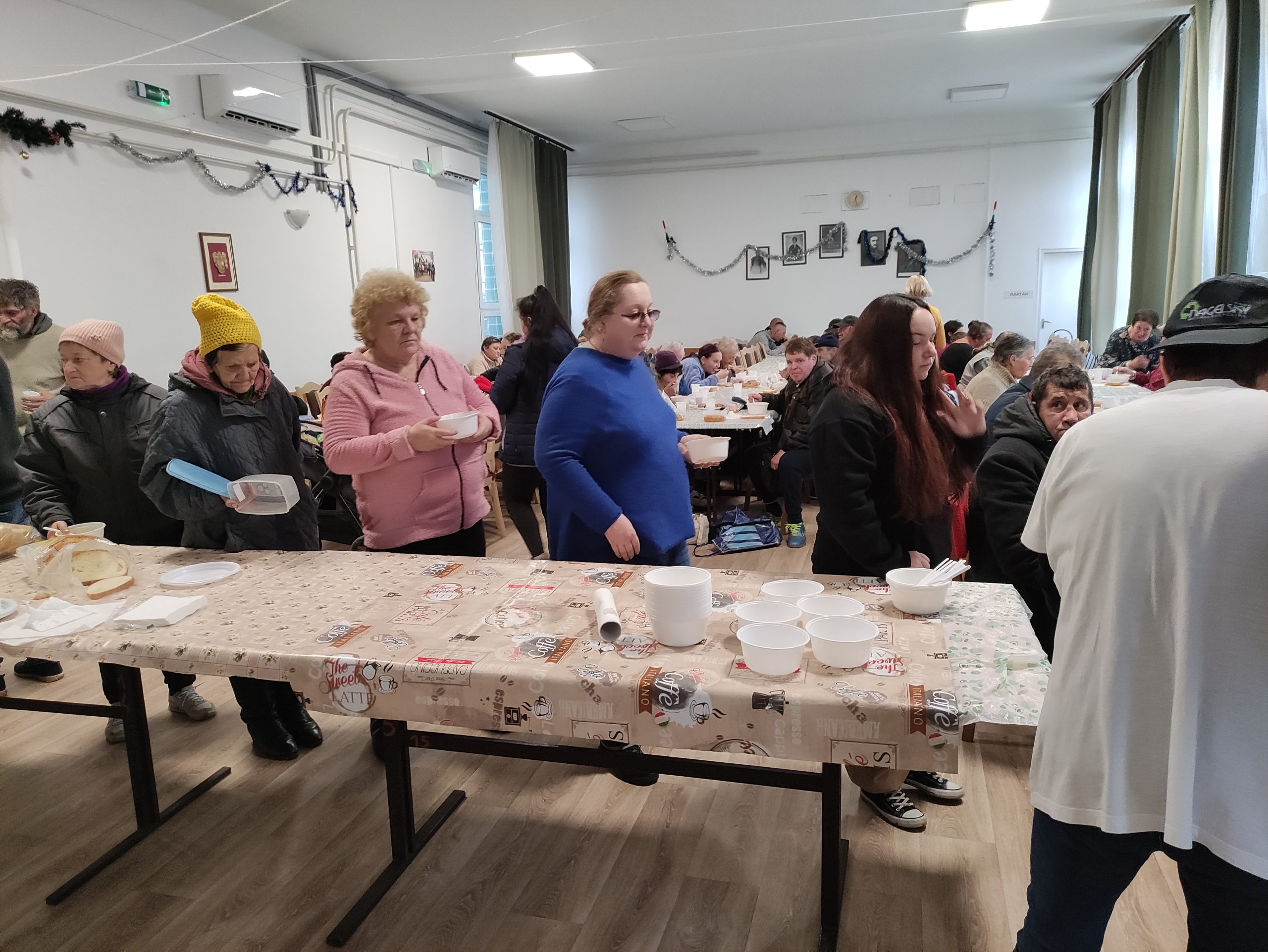 – Azért jó itt lenni, mert emberek között vagyok, és itt biztos a karácsony, ami máskor bizonytalan – ezt már Ibolya néni mondta. Hozzátette: nagyon jólesik számára ez a gesztus, és az étel is rendkívül finom volt, ahogyan a korábbi ételosztások alkalmával is. – Az is sokat számít, hogy társaságban vagyok, most is van ismerős, akivel beszélgethetek. Nagyon örülök, hogy szaloncukrot, bejglit és teát is kaptunk – fogalmazott.