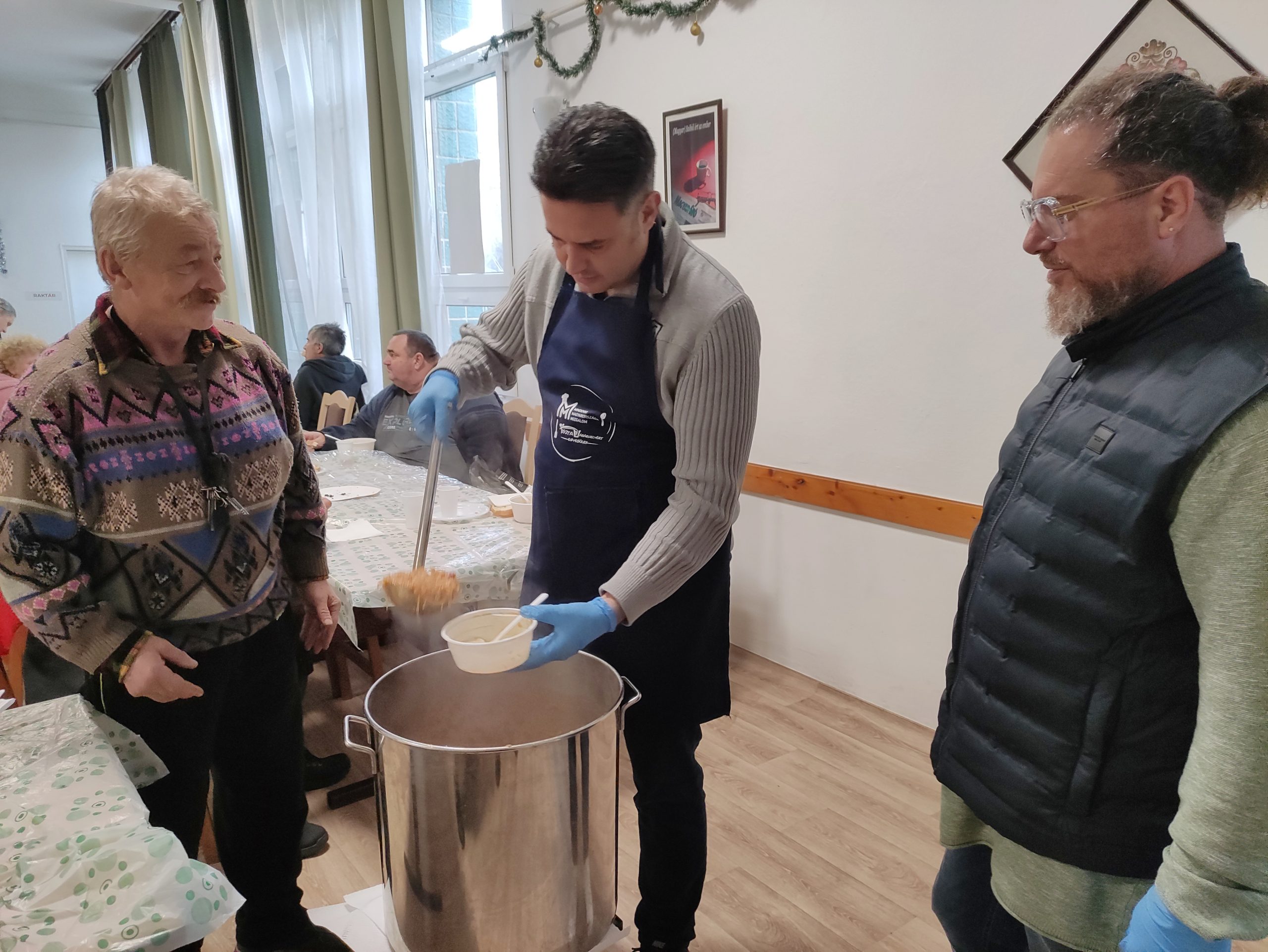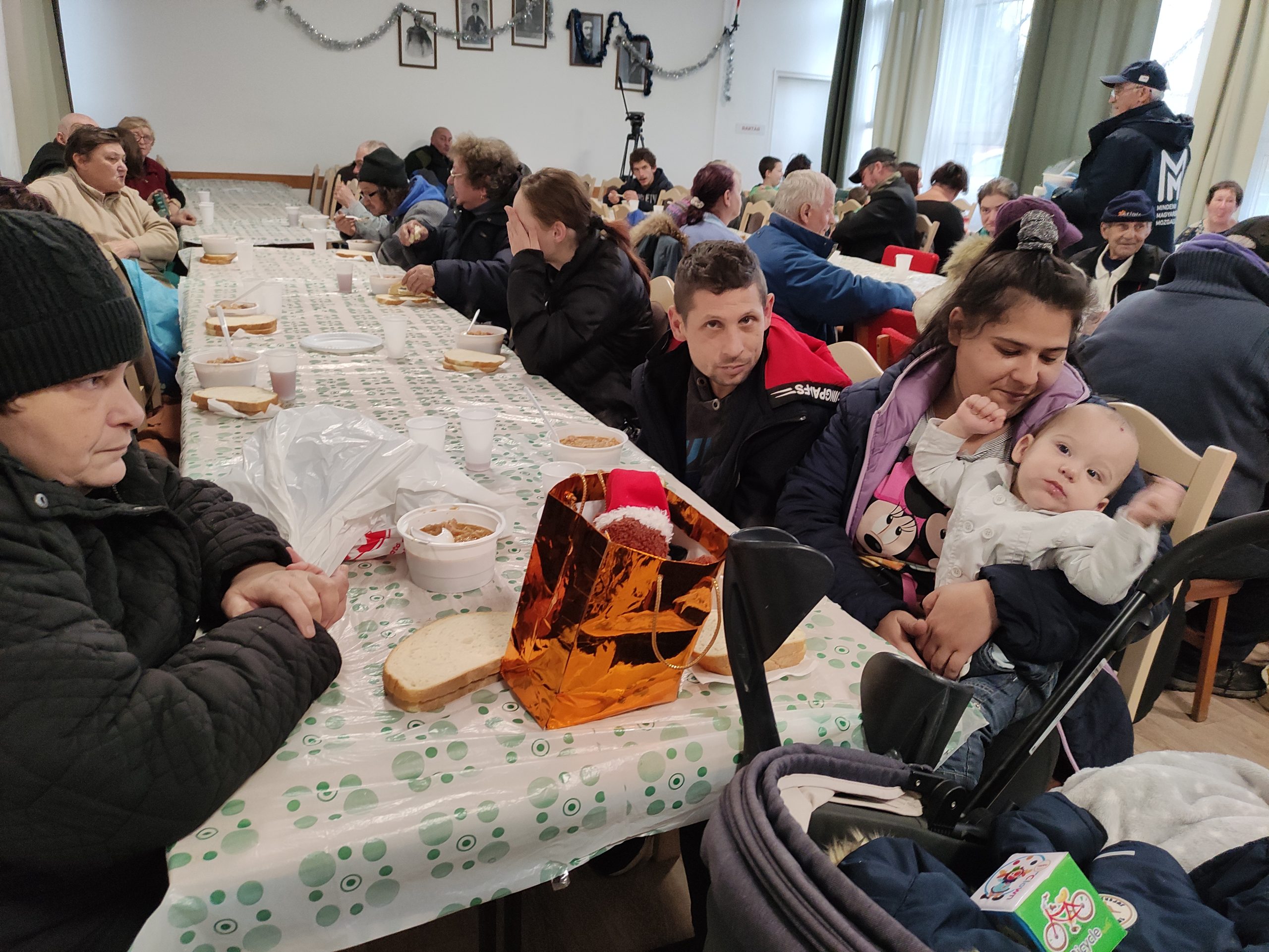– A Facebookon olvastuk, hogy megrendezik ezt az ételosztást, ezért úgy gondoltuk, eljövünk, és elhoztuk a kisfiunkat, Leonardót is, hogy neki is legyen egy ilyen élménye – mondta Tóth Péter, aki a gyermekével és annak édesanyjával együtt fogyasztotta el az ebédet. – Jólesik, így karácsony előtt, hogy gondoltak a rászorulókra.