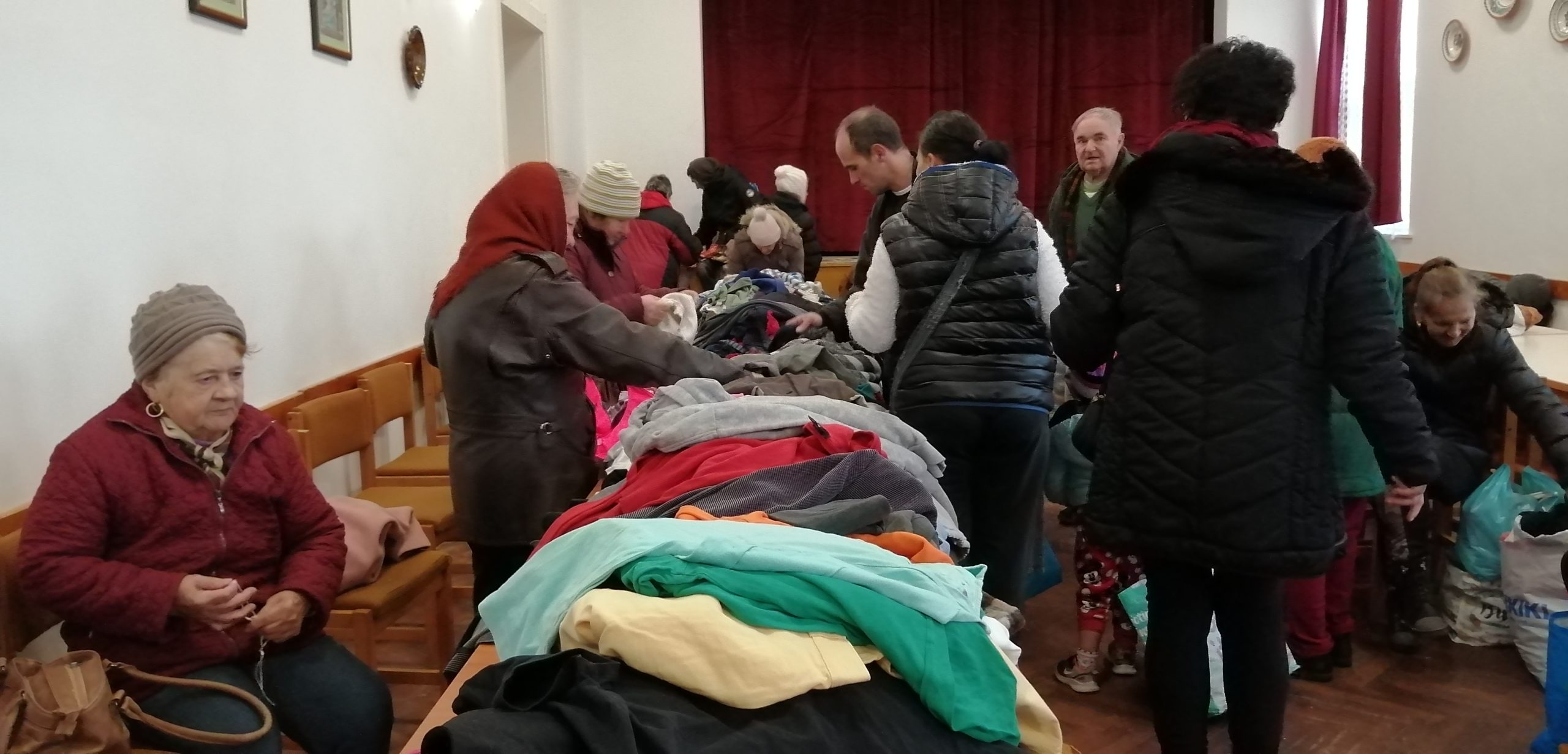 A bábszínház után már át is adták a terepet a ruháknak, amelyből Weiss Ildikó és segítői ma is tíz-tizenkét zsákkal hoztak, két doboz téli cipő és két zsák télikabát mellett, de karácsonyfadíszek és gyerekkönyvek közül is válogathattak az ideérkezők. Az érdeklődés, ahogy máskor, most is jelentős volt a ruhák iránt, sokan gyerekekkel együtt jöttek, akik körében a csillogó díszek aratták a legnagyobb sikert. – Január végéig még kitart az a ruhamennyiség, ami megvan, addig nem fogadunk további felajánlást – tudtuk meg Weiss Ildikótól, aki Farkas Erikával együtt a ruhaosztások lelke és motorja. – Folyamatosan be van kapcsolva a telefonom a felajánlások miatt, otthon fogadom az adományokat, összegyűjtöm, hétvégente bevisszük az irodába, és minden héten egy-két napot arra szánunk, hogy kiválogassuk a következő osztásra az adományokat. Koszos, lyukas, kopott ruha ezek között egy sincs. Női, férfi, gyerek, téli, nyári, külön van válogatva, de ilyenkor pólókat nemigen hozunk – részletezi Ildikó, aki azért azt is bevallja, hogy a többévi ruhaosztás után eléggé elfáradt, és örülne, ha át lehetne adni a stafétát a fiatalabbaknak.