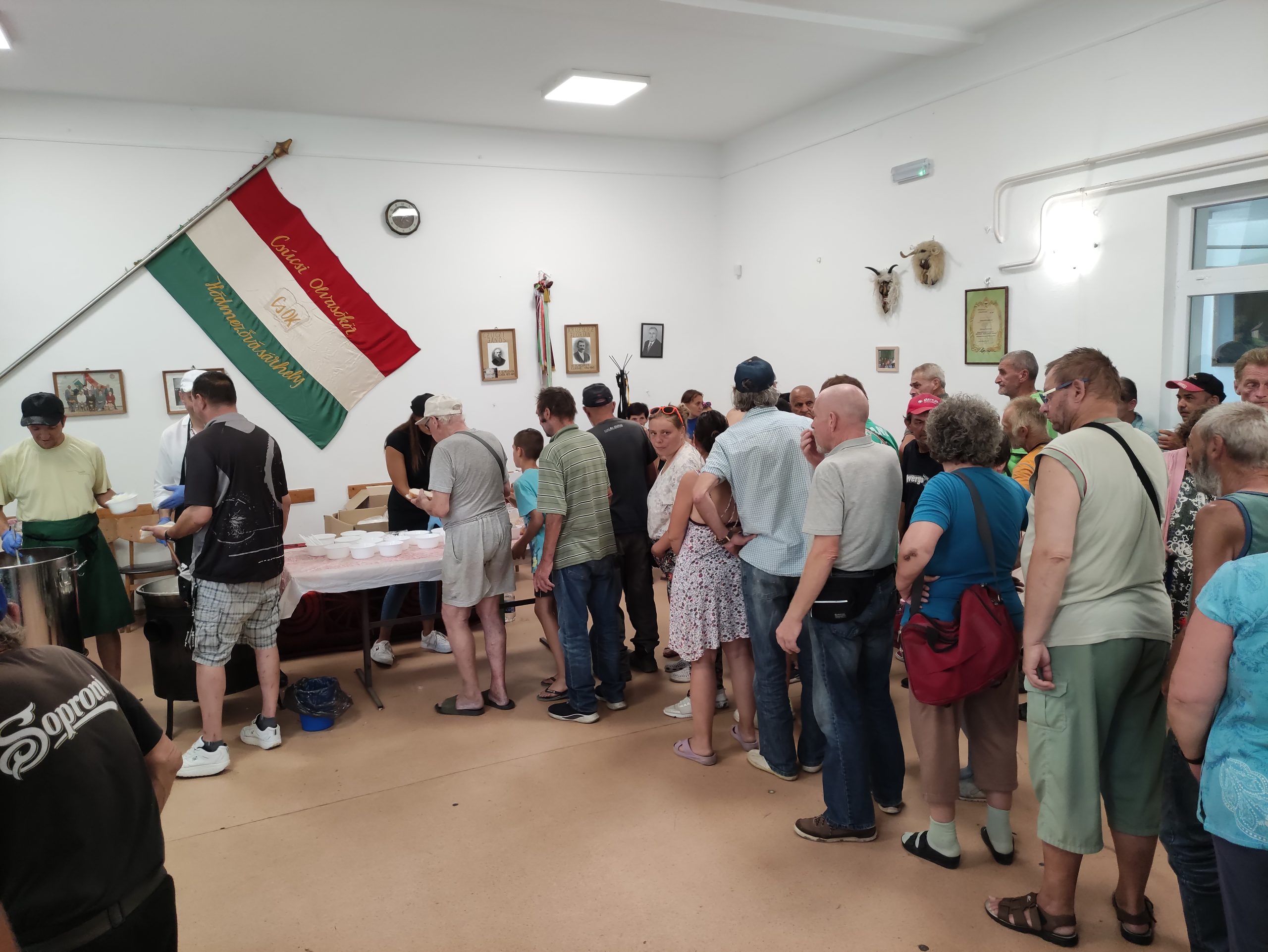 550 adagot főztek a Csúcsi Olvasókör udvarán felállított kondérokban, ebből 451-et szállítottak házhoz az önkéntesek, a többit a rászorulók helyben fogyasztották el.