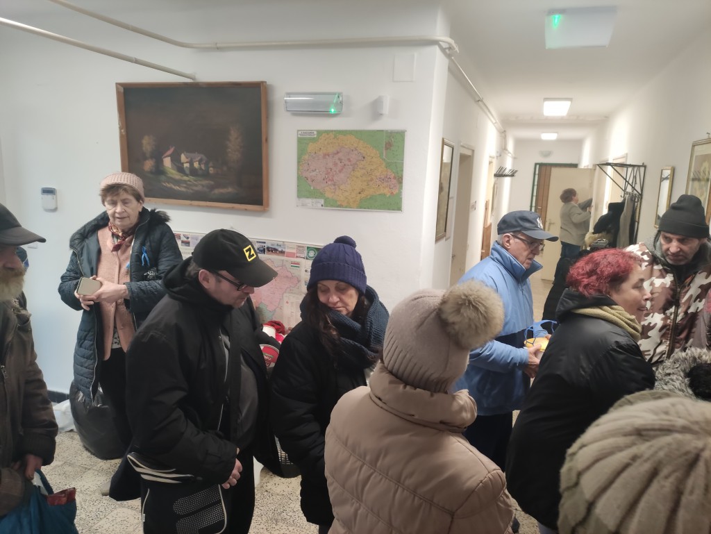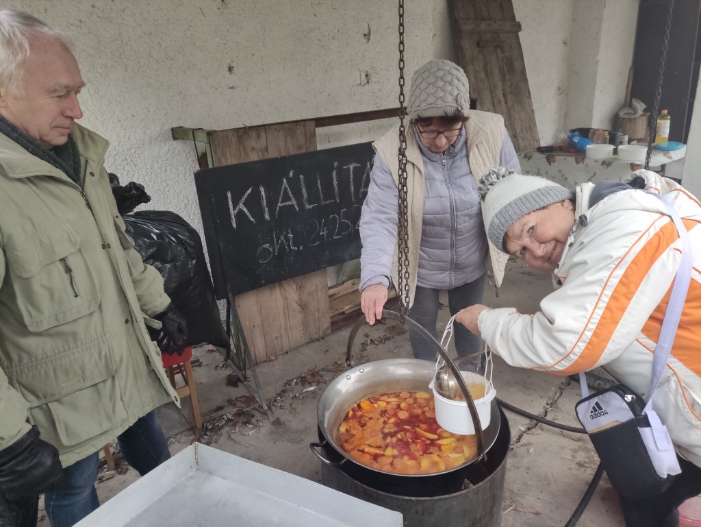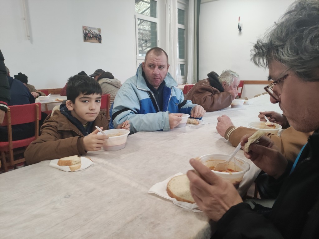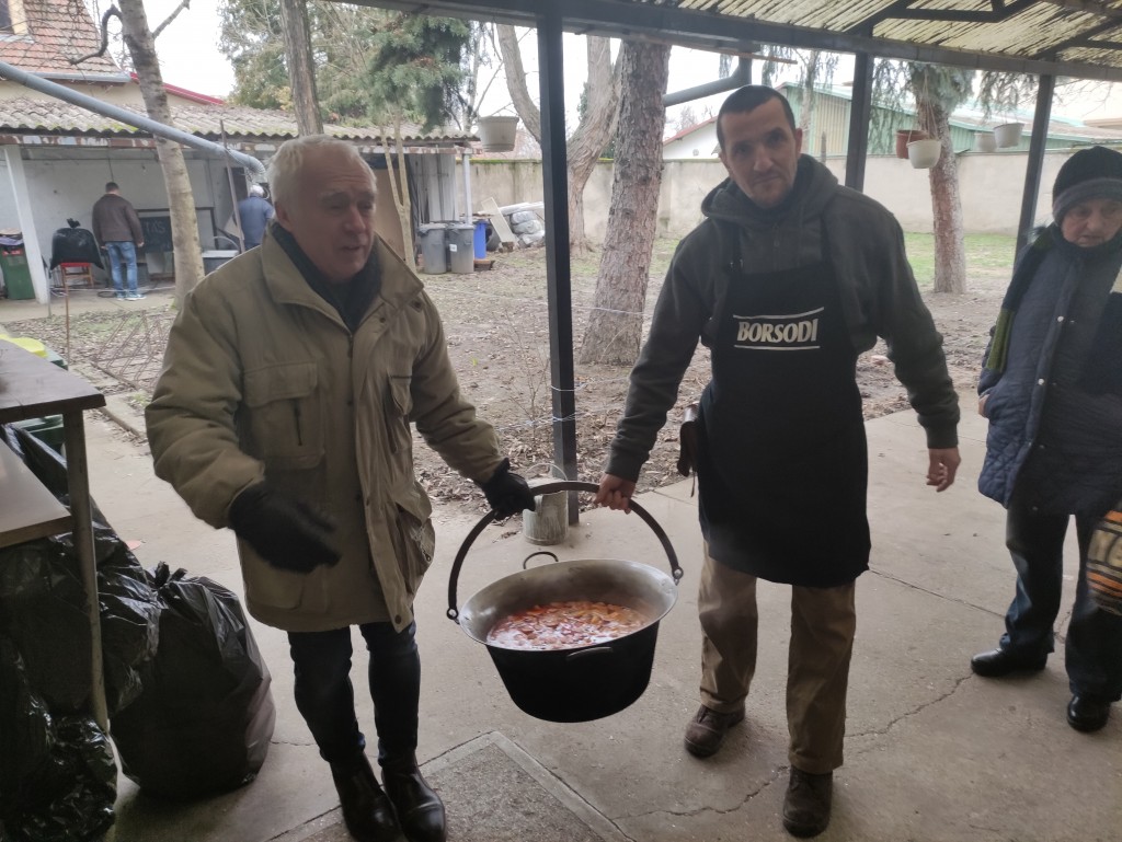 Azok kapták meg először, akik helyben fogyasztották el, majd azok, akik haza akarták vinni az ételt. A két kondérnyi, összesen száz adagra akkora volt az igény, hogy azt mintegy húsz perc alatt ki is osztották, vele a kenyeret és a savanyúságot is. Sőt a kisgyerekeseknek édességgel is kedveskedtek. Akinek pedig ruhára volt szüksége, az sem távozott üres kézzel.