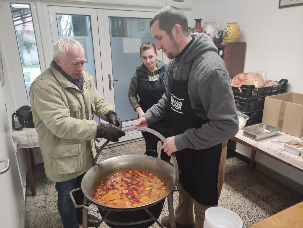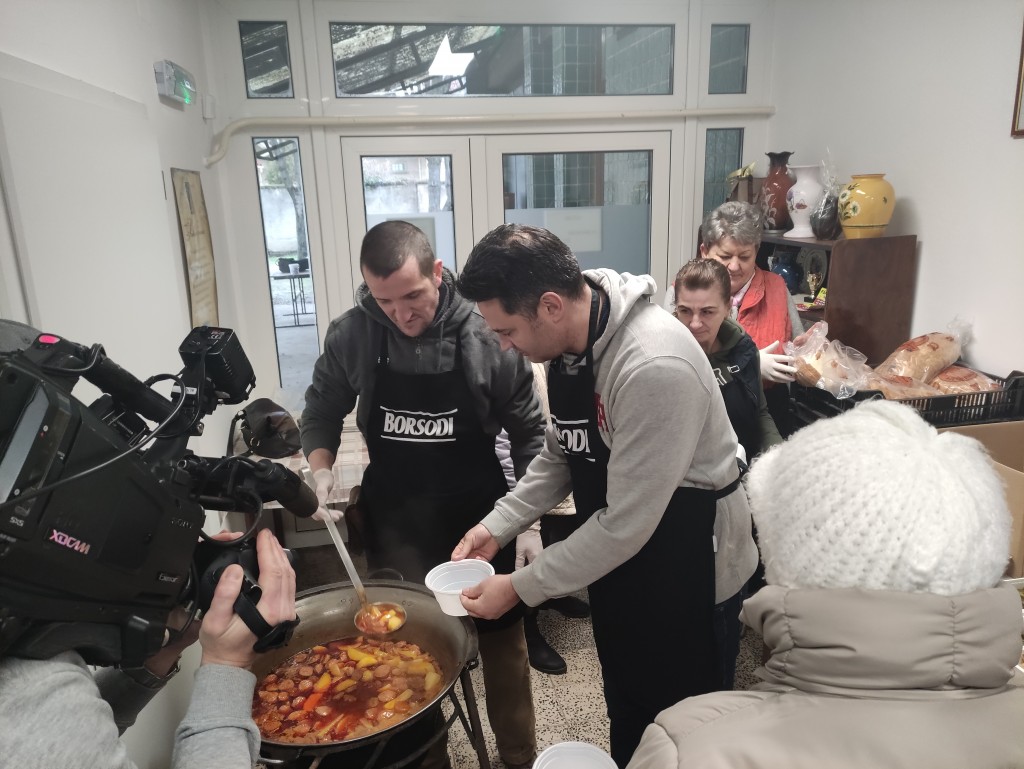 A kiosztott étel alapanyagait adományokból vásárolták, az ebédnek valót Sipos Róbert, profi főzőmester készítette.