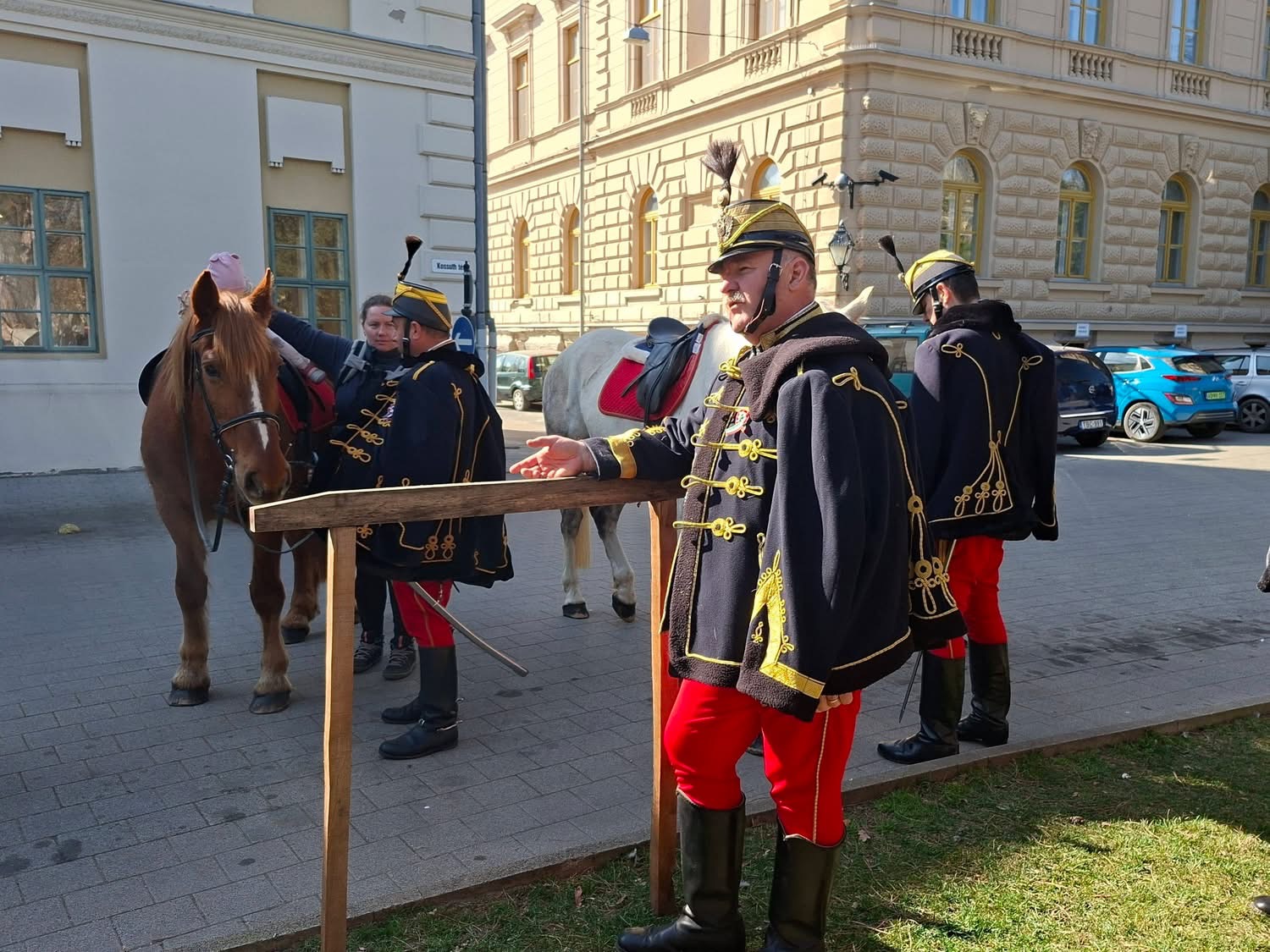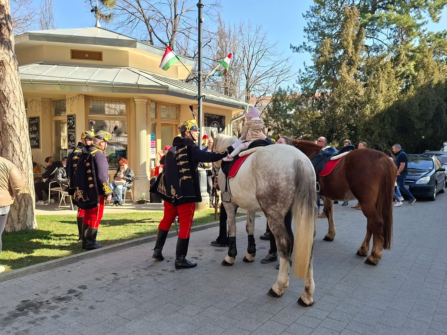 A téren lovashuszárok fogadták az érkezőket, ami különleges hangulatot adott a rendezvénynek. A gyerekek közelről is megcsodálhatták a huszárok viseletét és felszerelését, sokan pedig fotókat is készítettek a látványos jelenetekről.