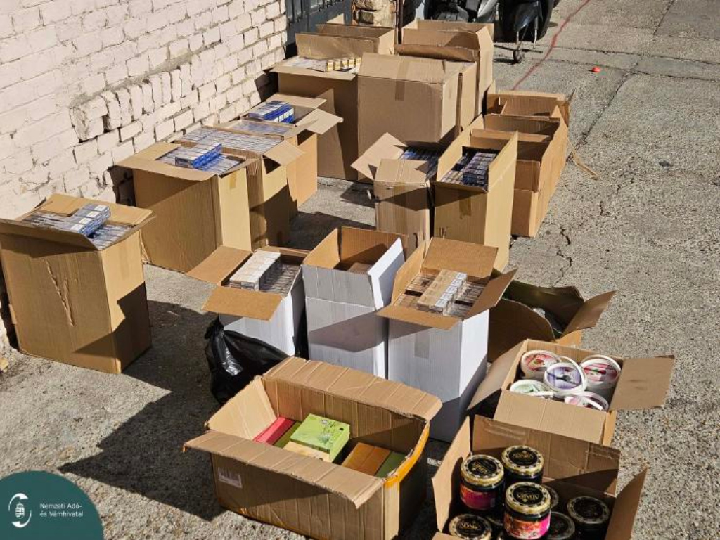 A helyszíni intézkedés után a pénzügyőrök tovább vizsgálódtak a piac területén. Ezúttal egy nyitott raktárhelyiség keltette fel a figyelmüket, amelynek ablakán benézve hatalmas kartondobozokban dohánytermékeket láttak meg. A raktárból végül 8600 doboz különféle márkájú cigaretta, 32 kilogramm vágott fogyasztási dohány és többszáz e-cigaretta került elő, több mint húszmillió forint értékben.