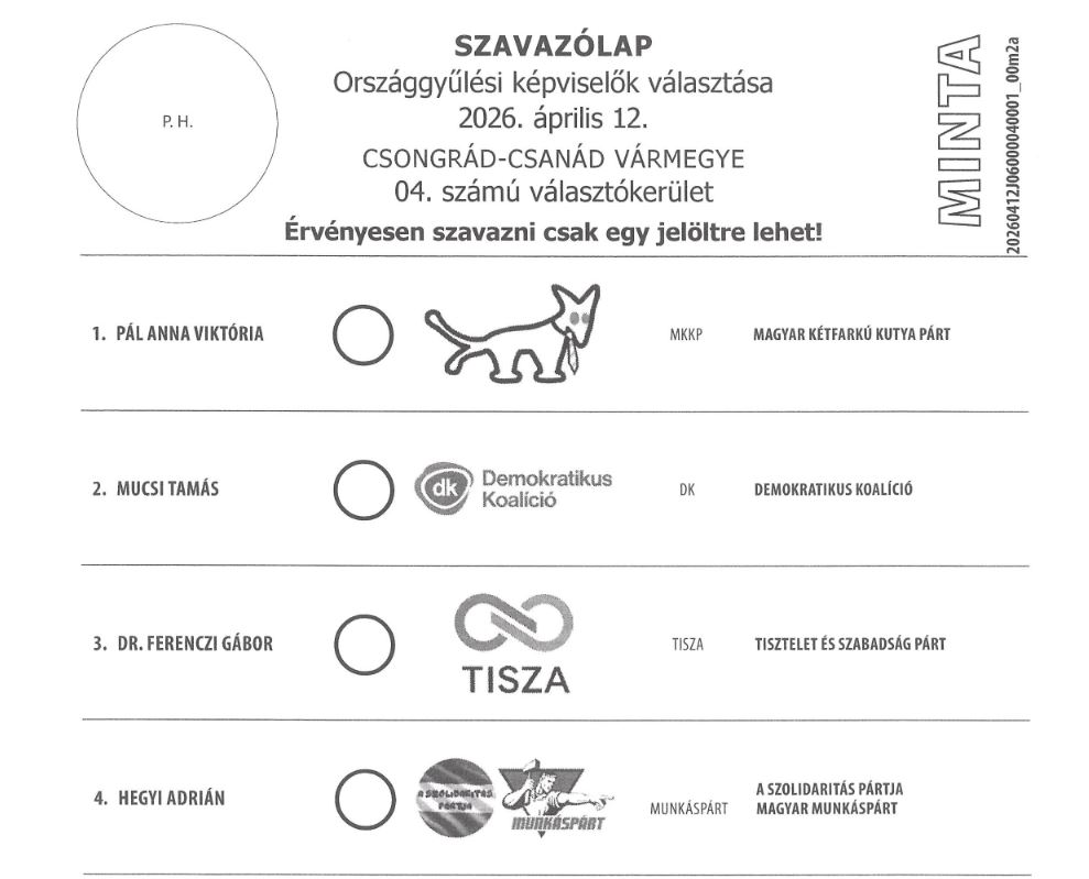 A vásárhelyi–makói választók az április 12-i szavazáson a helyi választási bizottság által jóváhagyott és közzétett szavazólappal találkoznak majd.