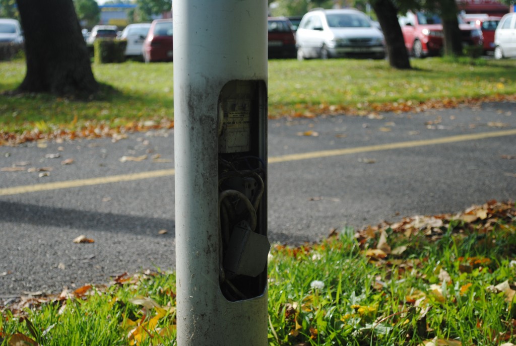 A vásárhelyi belvárosban alig akad olyan közvilágítási oszlop, mely törzsén ne nyitotta volna fel valaki azt a kisajtót, mely mögött némi vezeték, illetve 1-2 automata biztosíték pillantható meg. Az, hogy éppen milyen kulccsal lehet nyitni, úgy látszik a titokzatos kíváncsi számára teljesen mindegy, előbb vagy utóbb mindegyiket kinyitja. Még a tram-train melletti új közvilágításét is sikerült neki, igaz azt olyan gyorsan sikerült valakinek visszazárnia, hogy nem is tudtuk lefotózni.