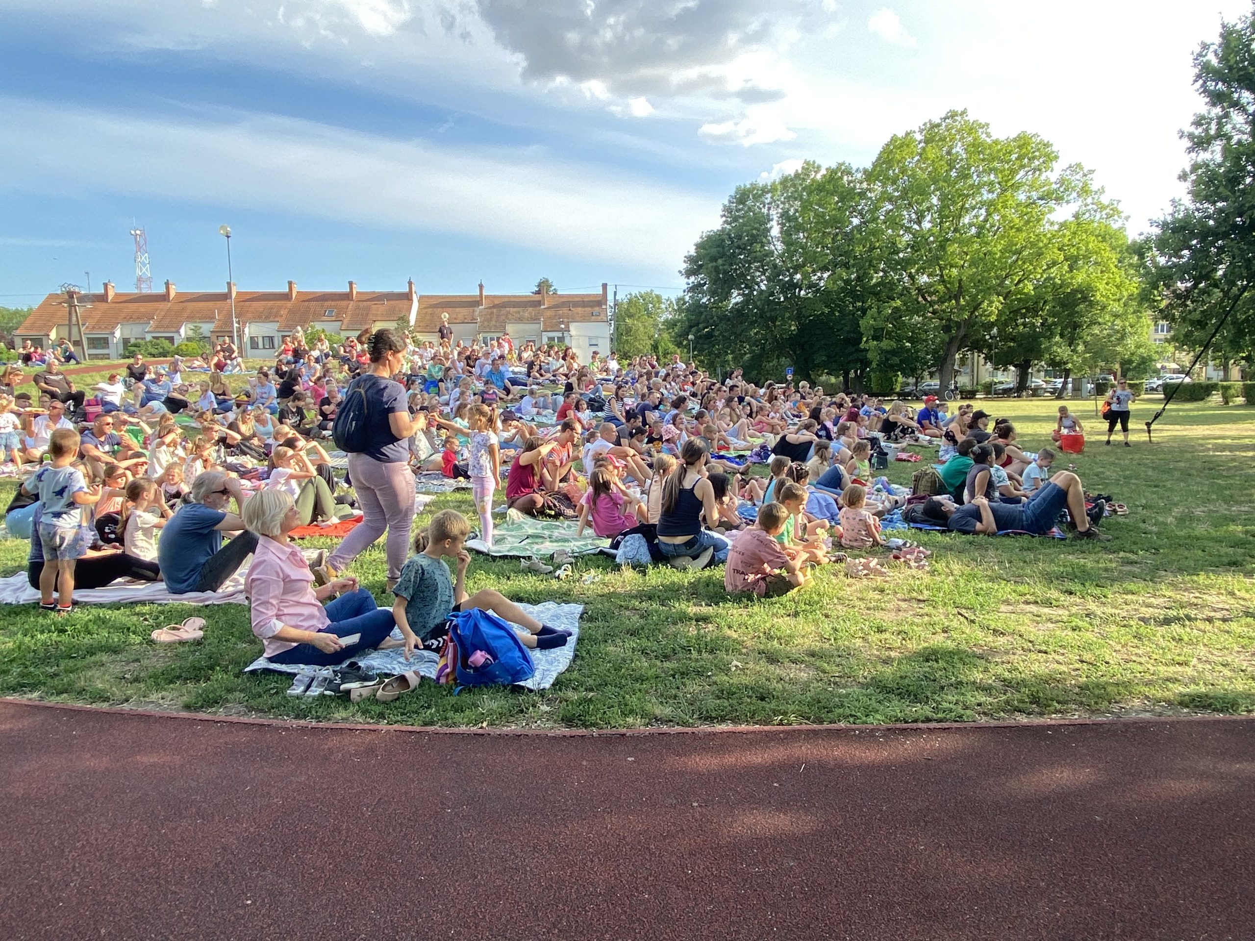 Tíz perccel hat óra előtt, amikor családommal megérkeztem a dombhoz, már jócskán megtelt a Tisza István utcai helyszín családokkal, gyerekekkel, párokkal és baráti társaságokkal. Most először látogattam ki az önkormányzat által szervezett Mozipiknikre – legalábbis ide a Somogyi-dombhoz – melynek sajátos hangulata rögtön megfogott. Az emberek minden elképzelhető ülőalkalmatosággal érkeztek, nemcsak pokróccal, voltak, akik felfújható matracot, és voltak, akik kempingszéket hoztak- ennek sem csak az egyszerű változatát, hanem hiperkényelmeset -, de volt olyan is, aki beérte egy kissámlival.