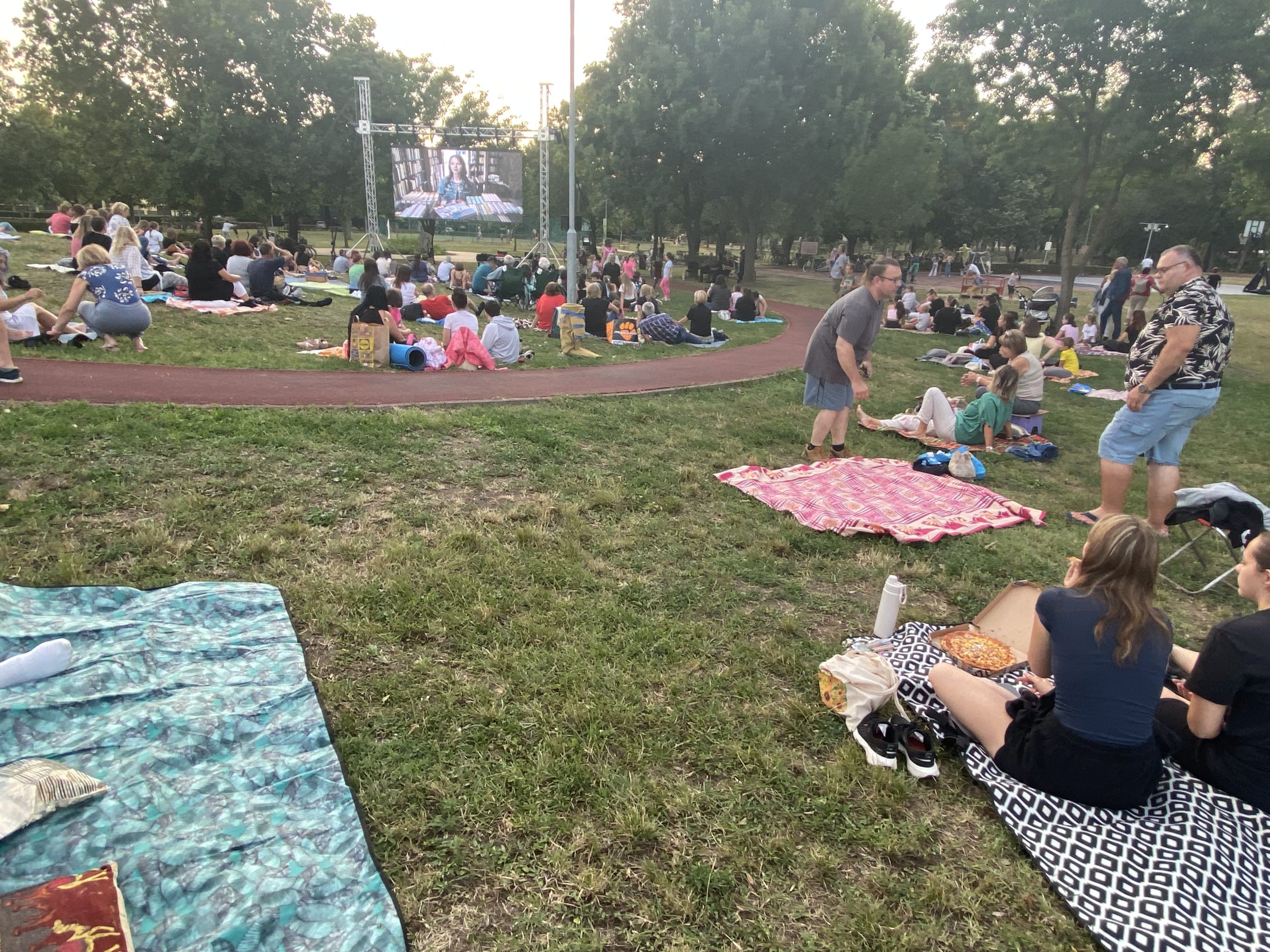 „Múlt héten nem voltunk itt, de azelőtt igen” – meséli ismerősöm, Ági, akivel itt futok össze. A kislányával érkezett. „Szeretünk a természetben lenni, és mozizni is, régi álom nekünk, hogy szabadtérben tudjunk mozizni”– teszi hozzá, majd elmesélni, annak idején másfél A4-es lapon küldte el ötleteit az önkormányzatnak, az is köztük volt, hogy lehetne kertmozit csinálni. Azt is elmondta, tetszenek neki a vetített filmek, de időnként nyitna a kevésbé populáris műfaj felé is, egy-egy magyar rajzfilmet, művészfilmet is szívesen látna itt.
