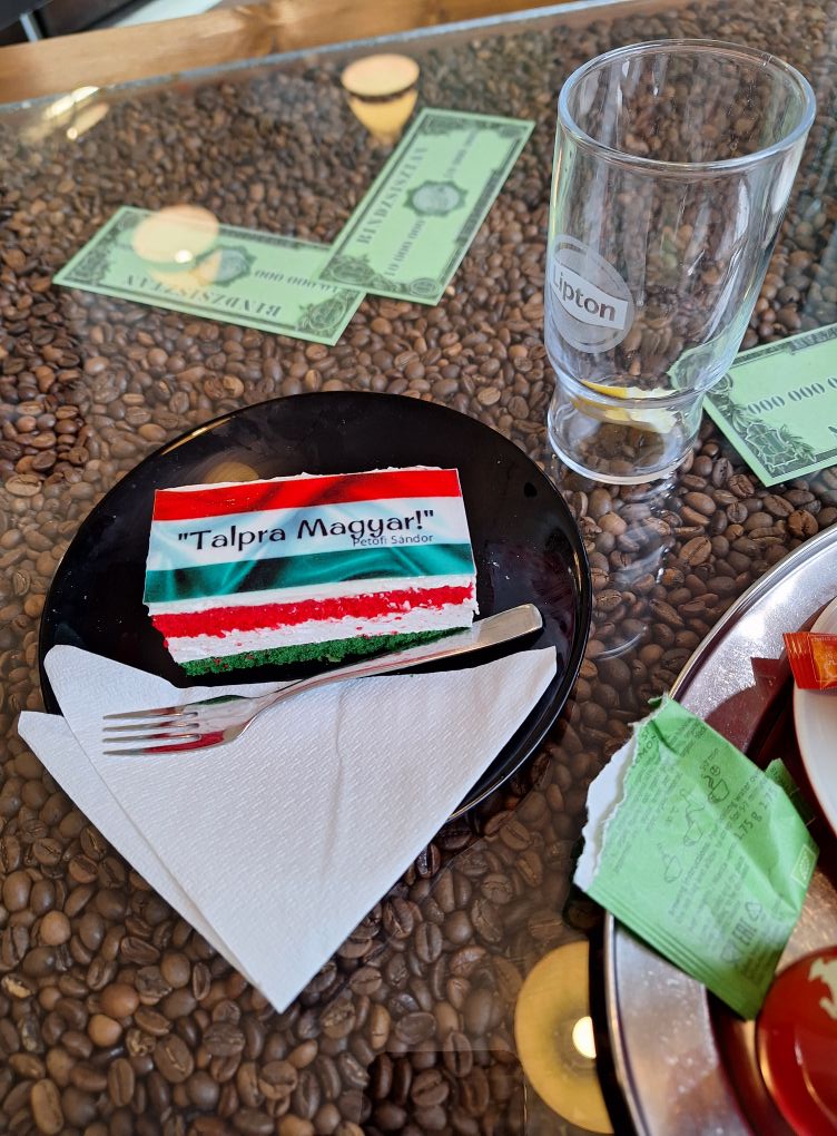 A Kossuth Kifli kávézó nem az egyetlen volt az ünnepnapon, ahol tematikus sütivel készültek, olvasónk a Sarokház Cukrászdában lőtte a következő fotót: