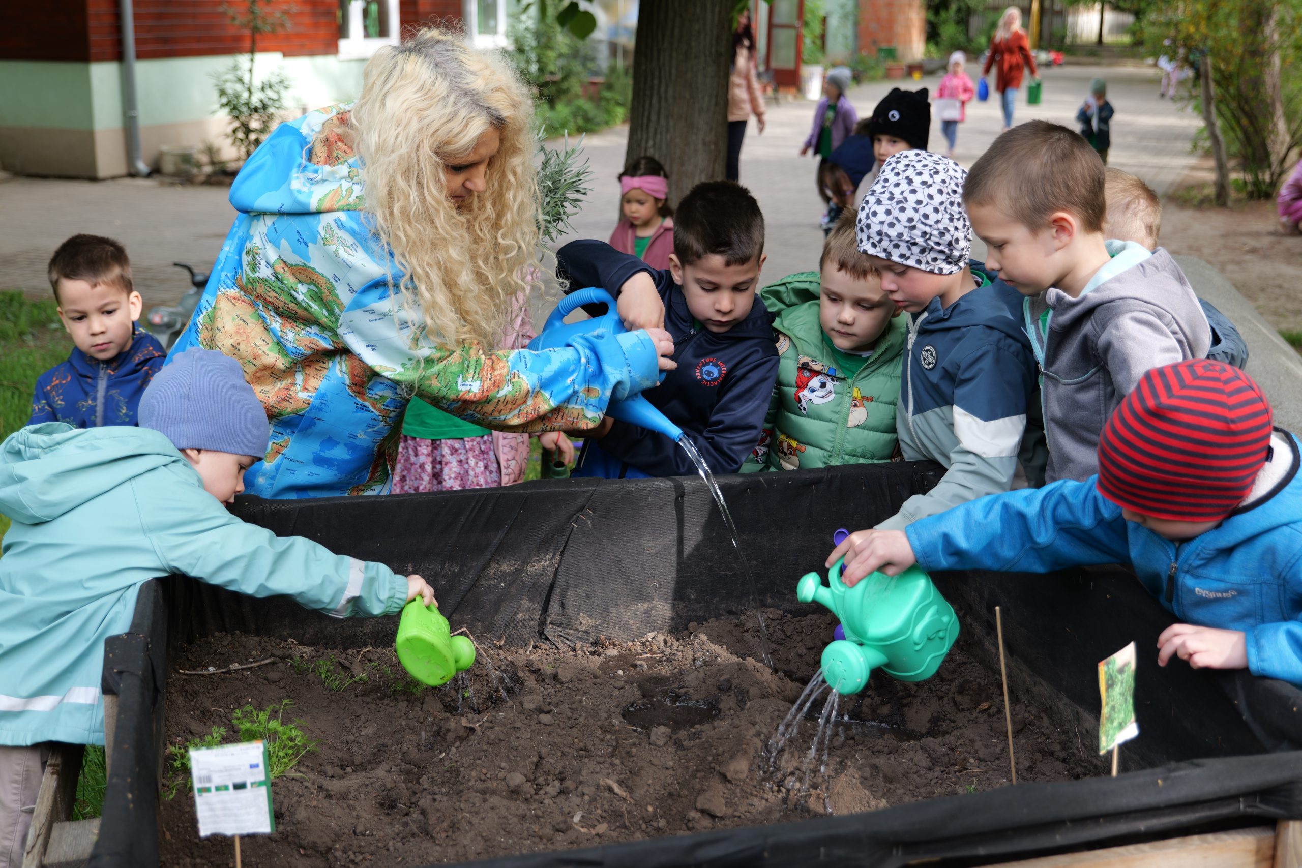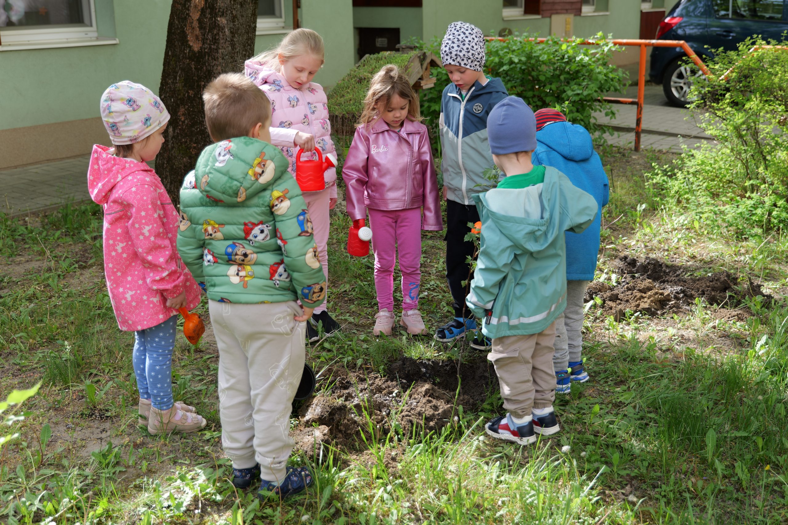 A Klímanócskák az óvoda elé őshonos birset, körtét és berkenyét ültettek ki, majd nagyon alaposan meglocsolták azokat.