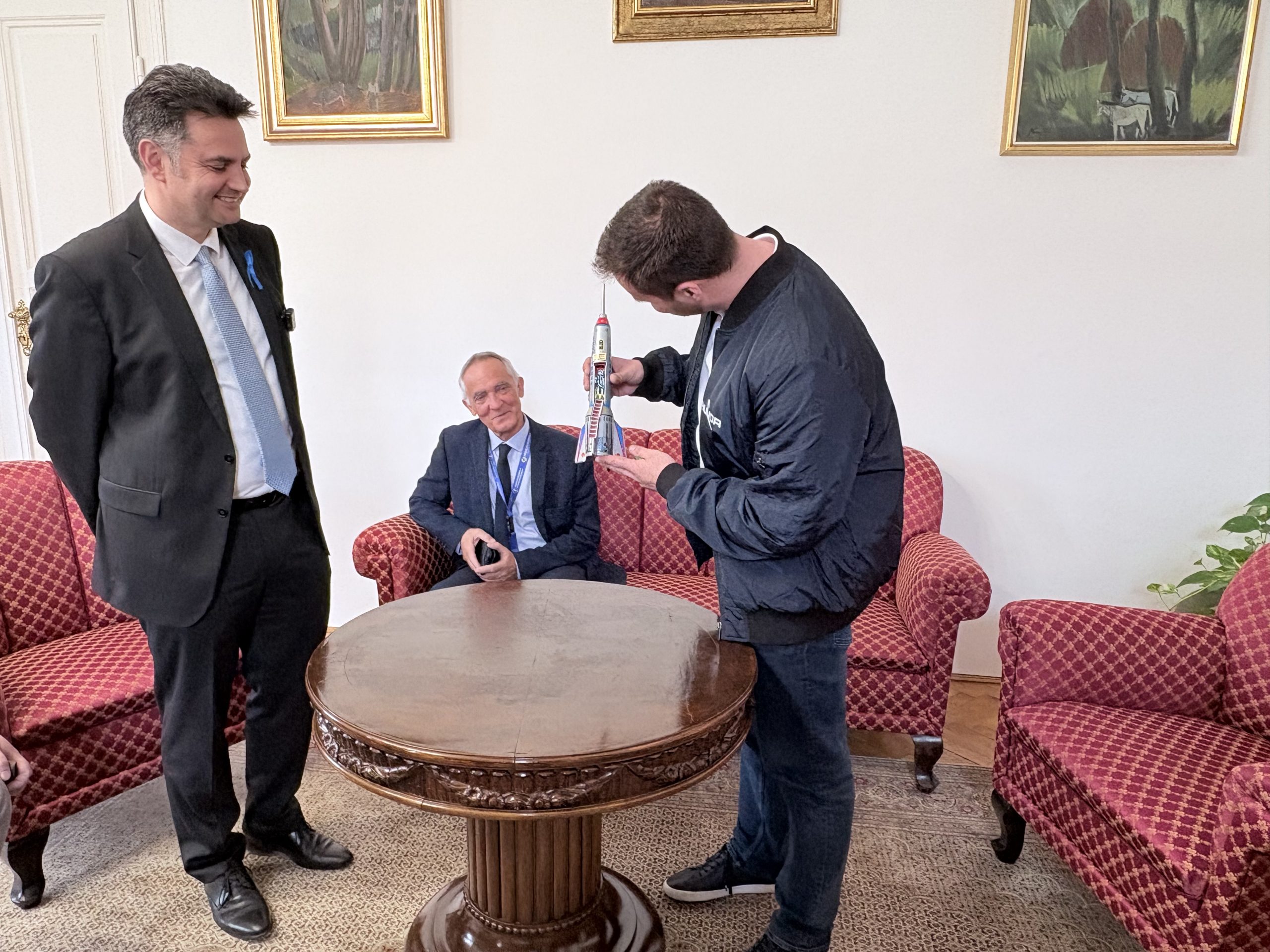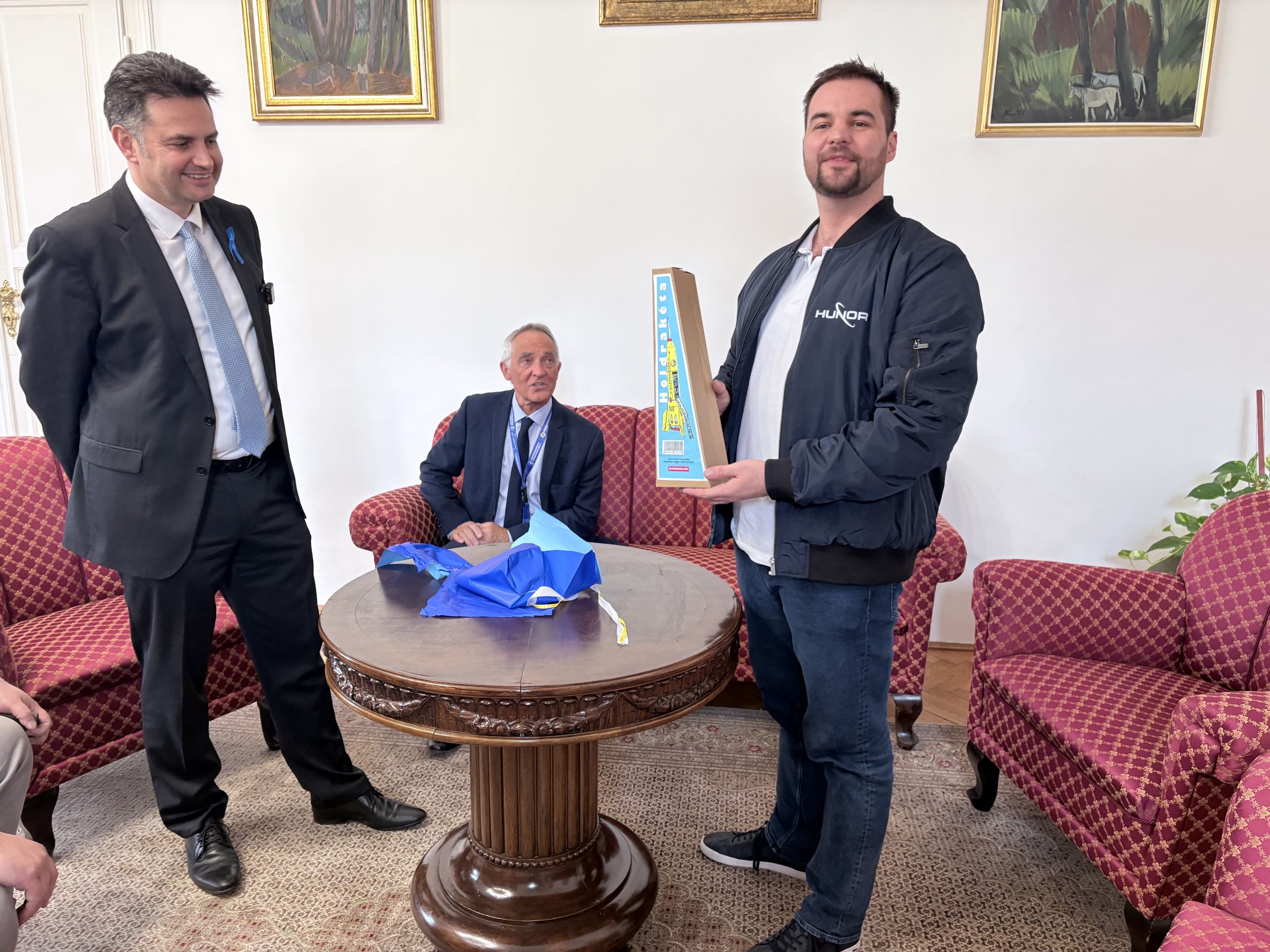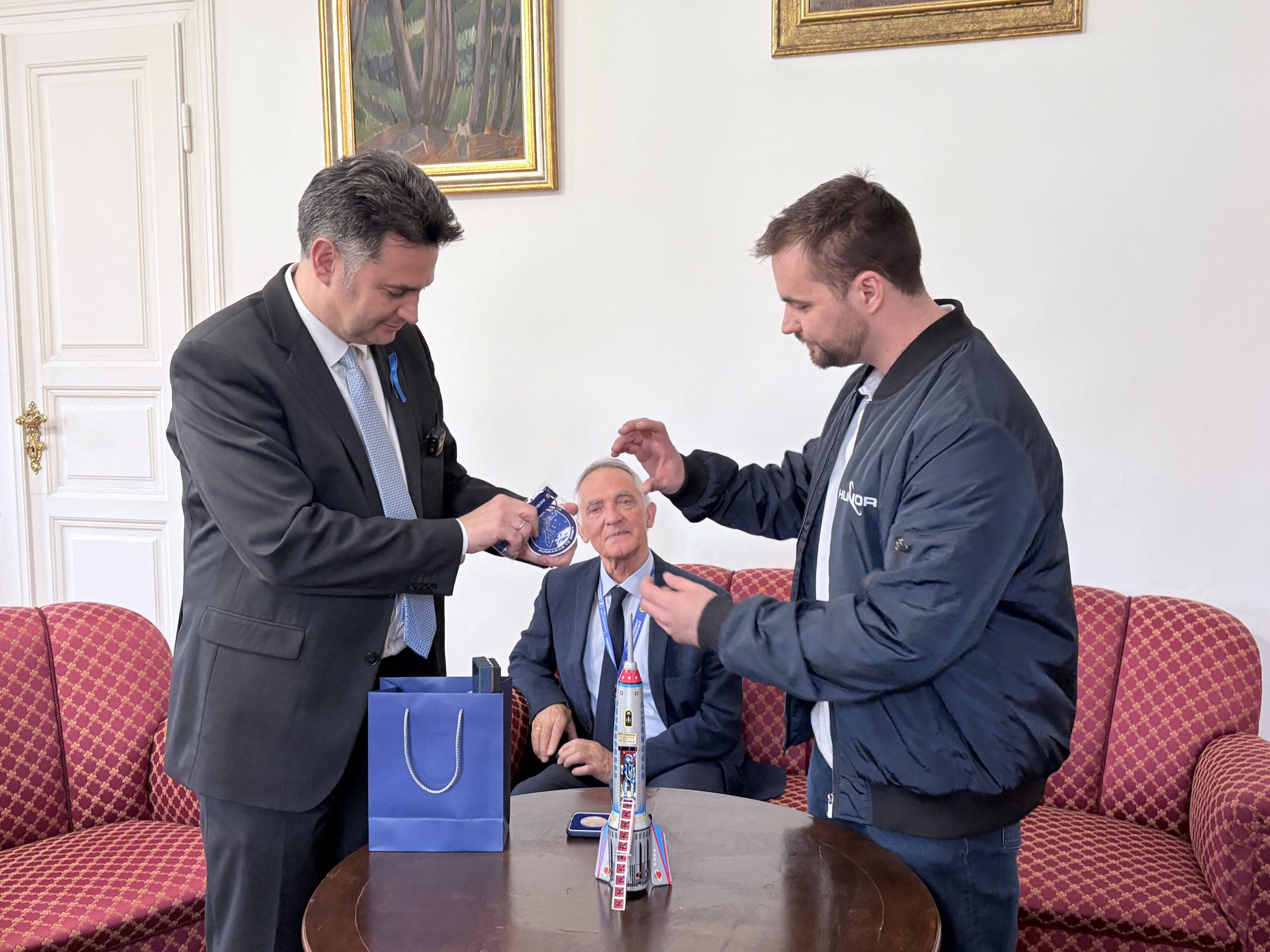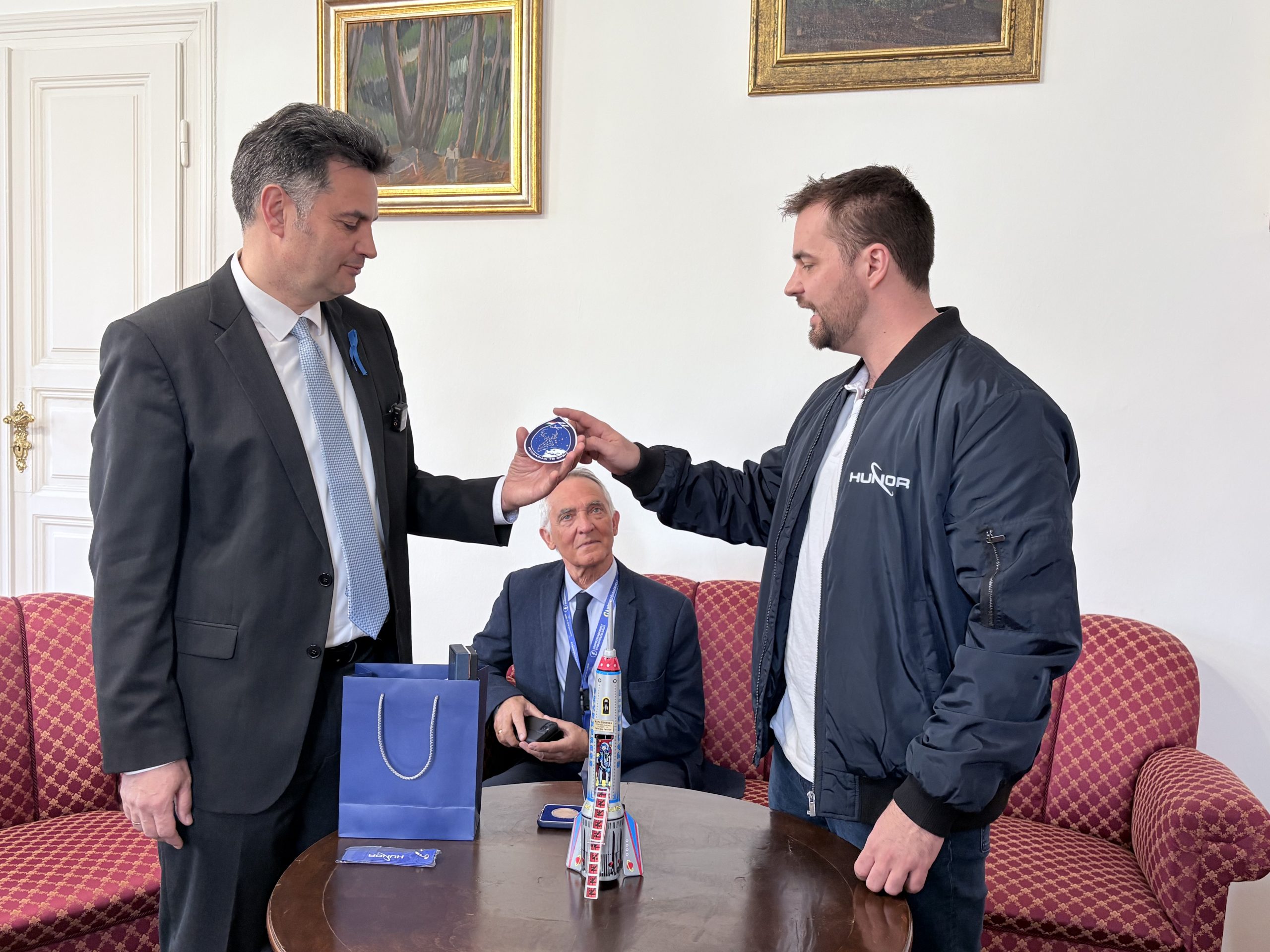 Az űrhajós maga sem érkezett üres kézzel: a magyar űrprogramhoz kapcsolódó relikviákkal készült a város vezetőinek. Ezek között szerepelt egy, a küldetéshez kötődő felvarró, valamint, tudva, hogy Márki-Zay érmegyűjtő – egy emlékérem is, amelyet a Magyar Nemzeti Bank bocsátott ki a misszió tiszteletére. Az érme különlegessége, hogy Kapu Tibor mellett tartalékos társa előtt is tiszteleg, így egyszerre jelképezi a közös munkát és a magyar űrprogram eredményeit.