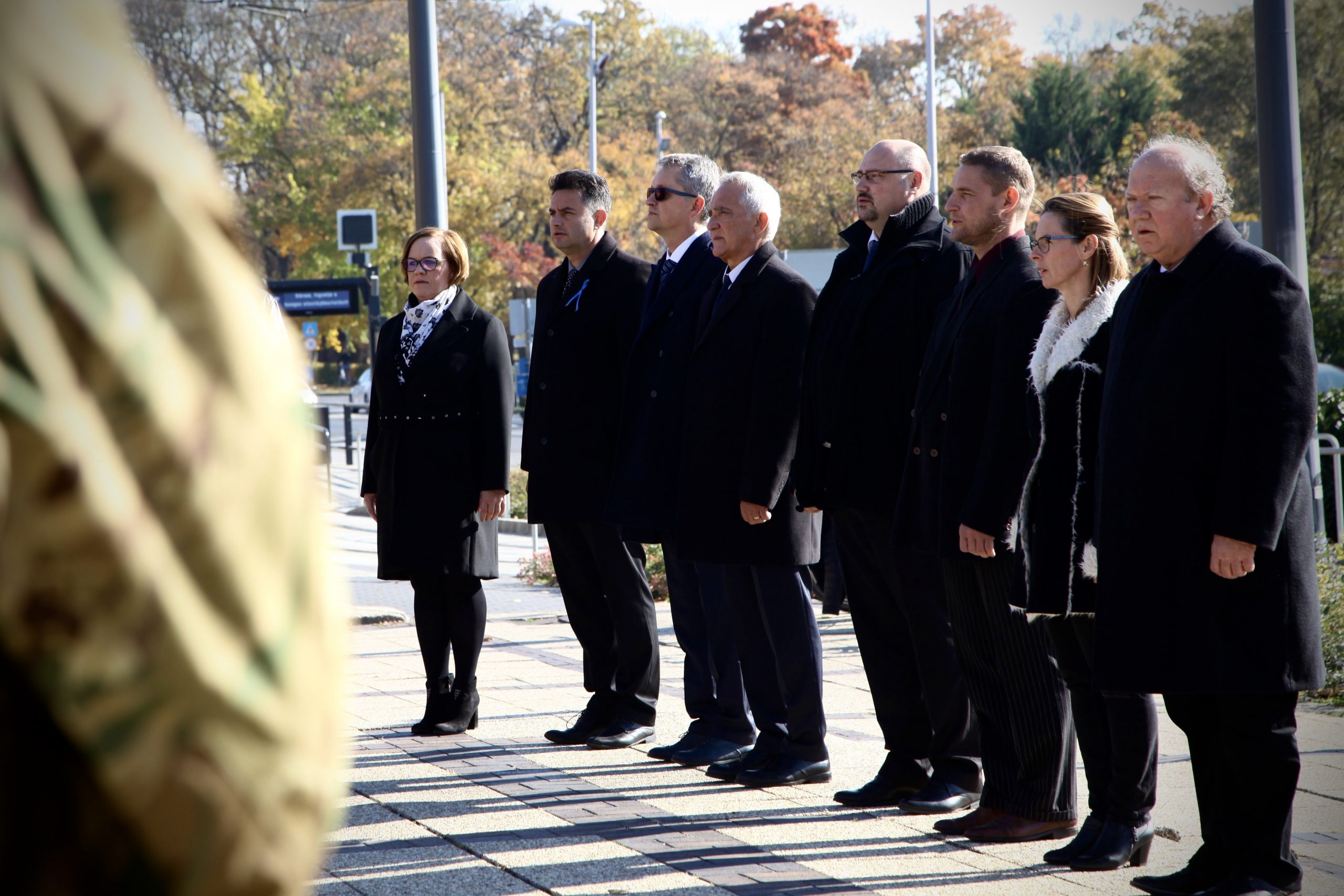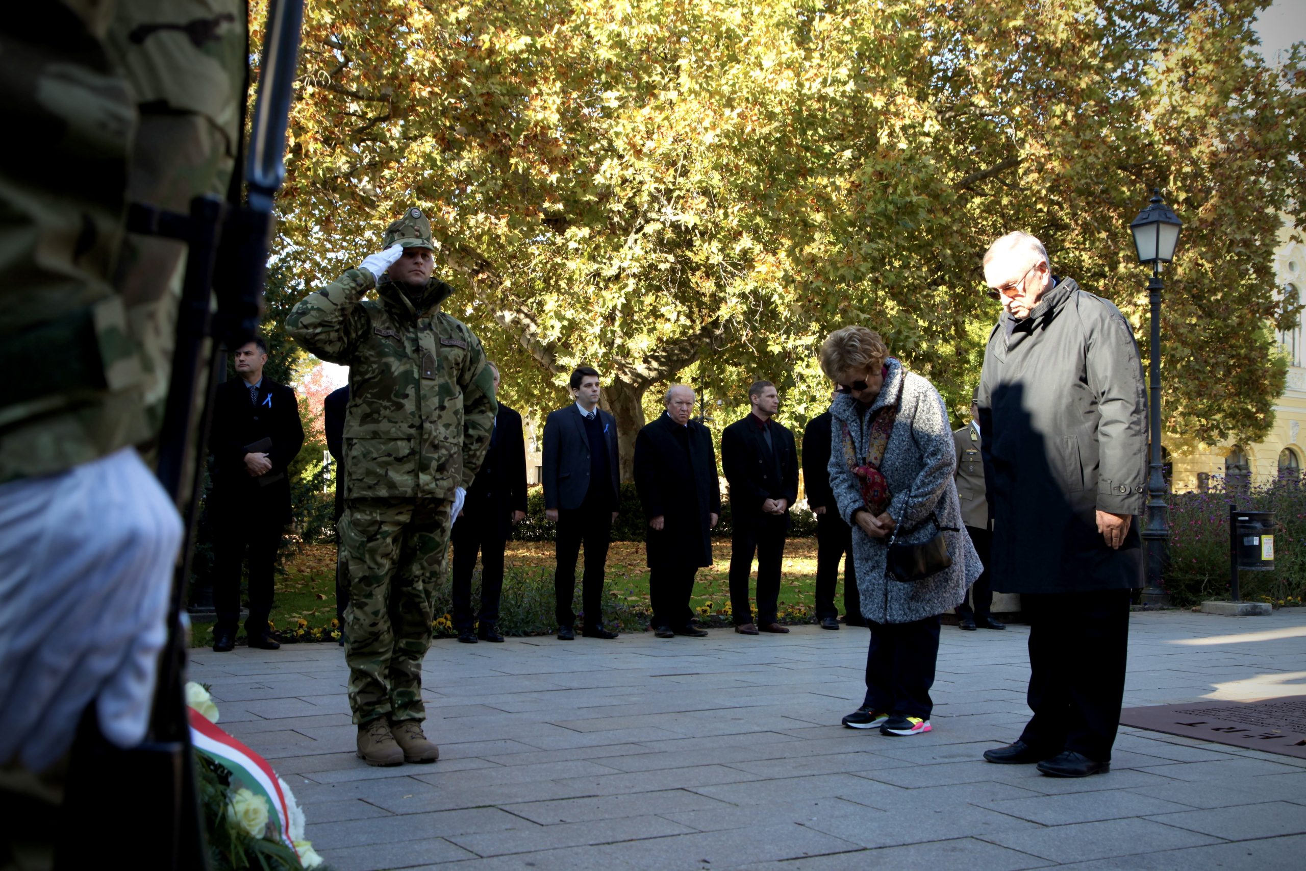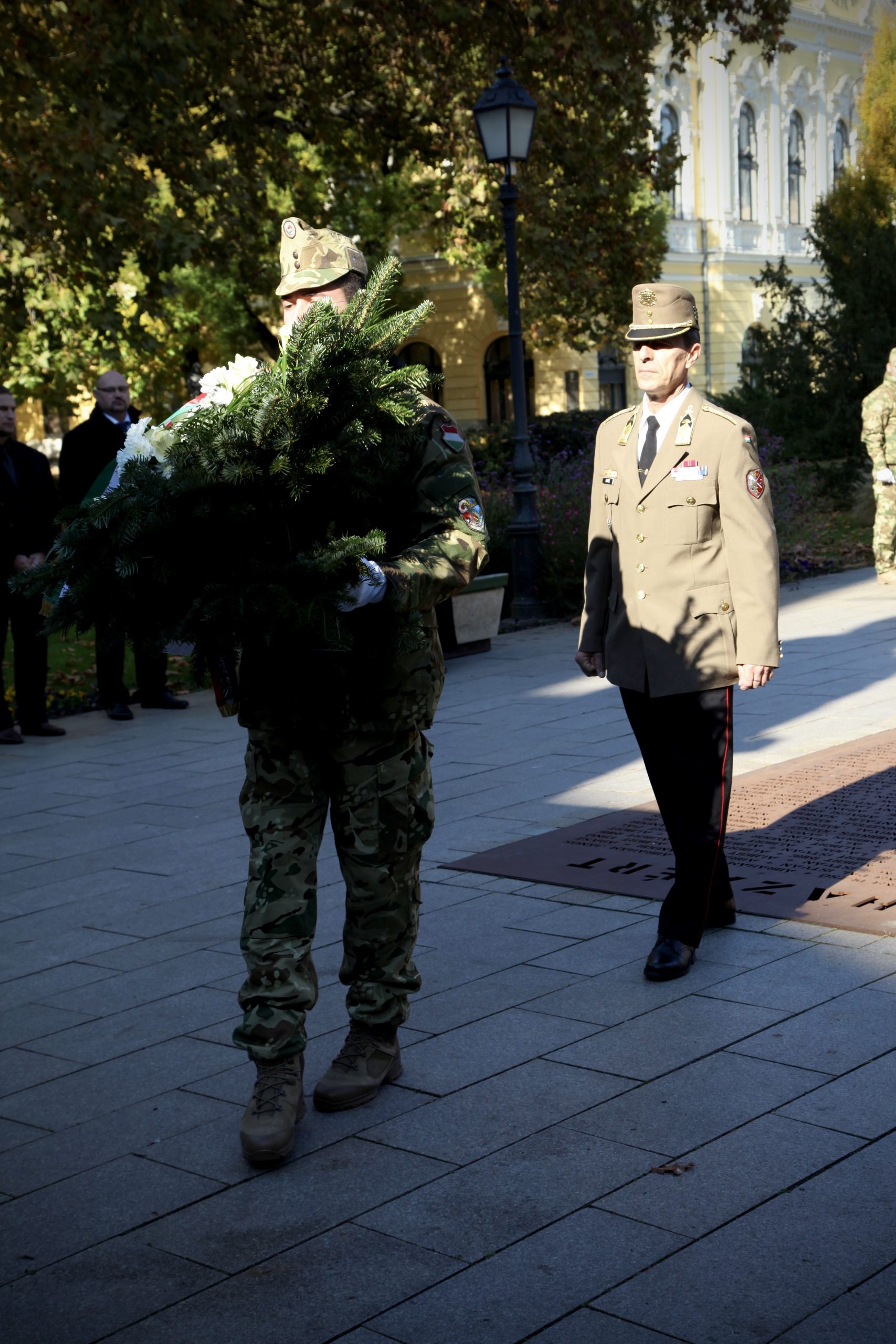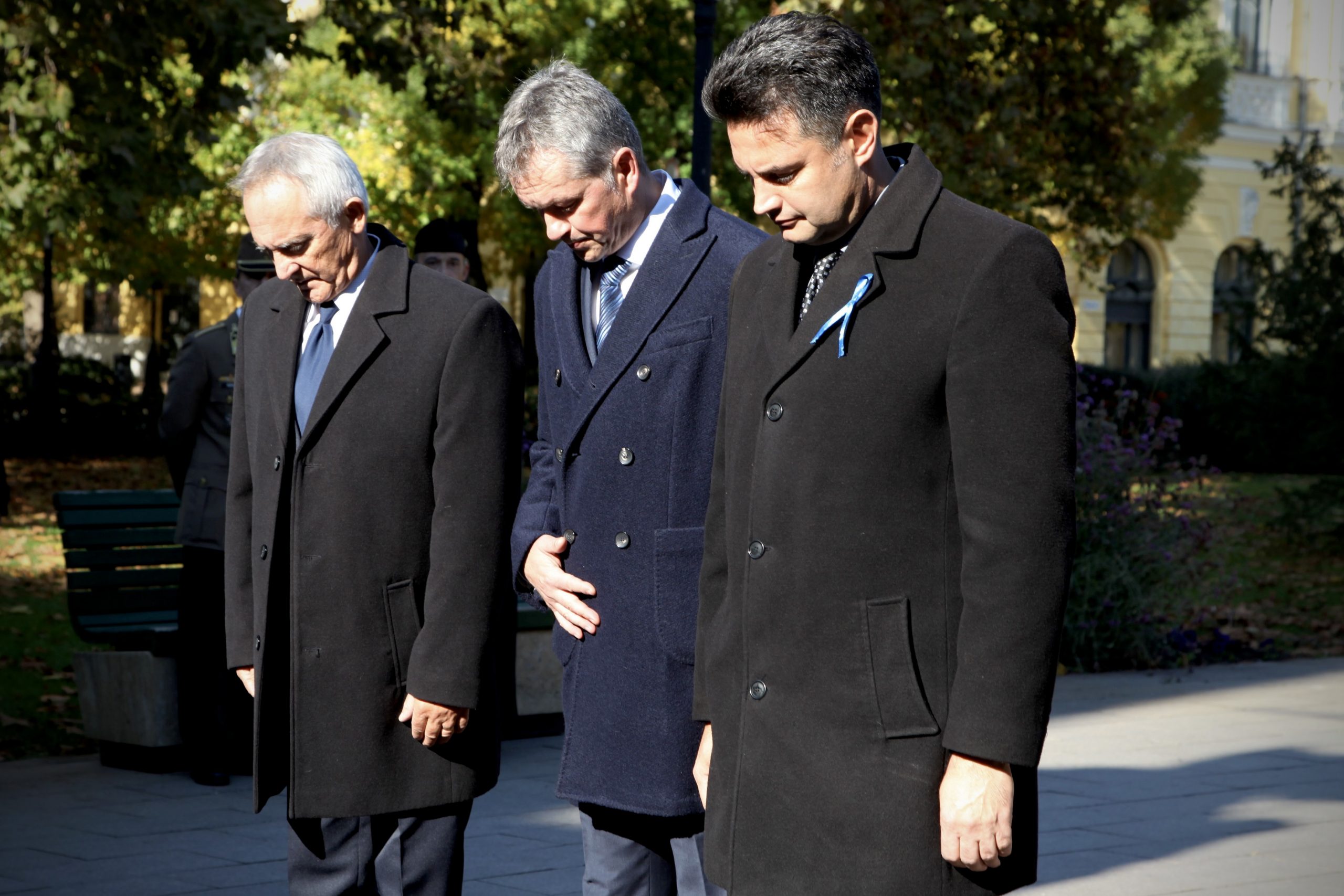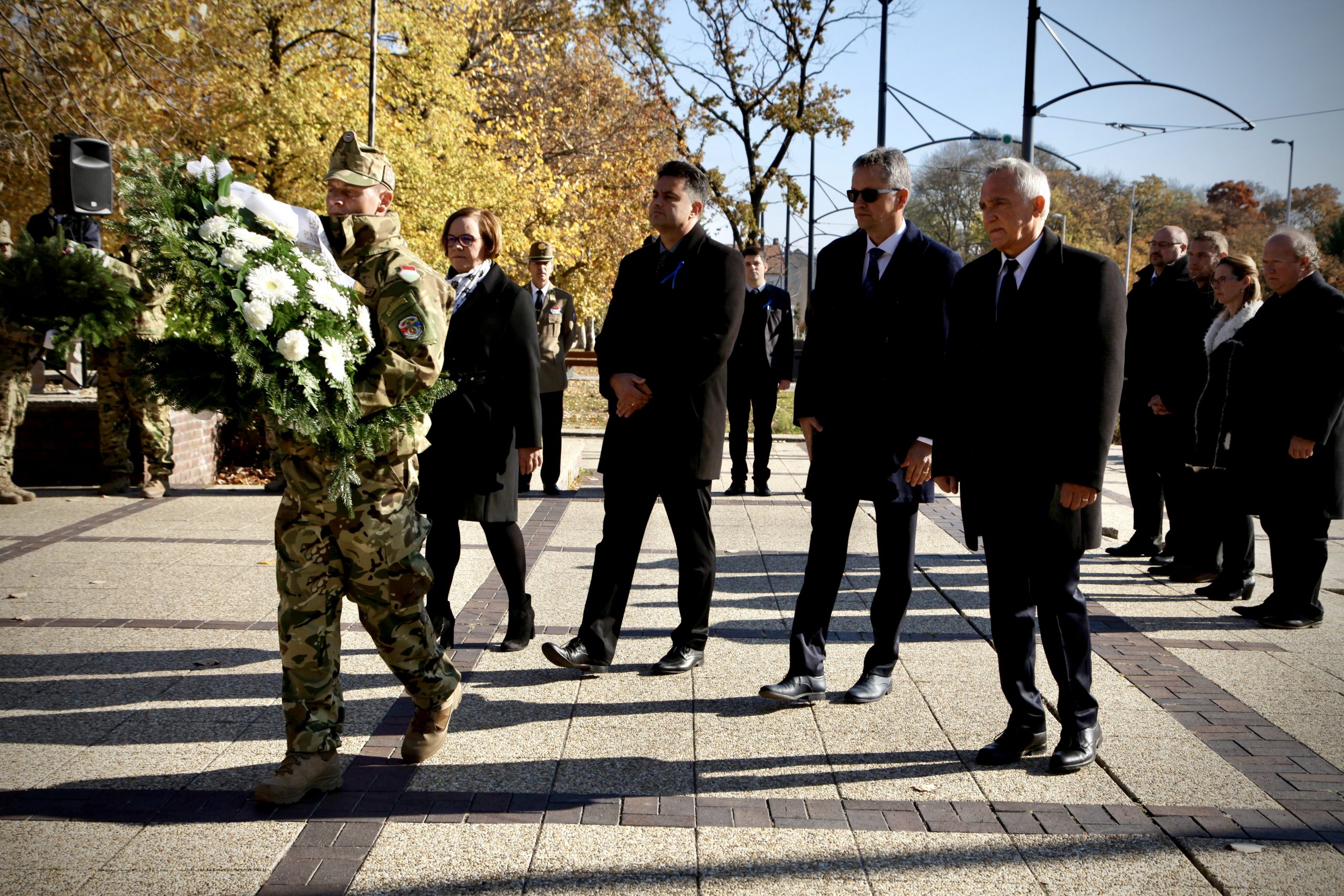 A megemlékezés a Kossuth téren kezdődött, ahol többek között az első világháborús emlékművet is megkoszorúzták: