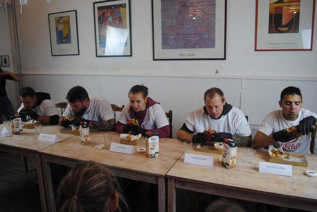 A megmérettetésre a tíznél sokkal többen jelentkeztek, de a Kálvin Coffee-ben csak ennyien ülhettek asztalhoz szombat délután, hogy megmutassák, a rendkívül csípősre fűszerezett hambis, sült krumplis, savanyúságos menüt is meg lehet enni anélkül, hogy közben muszáj legyen rá inni.