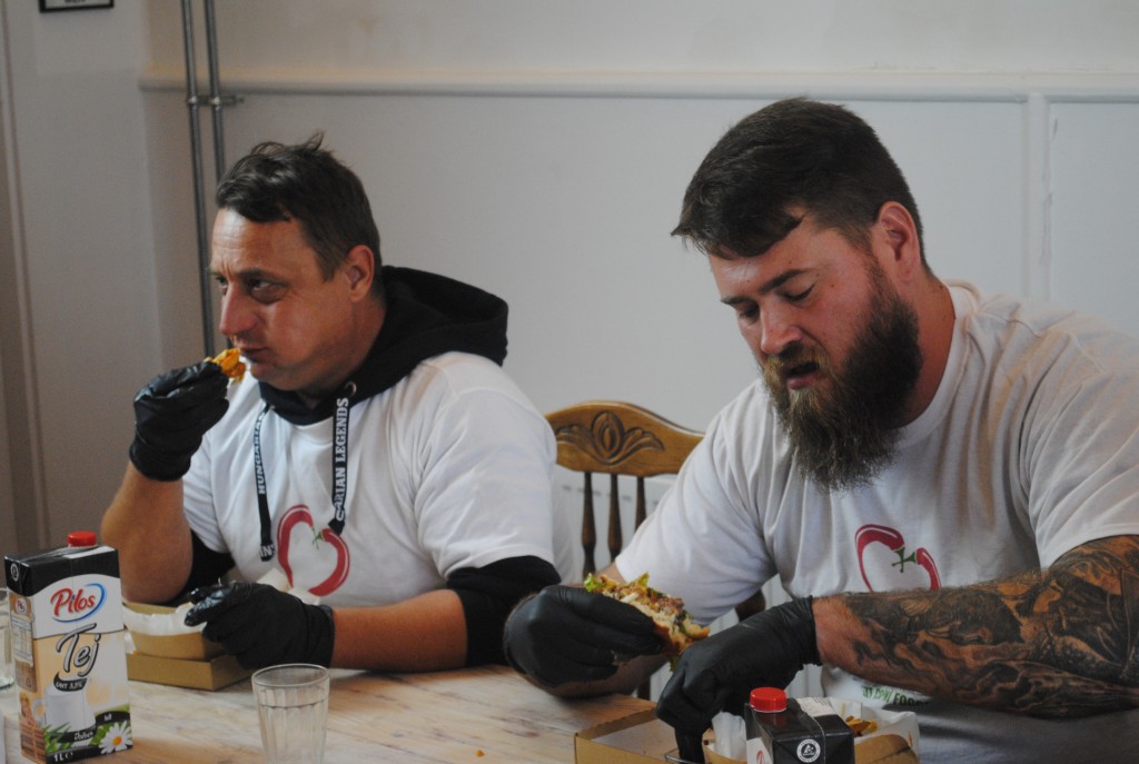 – Van chili- és van csípősevő verseny, ez utóbbit talán könnyebb teljesíteni, ezért esett erre a választás. Ráadásul a csípősség lényege itt most a helyben is megtermő paprika. A szakácsok által készített hamburgert a mi szószunk turbózza még fel, és nyers, szeletelt chilipaprika is kerül bele. A versenyzők mindezt egy kis adag, chili-őrleményes sóval meghintett sült burgonyával és savanyúsággal egészíthetik ki – árulta el a részleteket Dobsa Tibor, a verseny szervezője.