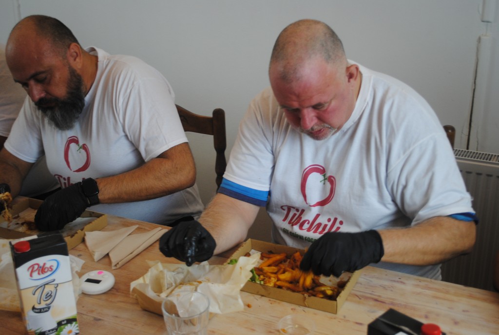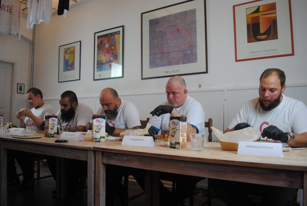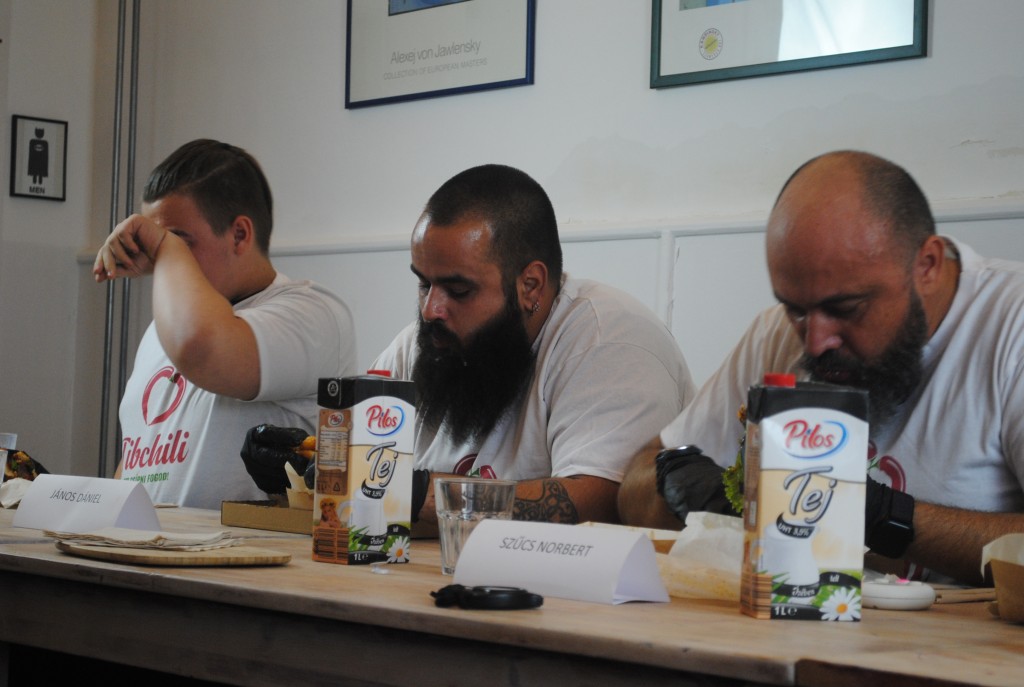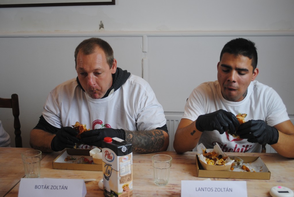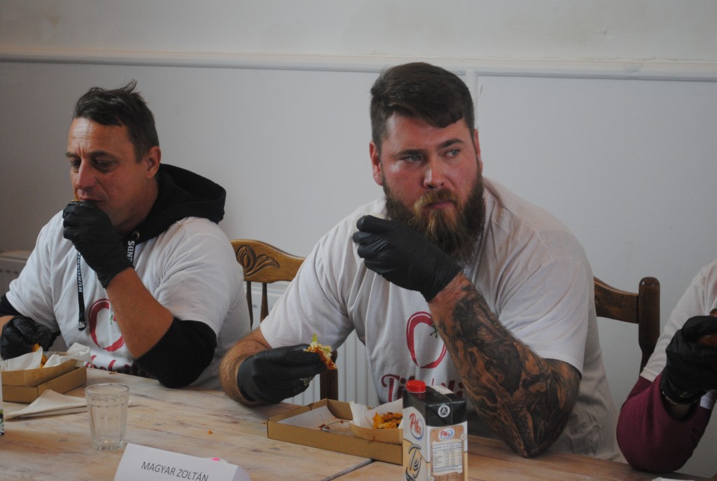 A tíz versenyzőt így is két csapatban, azaz ötösével lehetett a hosszú asztalhoz ültetni, hogy azok a lelkes szurkolók ámulatára alaposan nekilássanak a feladat megoldásának, azaz a rendkívül csípős étel mielőbbi elfogyasztásának.