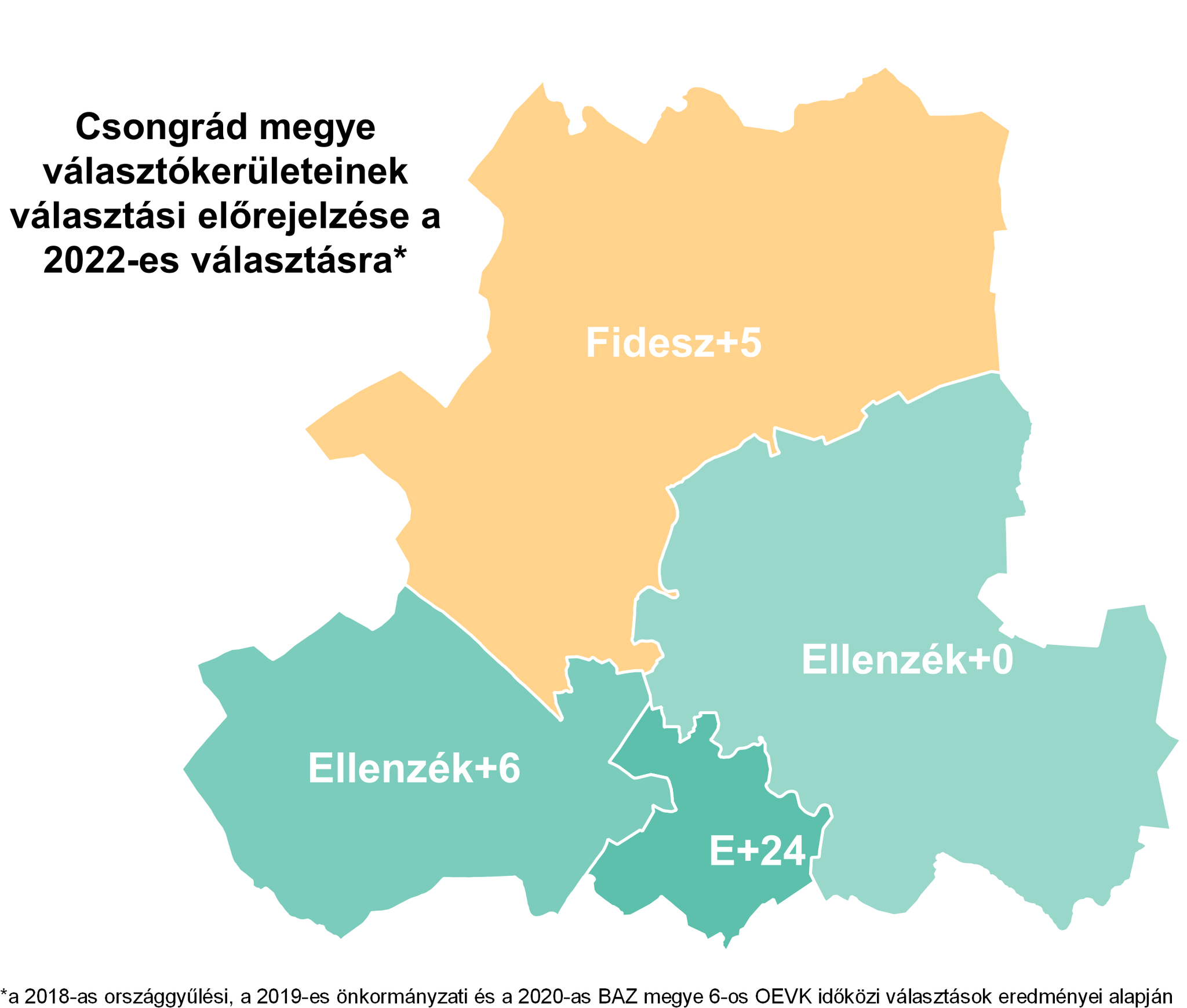 A legutóbbi országgyűlési, önkormányzati és időközi választás alapján készült becslés szerint akár három Csongrád-Csanád megyei választókerületben is győzhet az egyesült ellenzék képviselőjelöltje április 3-án.