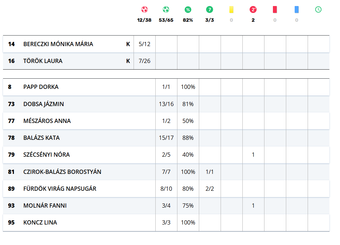 Lényegileg végig csak a különbség mértéke volt kérdéses. A mérkőzésen, a dobott gólok számát illetően ketten is kimagaslót nyújtottak, Balázs Kata 15, Dobsa Jázmin 13 találatot jegyzett, de a többiek sem lehetnek elégedetlenek.