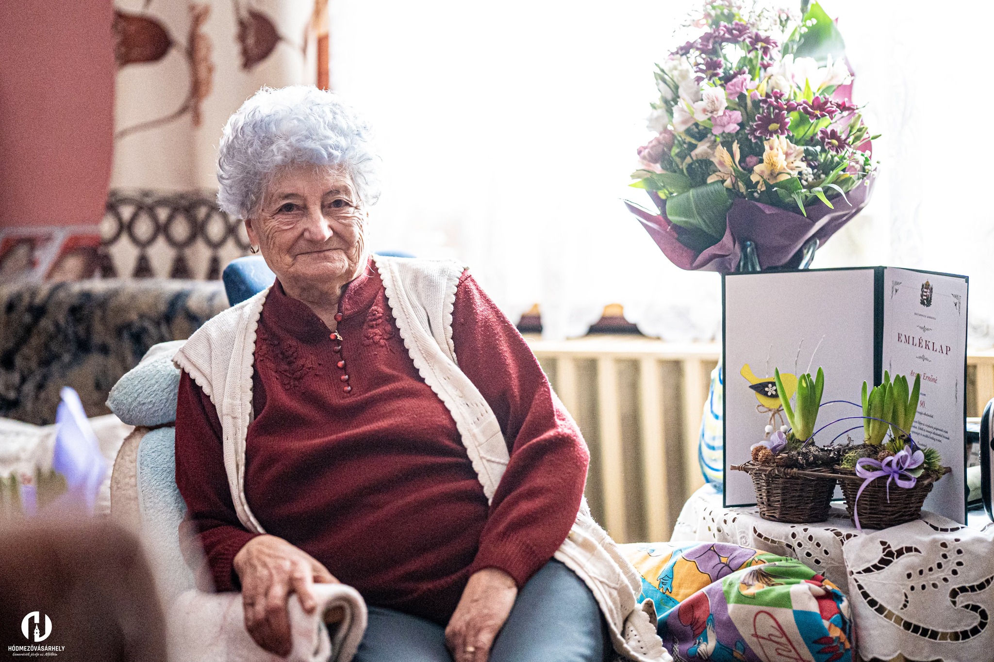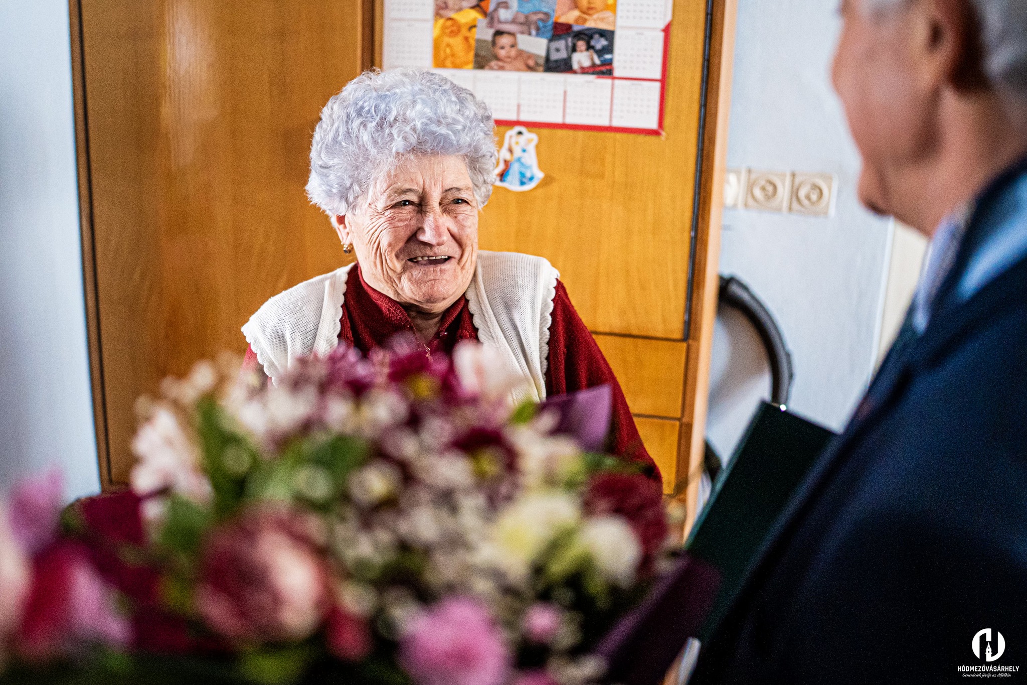 A kerek évforduló alkalmából családja mellett Hódmezővásárhely önkormányzata nevében Berényi Károly alpolgármester is felköszöntötte egy csokor virággal, és átadta a miniszterelnök köszöntő oklevelét.