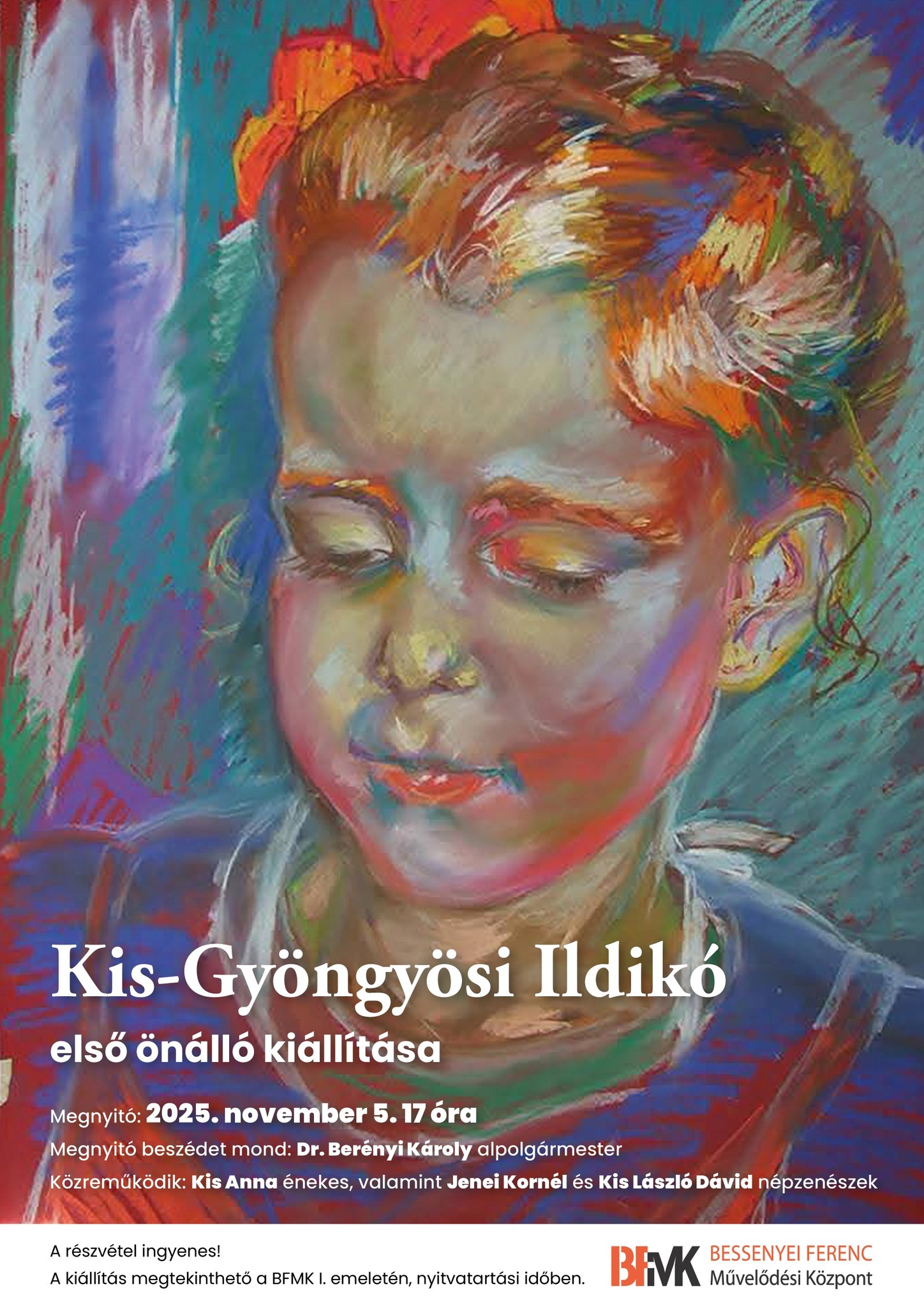 A kiállítást Berényi Károly alpolgármester nyitja meg. Kis-Gyöngyösi Ildikó a Szegedi Tudományegyetem Juhász Gyula Pedagógusképző Kar Rajz-Művészettörténet Tanszékén diplomázott, festő szakirányon. A portrék világa éppúgy érdekli, mint a táj vagy a csendélet. Az ember vonásai is tájképek, csendéletek számára, az idő domborzati térképei.