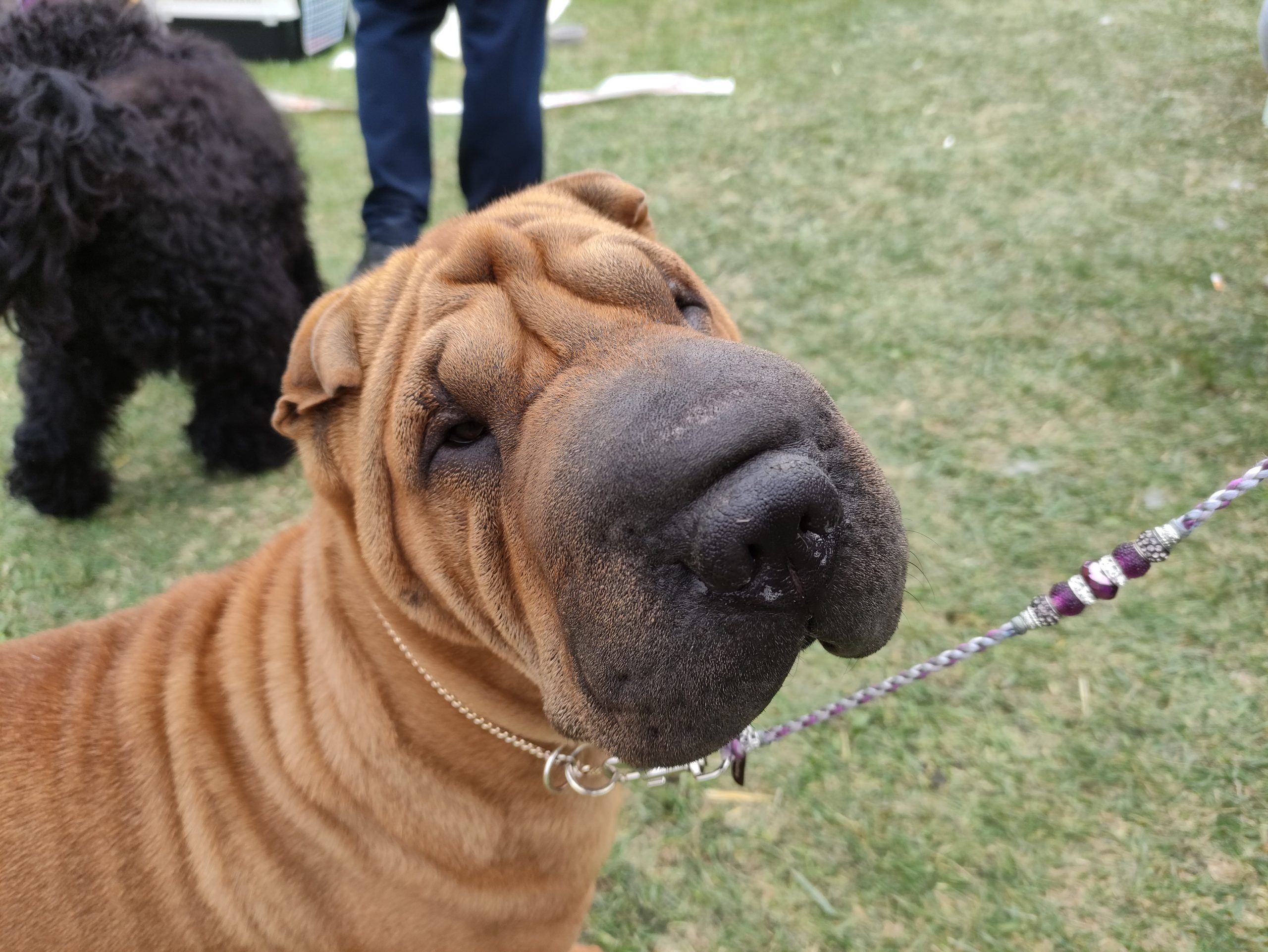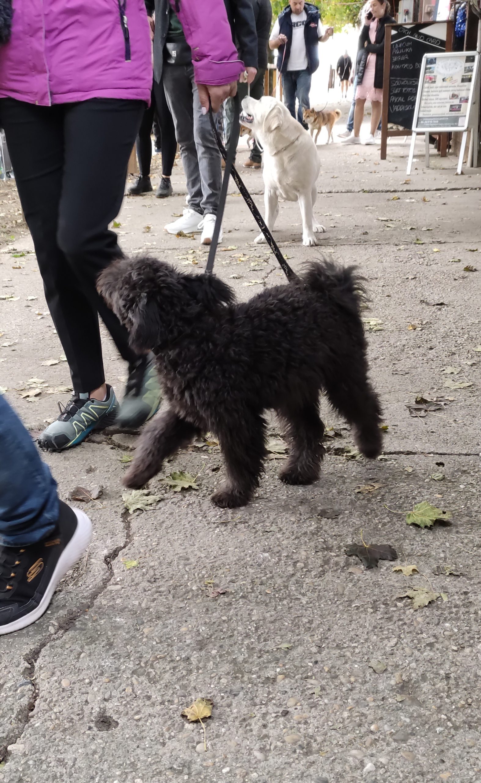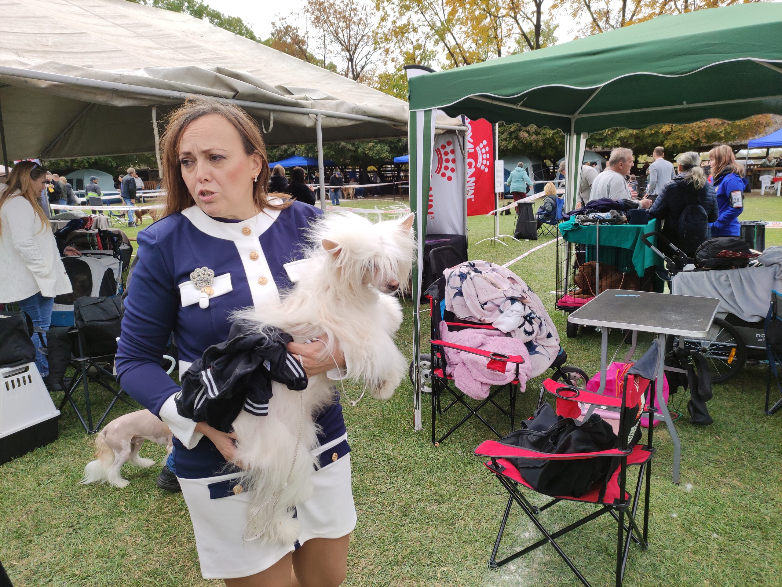 – Húsz hónapos, de ez már a sokadik versenye. A kiállítások előtt legalább kétszer megfürdetjük, másodjára közvetlenül a kiállítás előtti napon. A szőrét is megnyírjuk – hiszen ez nyírós fajta –, és kozmetikázzuk is. Itt, a kiállításon folytatódik a készülődés: fellakkozzuk és begumizzuk a „haját”, ahogy a hölgyeknek szokás, pedig ő fiú. Az uszkárok nagyon okosak, intelligensek és családbarátok, szeretik a gyerekeket, ezért is annyira népszerű fajta – mondta gazdája.