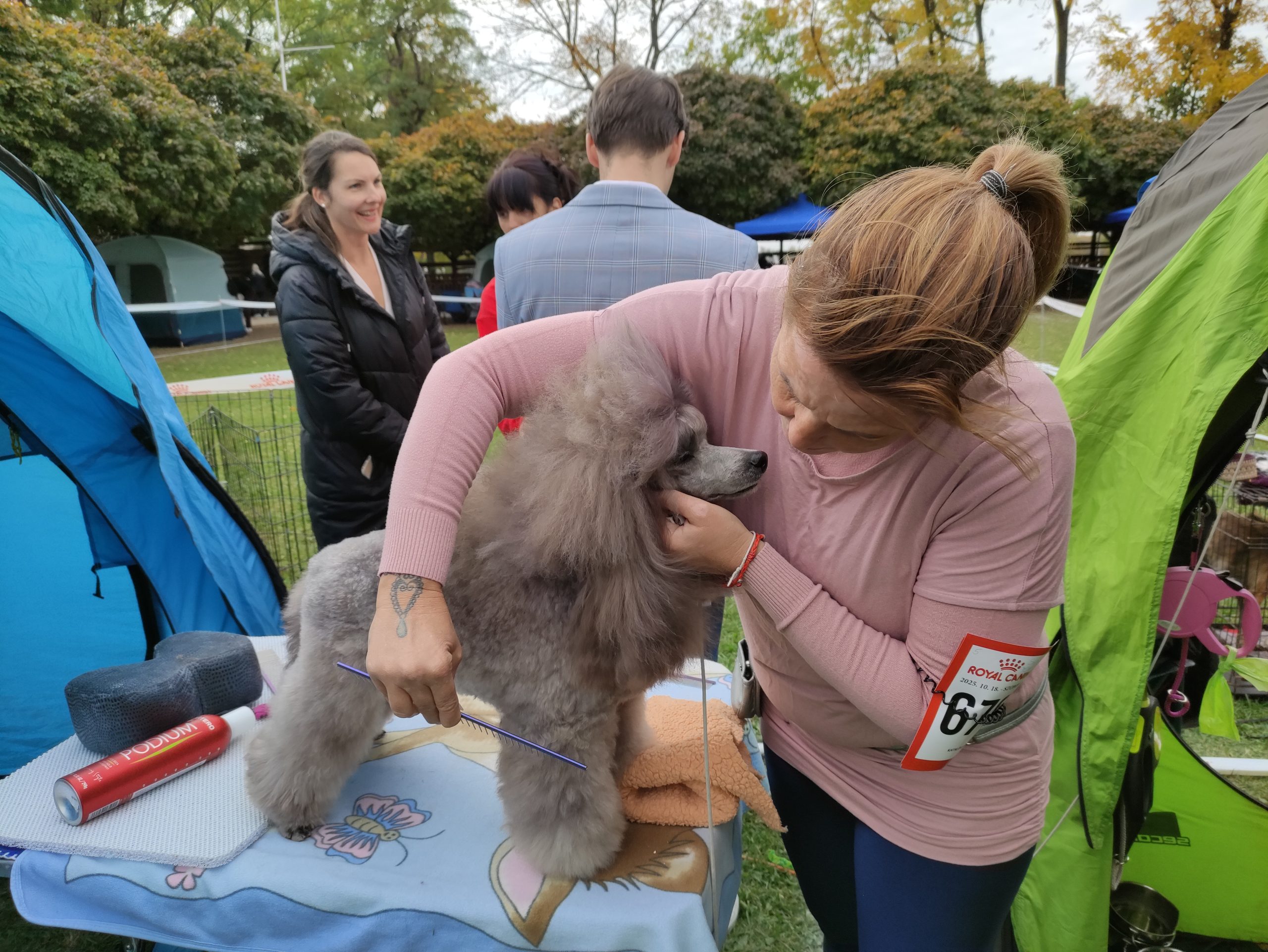 A kisebb és nagyobb kutyusokat alaposan felkészítették a szemlére: nemcsak jól kellett kinézniük és jól viselkedniük, de a lehető legszebbeknek is kellett lenniük. Így esett át mindenféle szépészeti felkészítésen Menthy, Pap Tamás Olaszországból származó törpe uszkárja, amely remek frizurával büszkélkedhetett.