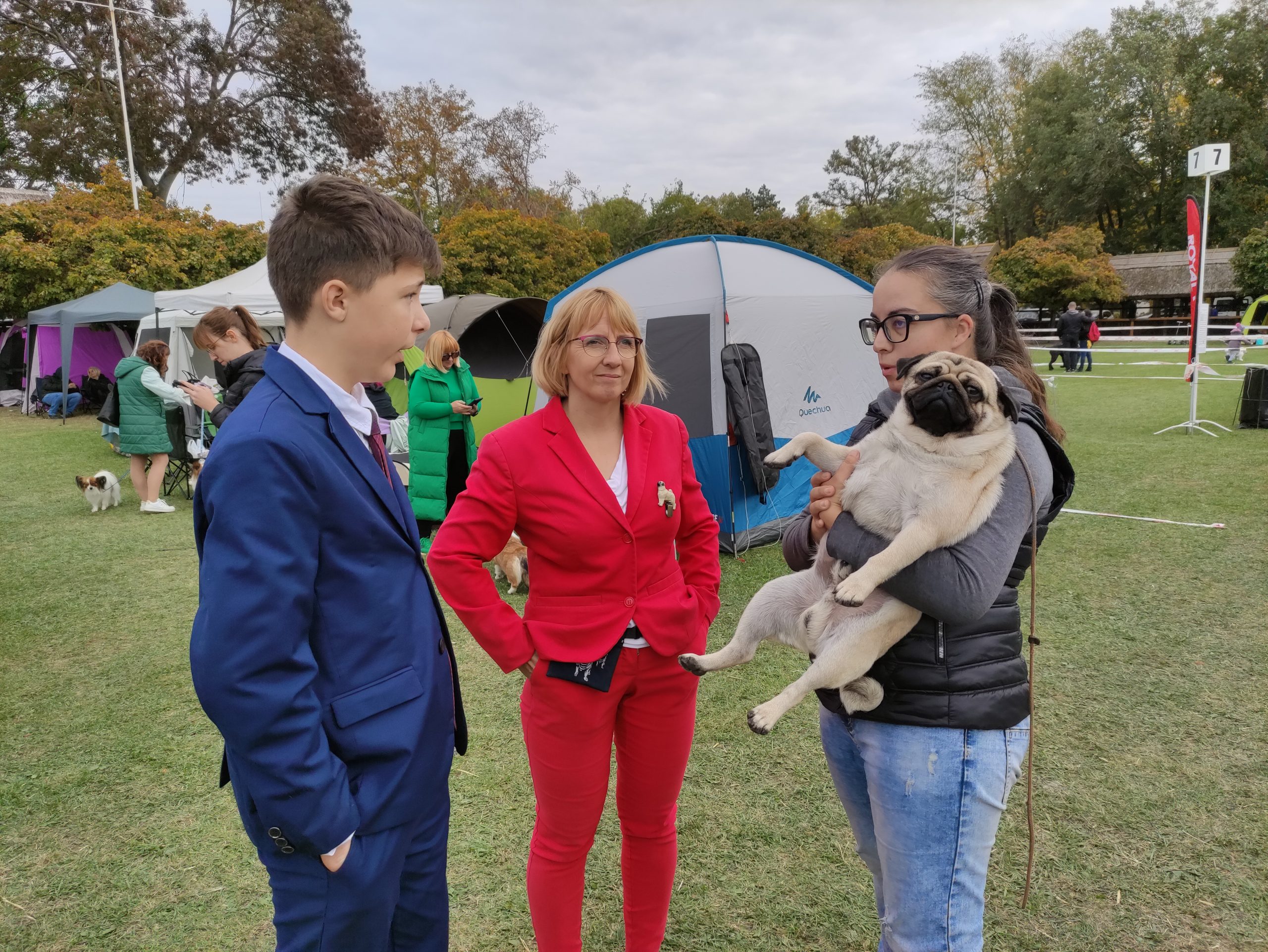 – Ez már a negyedik verseny, amelyen részt veszek a kutyámmal – mesélte a békési Varga Léna, aki elárulta, hogy csak hobbiból jár versenyekre, édesanyjával és annak kutyusával. – Van még otthon három hokkaido kutyánk és egy keverék is. Az utóbbit találtam – egyszer futás közben szegődött hozzám –, és befogadtam. Aztán lett még egy shiba inu-m is: ő békés természetű, míg a hokkaidok hajlamosak harapni. Egy ilyen versenyre otthon nagyon sokat kell gyakorolni, de az utcán is ki kell vinni a kutyát, hogy megtanulja: nem szabad harapni. Verseny előtt nemcsak meg kell fürdetni, hanem arra is ügyelni kell, hogy a szőre se túl hosszú, se túl rövid ne legyen.