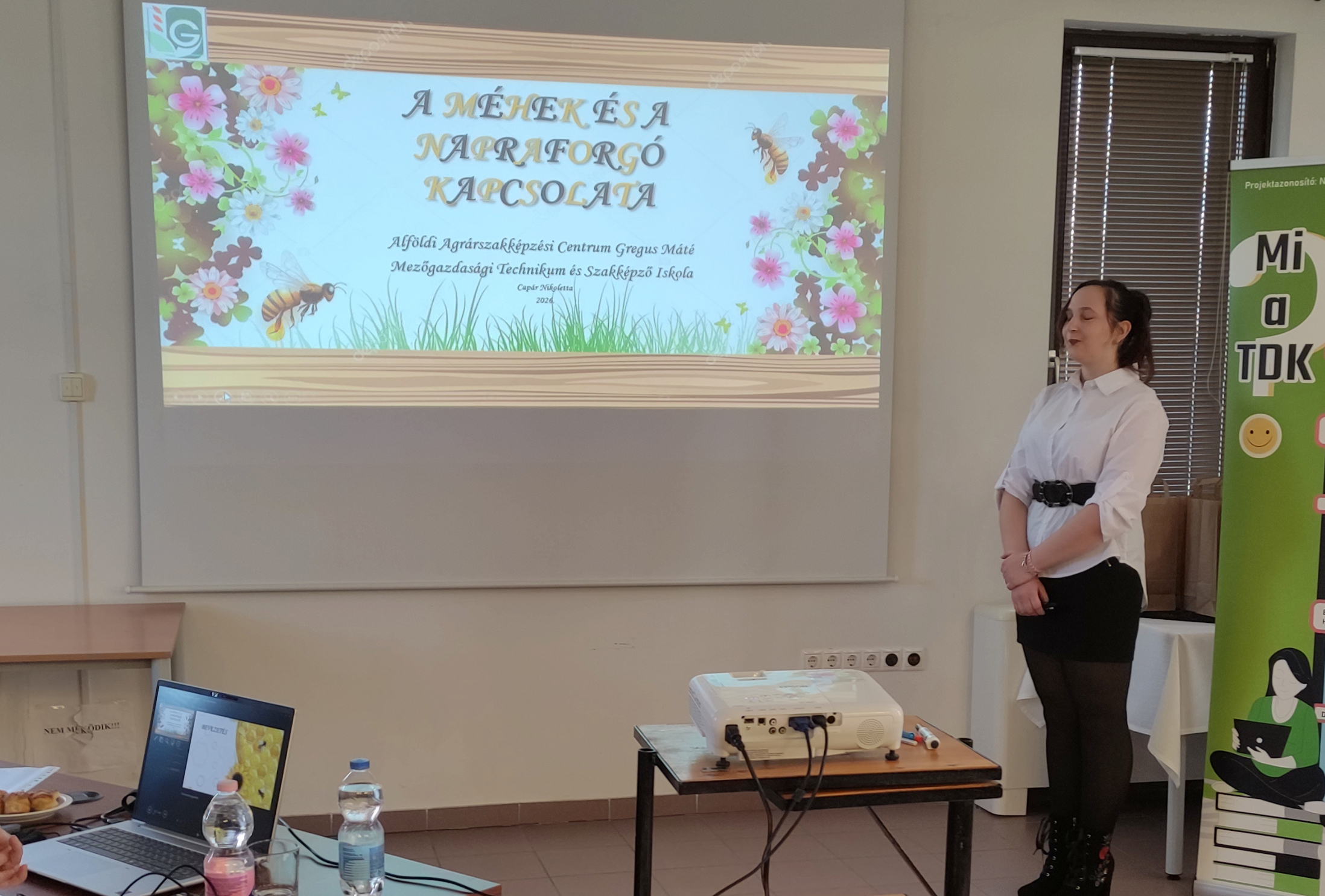 Szintén érdekes, de ettől teljesen eltérő témáról, a méhek és a napraforgó kapcsolatáról írt dolgozatot Capár Nikoletta, a vásárhelyi Gregus Máté Mezőgazdasági Technikum diákja.
