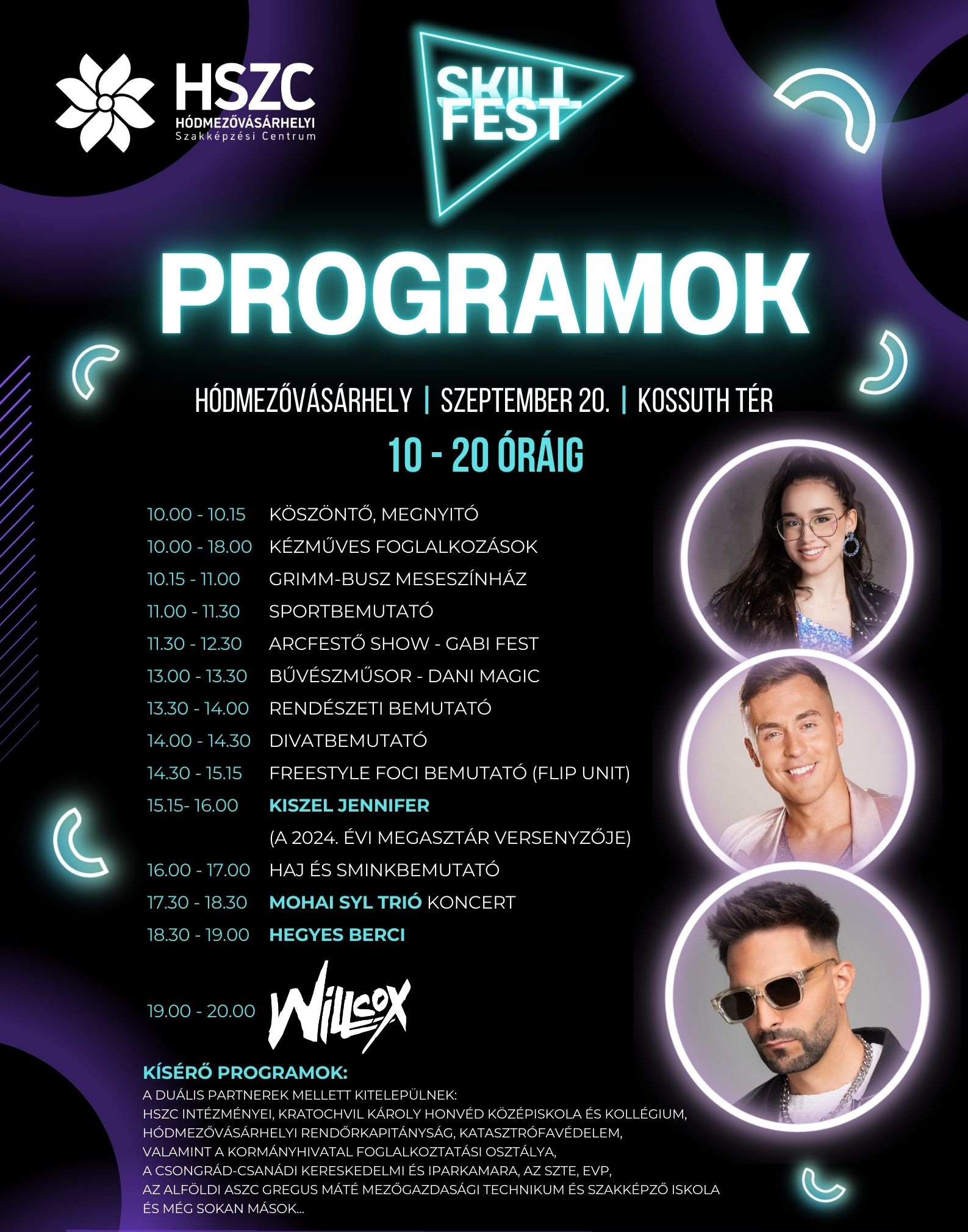 A Hódmezővásárhelyi Szakképzési Centrum ismételten megszervezi ingyenes pályaorientációs fesztiválsorozatát, a SkillFestet, szombaton délelőtt 10 és este 8 óra között a hódmezővásárhelyi Kossuth téren.