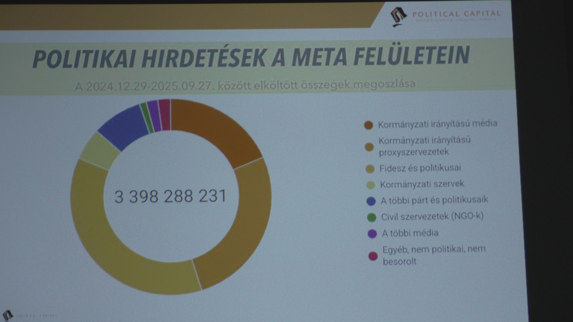 – hívta fel a figyelmet a 2024.12.29. és 2025.09.27. közötti időszakra. László szerint ez is egy hatalmas választási aránytalanság, igaz nem mindenható, de 12 évig jól működött a Fidesz számára. Egy hosszabb időszakot nézve, 2019-től 2025-ig 18 milliárd forintot költöttek el a Meta-n és 3 milliárdot a Google-ön (YouTube). Felhívta rá a figyelmet, a szabályozás miatt a tényleges politikai hirdetések eltűntek ezekről a platformokról, de van, ami átcsúszik. Így például a Nemzeti Ellenállás Mozgalom Tanmese a Tiszáról c. animációs filmje is átment a rostán. Továbbá a Google automatikusan rakja be kategóriába a videókat, így ott még előfordulhatnak rosszul kategorizált, de valójában politikai tartalmak a hirdetések között.