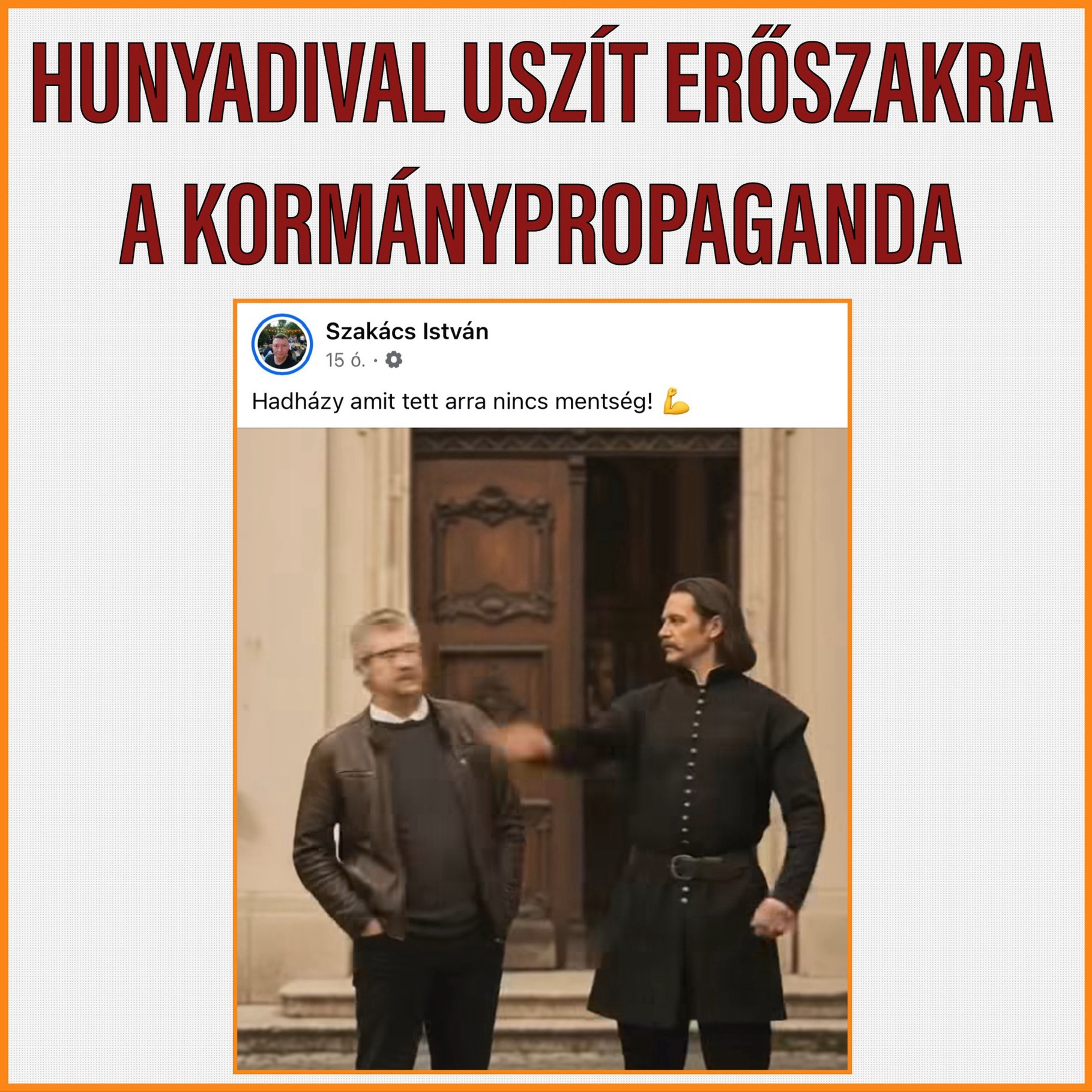 Bár sok reményt nem fűz hozzá, mégis úgy döntött, hogy feljelentést tesz Hadházy Ákos egy AI-videó miatt, amelyben egy mesterséges intelligencia által generált Hunyadi felpofozza őt. A videó tartalmát Facebook-bejegyzésében „egészen tragikusnak” nevezte, mivel Szakács István „propagandista szerint ugyanis az a megoldás a vélt sérelemre (ami egyébként nem igaz, senkinek semmi baja a harangszóval), hogy ezt a Hadházy jól pofán kell verni”.