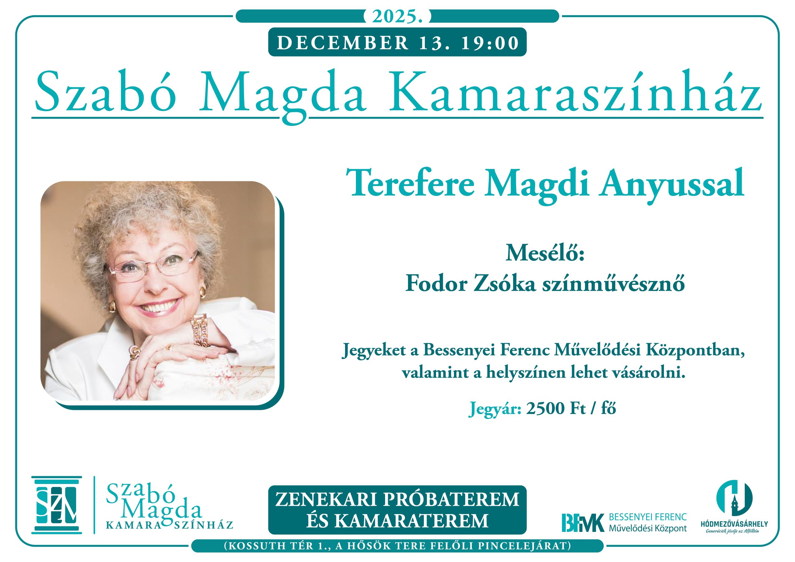 Fodor Zsóka színművésznő fog mesélni december 13-án, szombaton, 19 órától a Szabó Magda Kamaraszínháznak helyet adó zenekari próbateremben.