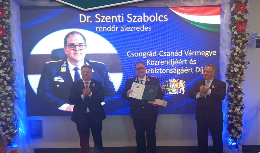 A Csongrád-Csanád Vármegyei Önkormányzat közgyűlése a vármegye biztonsága érdekében végzett kiemelkedő szakmai és vezetői munkája elismeréseként Csongrád-Csanád Vármegye Közrendjéért és Közbiztonságáért Díjat adományozott Szenti Szabolcs rendőr alezredesnek, a Szegedi Rendőrkapitányság vezetőjének.