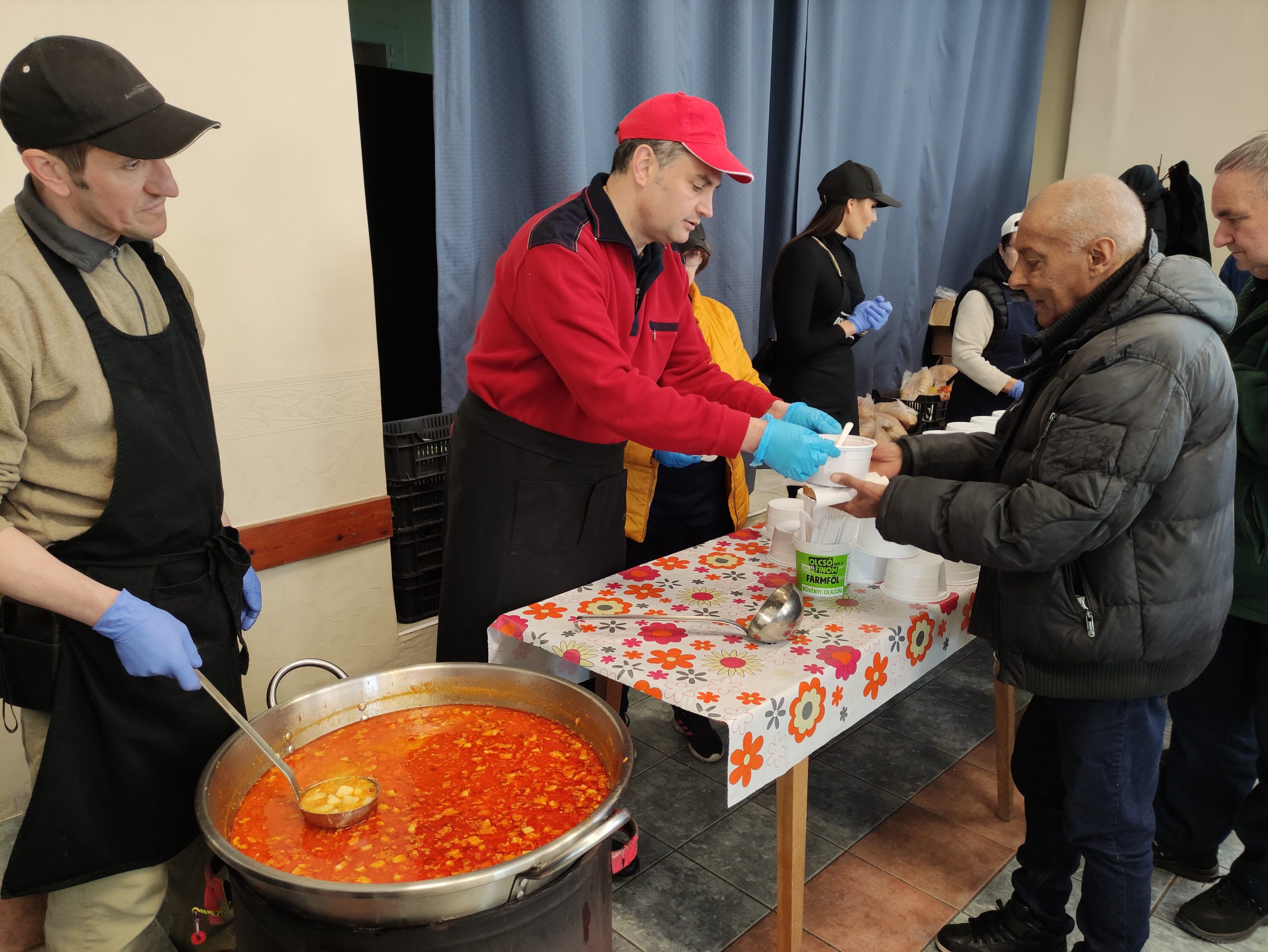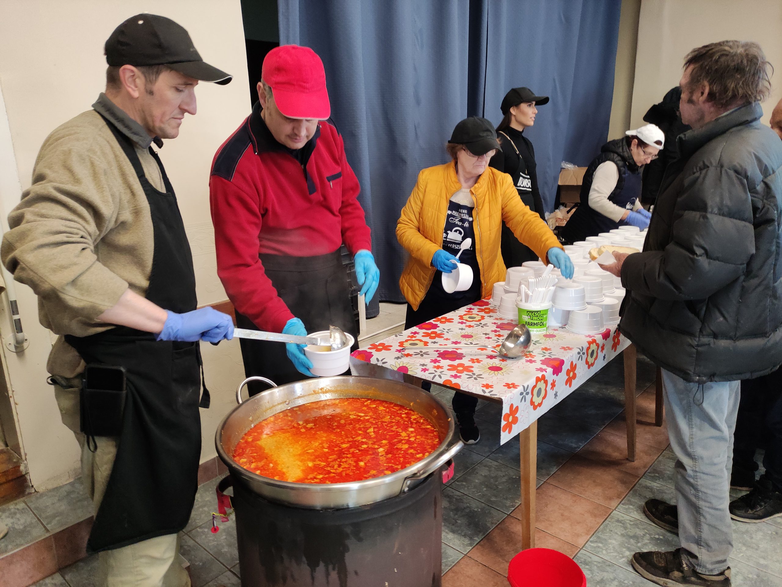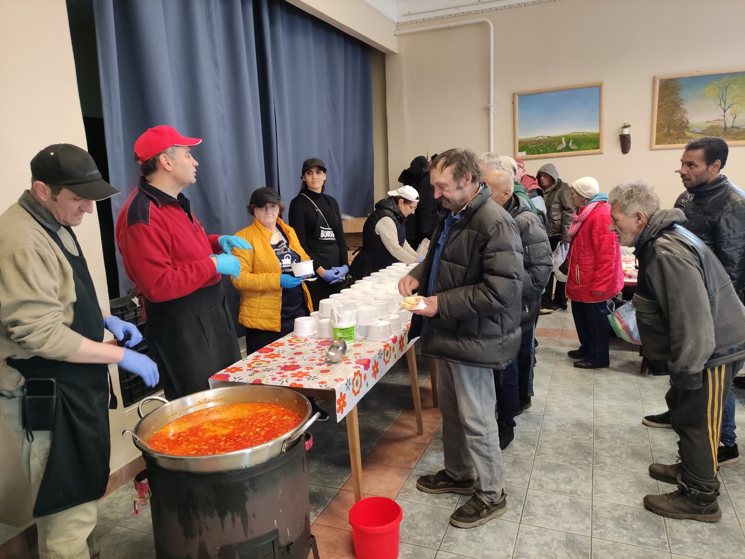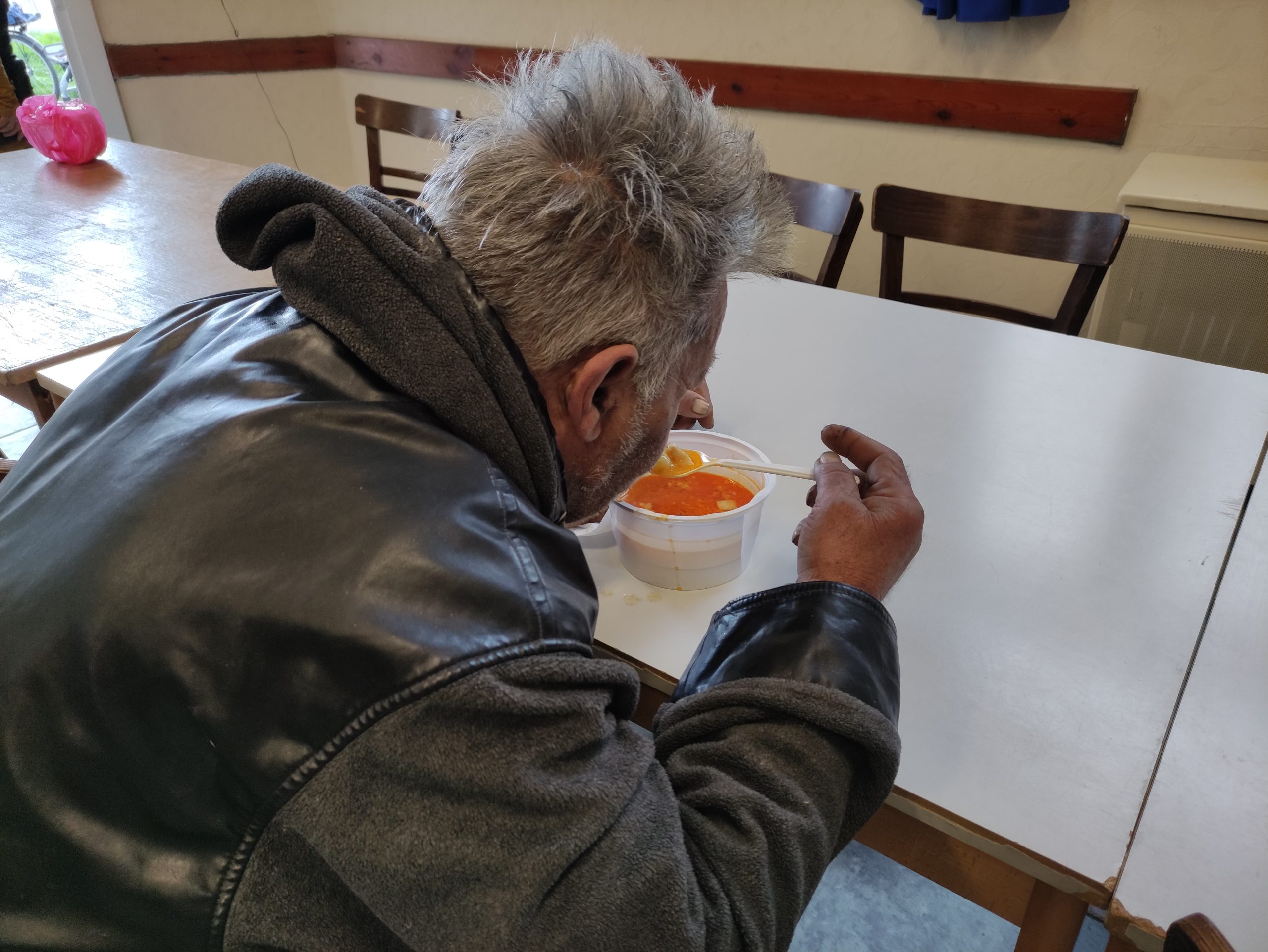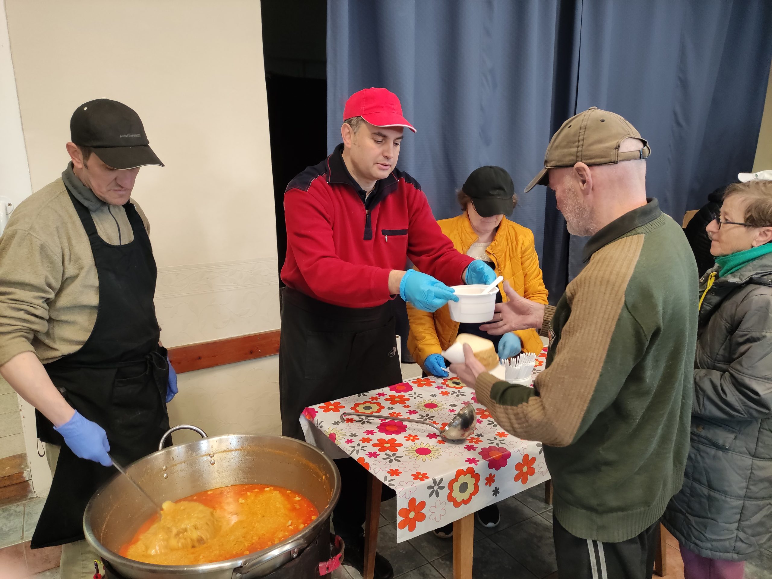 Nem kellett nagyon biztatni a Mindenki Magyarországa Mozgalom, a Minden Fiatal Magyarországa és a Tiszta Vásárhelyért Egyesület vasárnap déli, a Tabáni Olvasókör Szerencse utcai székházában rendezett ingyenes ételosztáson megjelenteket. A valamivel több, mint hatvan érdeklődő szépen sorban állt a Czeller Éva önkéntes által fűzött csurgatott tojásos, füstölt húsos krumplilevesért, majd amikor azt megkapták szépen leültek s elkanalazták a sűrű és forró egytál ételt.