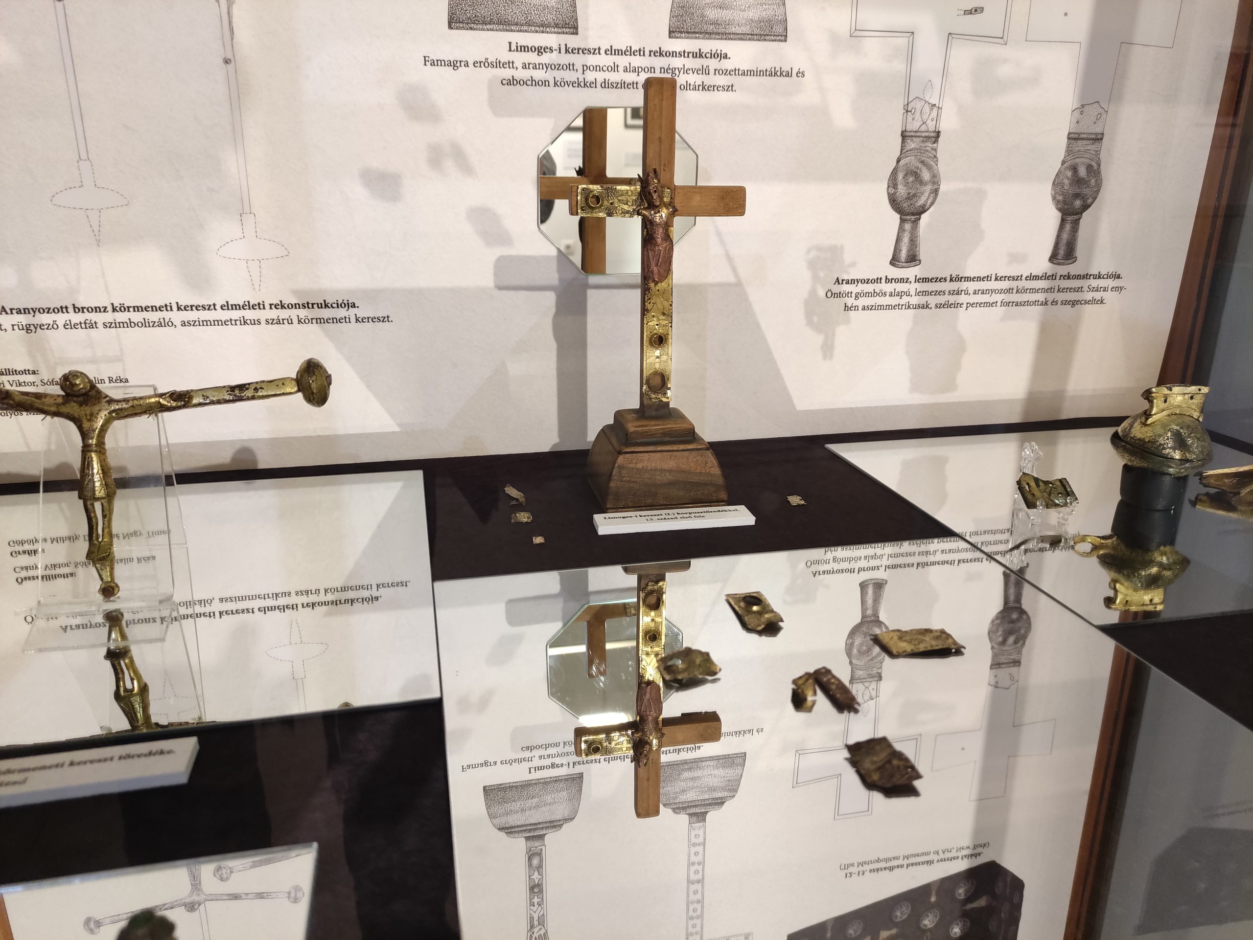 – Az egykor a helyszínen állt, ma már ismeretlen nevű település területén 2022-ben egy korpuszt találtak. A lelőhely pontos koordinátáit korábban rögzítették, és amikor ezeket összevetették a régi, szöveges leírással – amelyet még Bokorné Nagy Katalin régész helyezett a tárgyak mellé –, kiderült, hogy az adatok nagyjából megegyeznek. Az igazi meglepetést az jelentette, amikor az egyik kereszt töredékéhez a most előkerült korpusztöredék pontosan illeszkedett. Szatmári Imre már 2014-ben, egy szakcikkben közölte és leírta a kereszttöredékeket, és felvetette, hogy mivel egy helyen két különböző kereszt került elő, ezek valószínűleg egy elrejtett leletegyüttest alkothattak. Ezekkel az információkkal felvértezve tértek vissza 2023-ban a területre, ahol – számos más tárgy mellett – újabb kereszttöredékeket találtak. A restaurálás tavaly év végén fejeződött be, ezt követően kezdték el összeállítani a teljes képet. Jelenlegi tudásuk szerint itt legalább négy keresztet rejtettek el, amelyek közül kettő import, limoges-i kereszt volt – avatott be a kincs megtalálásának izgalmas előzményeibe Csányi Viktor.