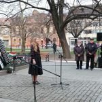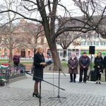 A himnusz közös eléneklése után Walterné Böngyik Terézia mondott beszédet az egybegyűlteknek. – Azokra emlékezünk most, akik a legdrágábbat adták azért, hogy ma egy szabad, független Magyarországon élhetünk – kezdte szónoklatát, amelyben ezután elhangoztak a kormánypárt sokat hallott fő üzenetei is. Béke, szabadság, egyetértés – erre a háromra van leginkább szükség – emelte ki Walterné, majd beszédében először e három fogalmat járta körül. „Háború dúl Európában, ami nekünk, magyaroknak sem jó„, „Most is vannak, akik rá akarják kényszeríteni akaratukat a magyarokra, akik zsarolnak bennünket, ha nem úgy táncolunk, ahogy ők fütyülnek”, de mi nem engedünk a zsarolásnak, „az idegen eszméknek” – sorolta.