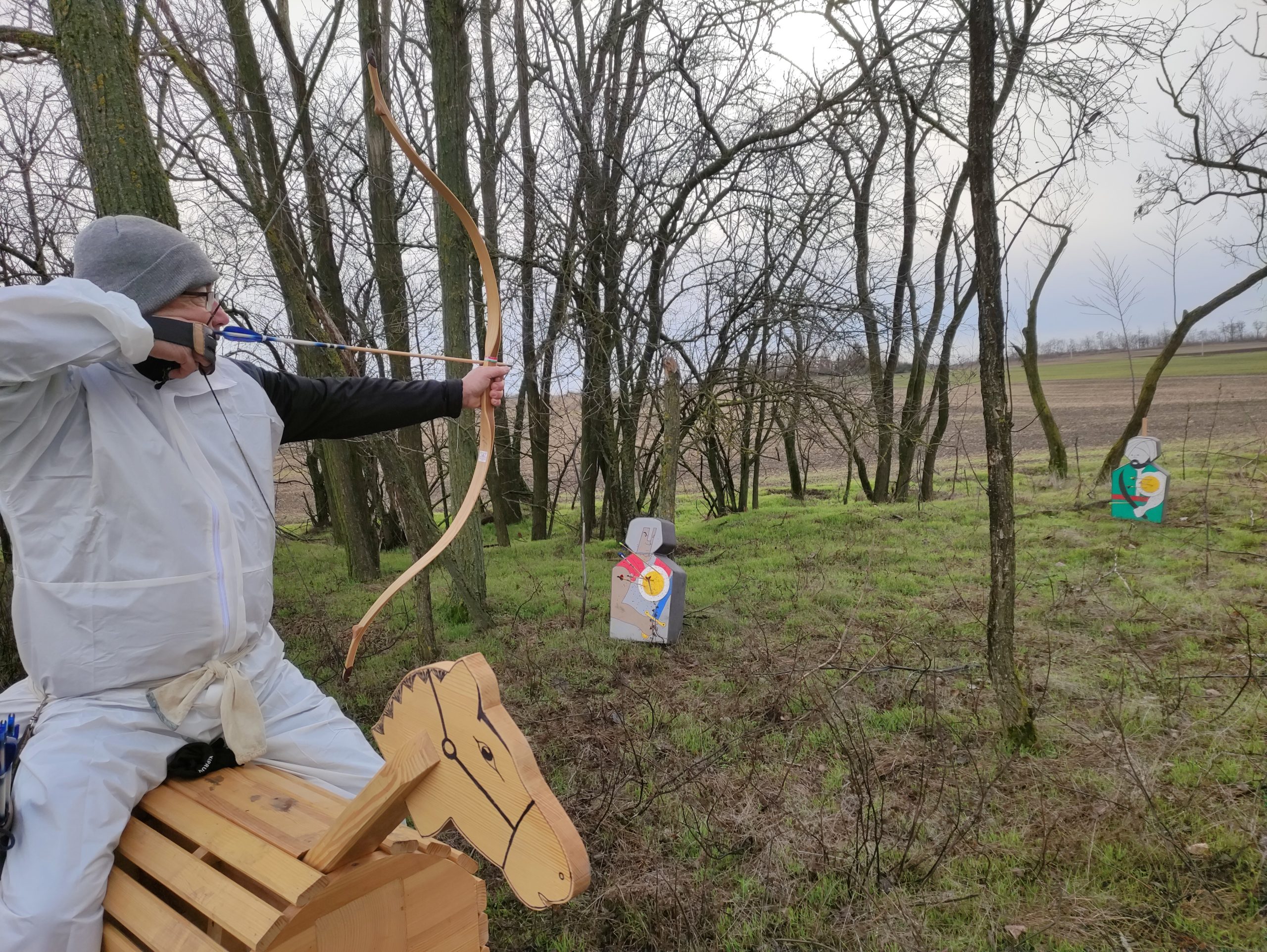 Hetvennél is több, a Dél-Alföld minden szegletéből érkezett versenyző vett részt a Hódmezei Őrzők Íjászegyesület hagyományos újévköszöntő íjászversenyén. A Sóshalmi Olvasókör környékén különféle célokra – így vaddisznóra, középkori harcosra, sőt még törökre is – lőttek a résztvevők, jobbára állva, ám az egyik célcsoportnál „paripára” is kellett pattanniuk, még ha csak egy fából készültre is.