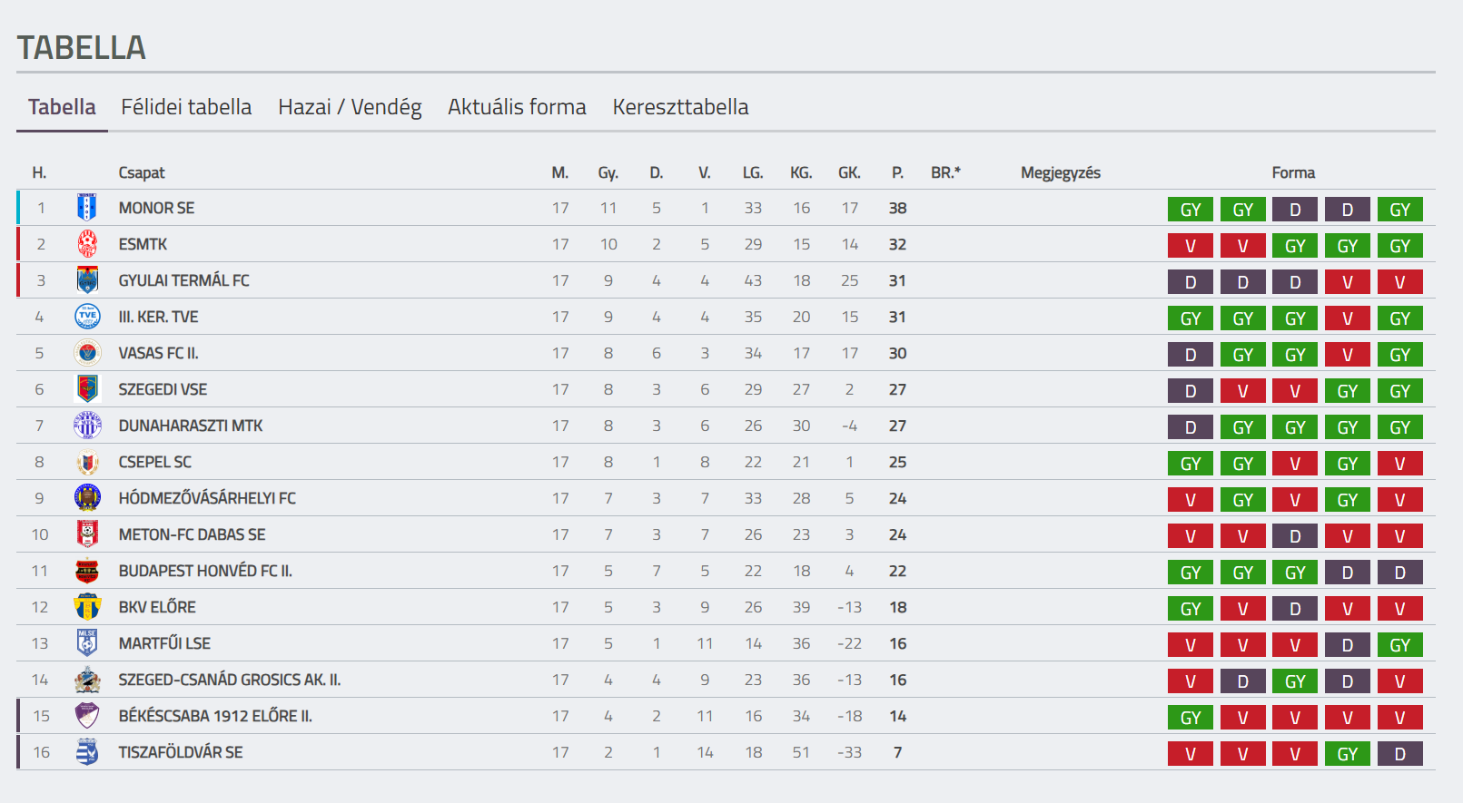 Ezzel, valamint az ESMTK vereségével és a Gyula döntetlenjével a monoriak megerősítették a tabellán a vezető helyüket. A HFC a 9. helyen áll.