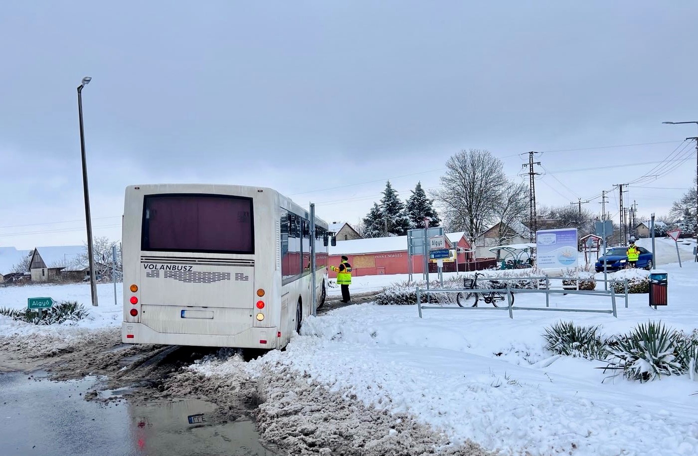 A havas időjárás Algyő térségében egy autóbuszsofőrt is próba elé állított: a csúszós útfelületen a jármű hátsó kerekei megcsúsztak, és a busz az út menti vízelvezető árokba sodródott.