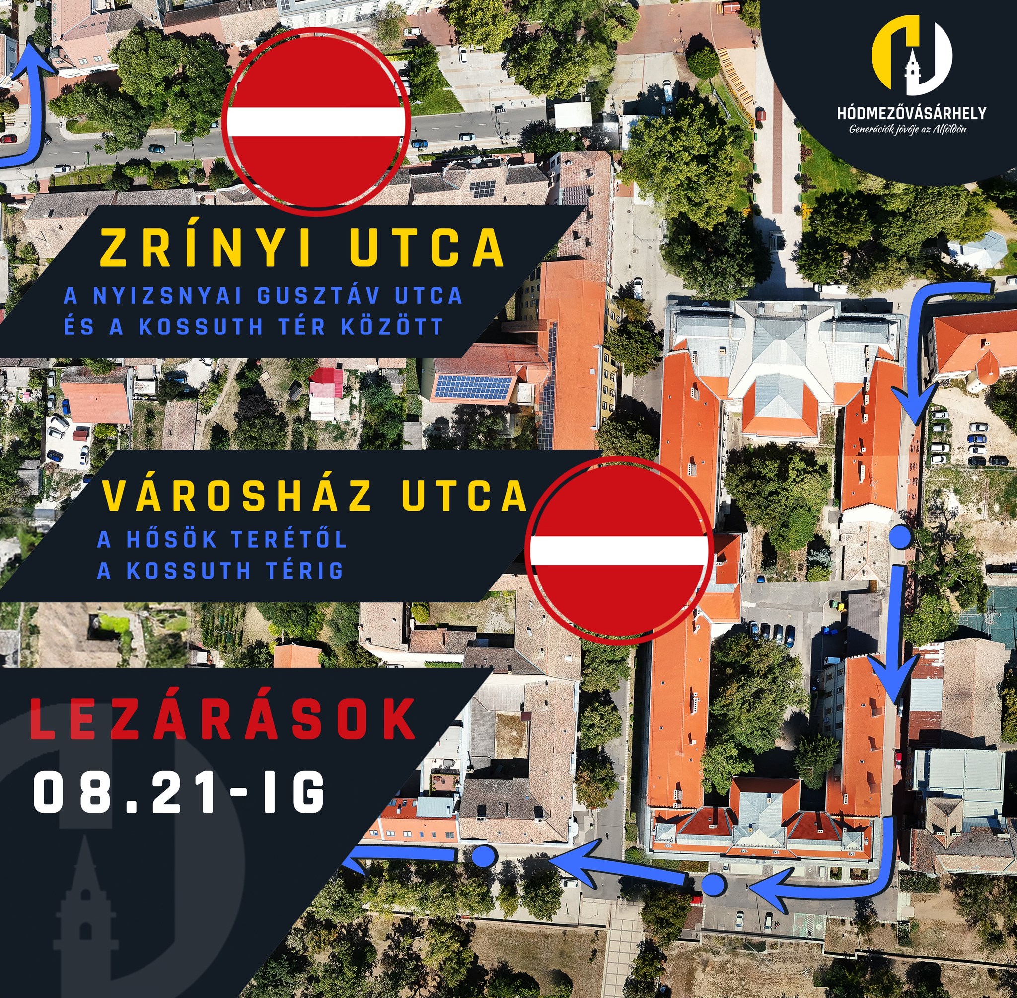 A gyalogosan közlekedők biztonsága érdekében két útszakaszt fognak lezárni Szent István király ünnepe és a XIX. Borfesztivál idejére Hódmezővásárhelyen.