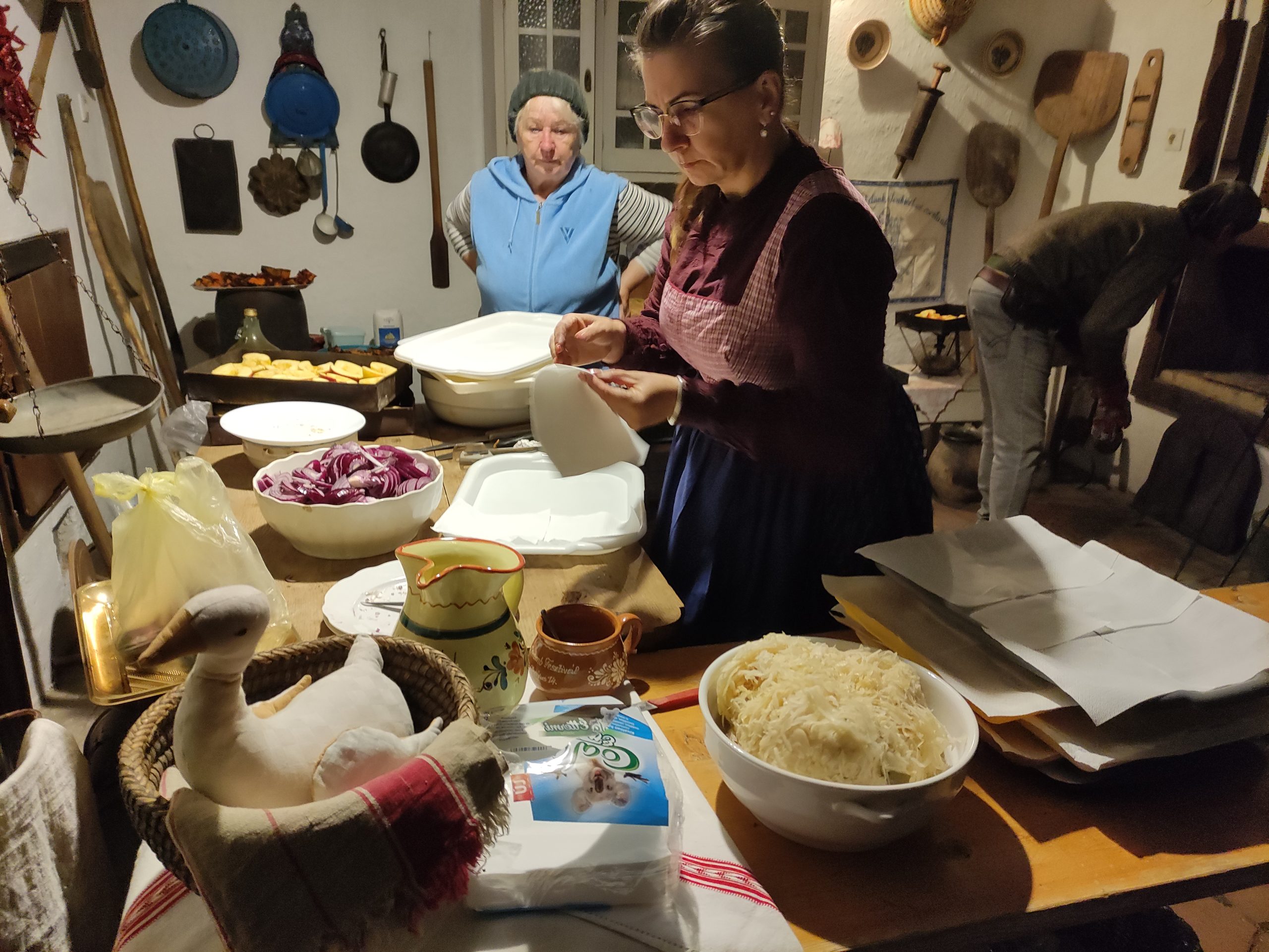 A Bessenyei Ferenc Művelődési Központ rendezvényszervezője hozzátette, a kemencébe amúgy is be akartak gyújtani, hiszen mindenféle őszi finomsággal készültek a vendégeknek: tököt és almát sütöttek. – A libalakomához illően libazsíros kenyeret is kentünk, lila hagymával s savanyú káposztával. És persze az egyik jellegzetes, Vásárhelyen is ismert étel, a ludaskása is készül az udvari üstben – tette hozzá.